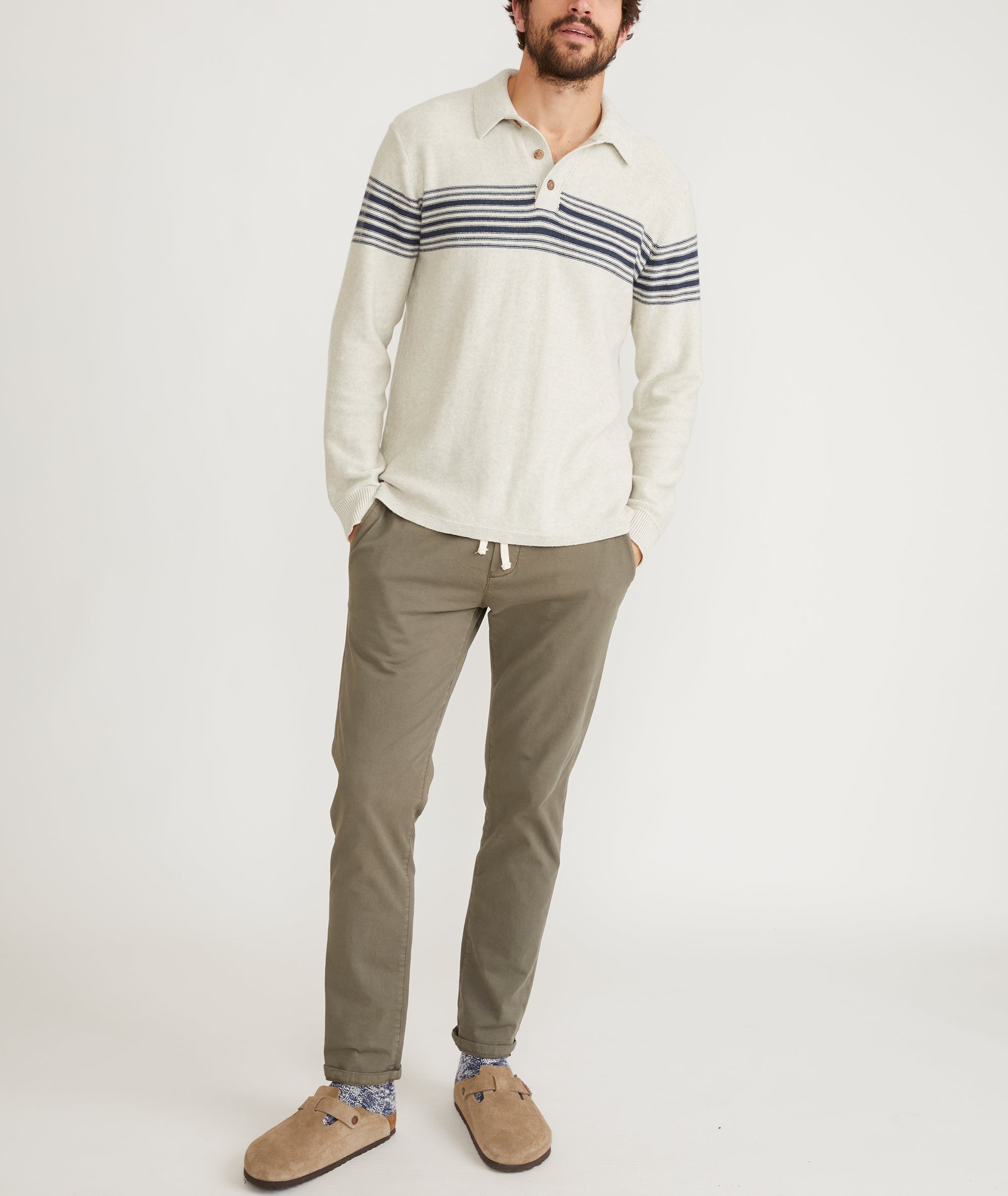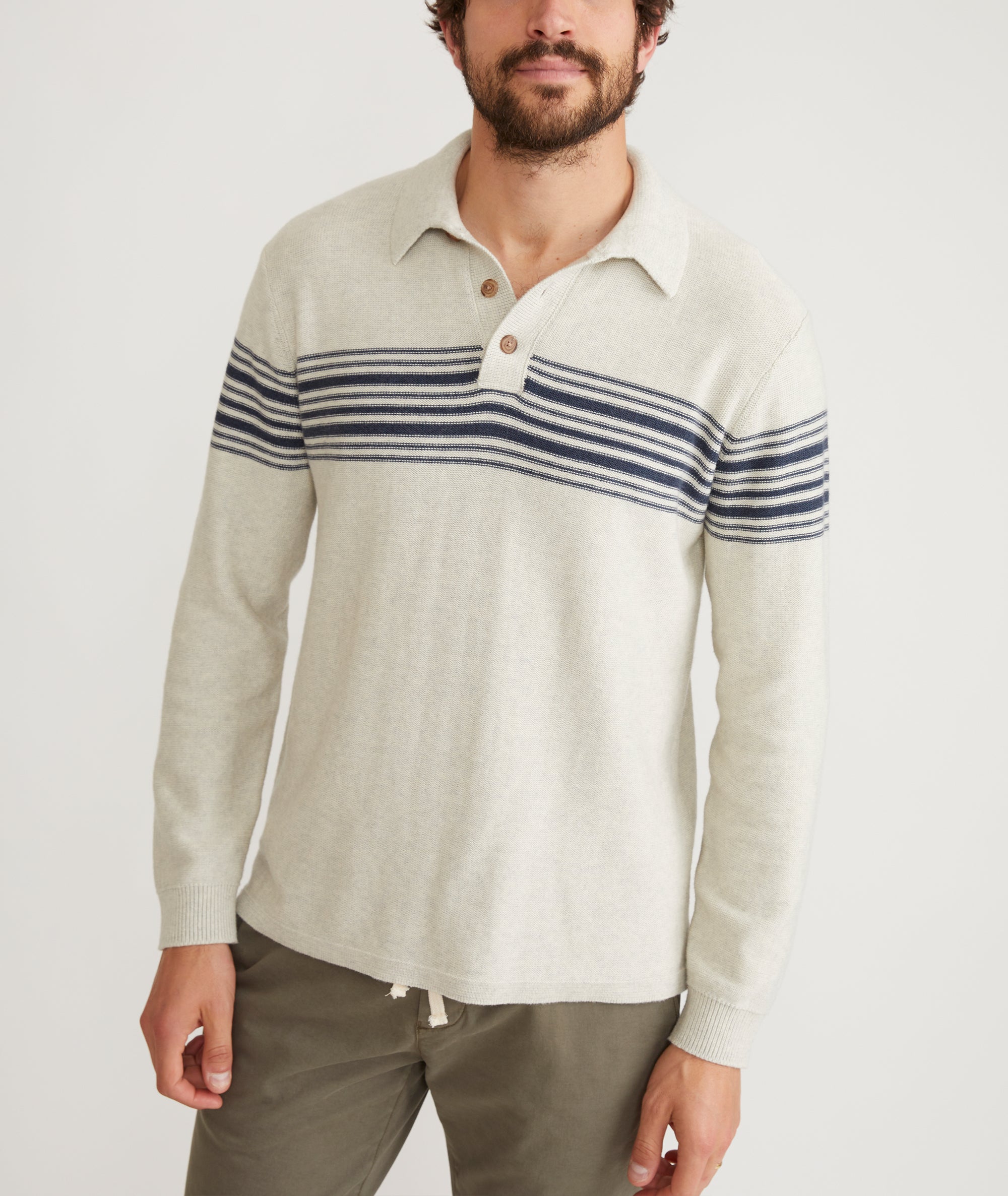 We worked with the world's top scientists* to achieve the perfect blend of dressed-up and laid-back. This sweater polo is absurdly soft, perfectly warm (but not too warm), and features a custom stitched stripe across the chest.