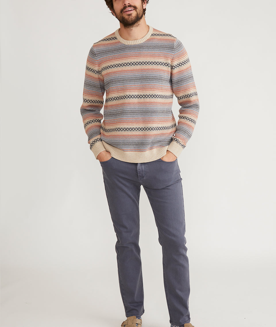We set out to make an updated version of your Grandpa's vintage knit sweater, and we did just that. Retro-inspired patterns and stripes make this guy feel like a novelty, with comfort for everyday wear.