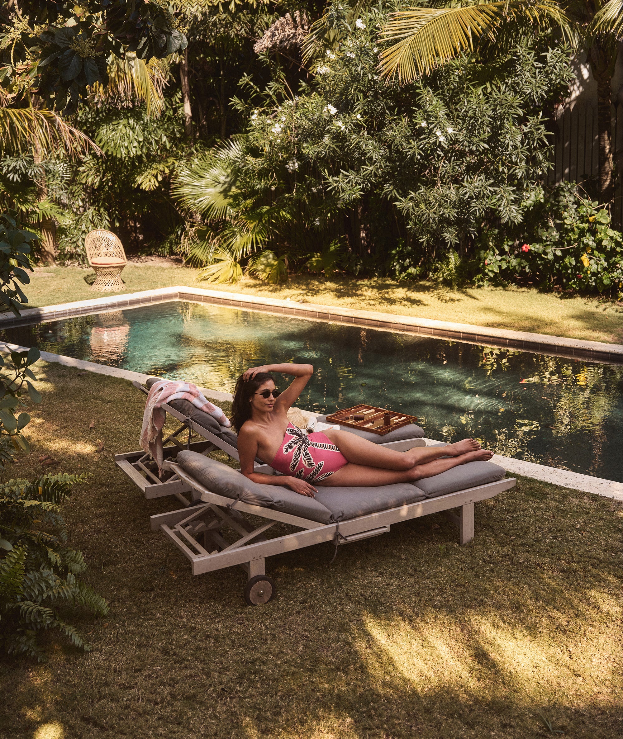A good strapless suit is hard to find, so we made our own with Andie Swim. Their technical fit expertise plus our bright colors and patterns? Summertime perfection. This suit features a high-cut, cheeky fit, and major decolletage tanning opportunities.