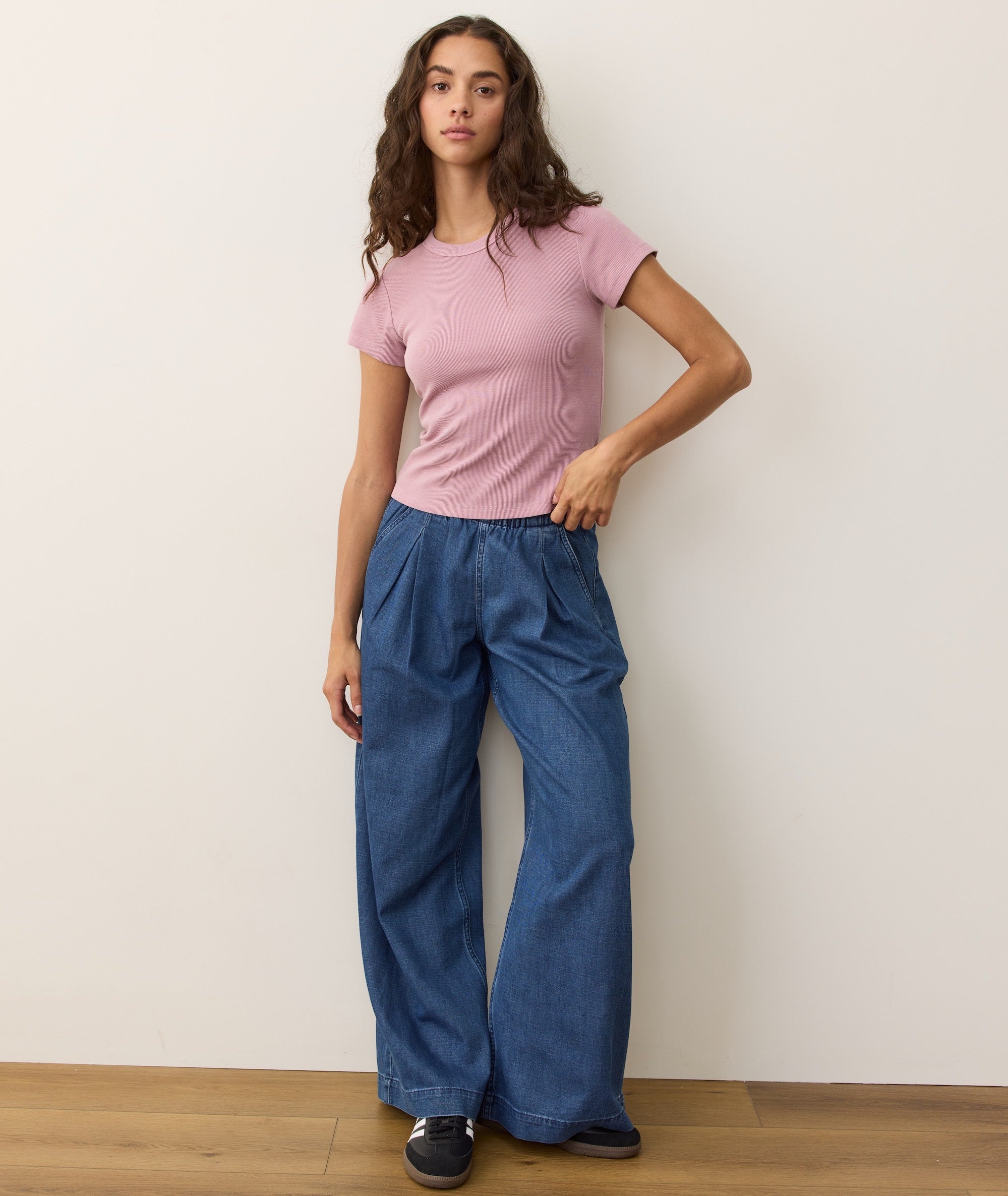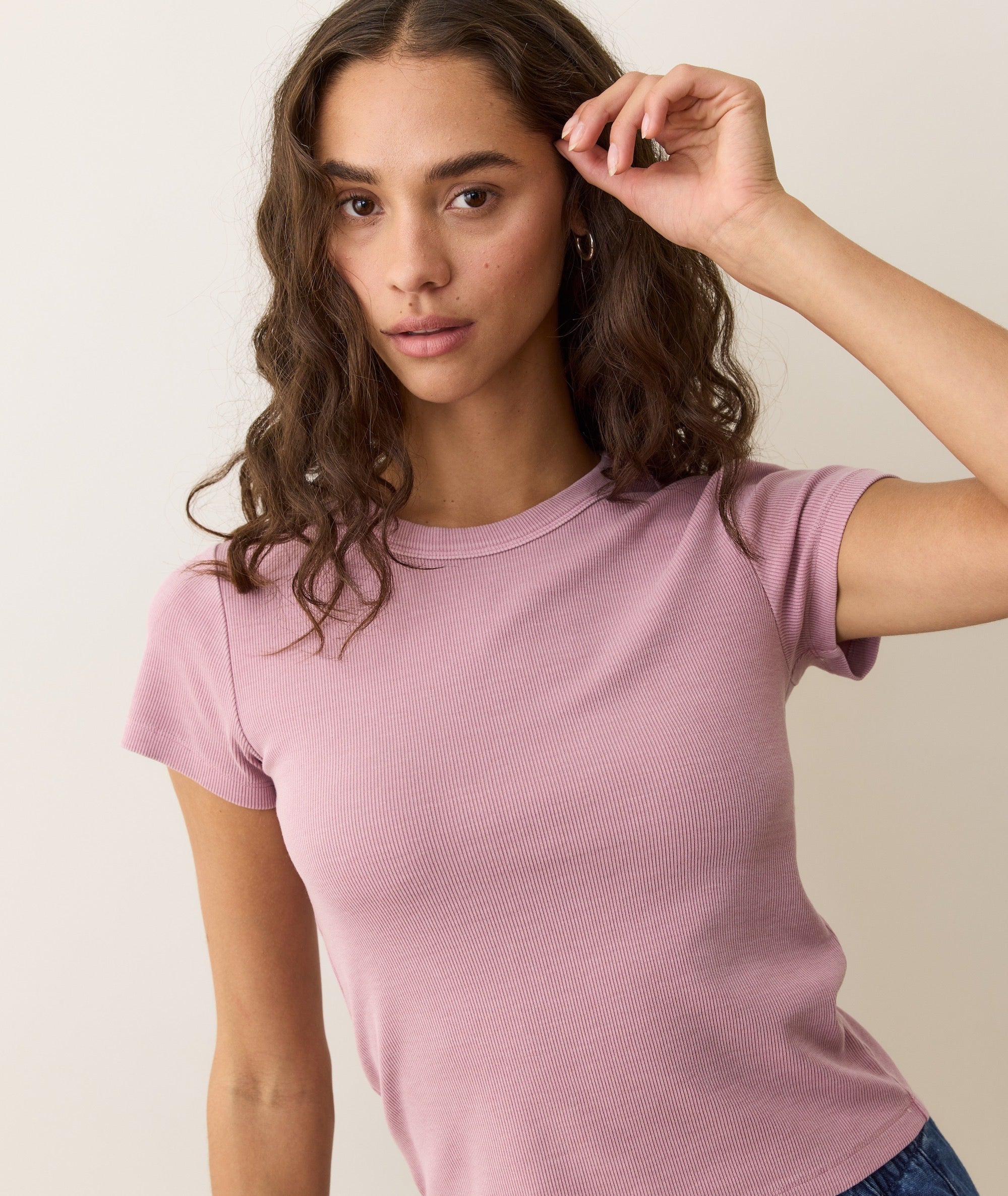 Our bestselling Lexi Rib fabric just got better. This style has been garment dyed for a naturally sun-faded, broken-in look and feel. The fit? It's a perfect, slightly fitted version of a crew tee. (Think baby tee, but not as tight.) It's absurdly soft, comfortable, and has a great thick texture. Perfection? We'd like to think so.