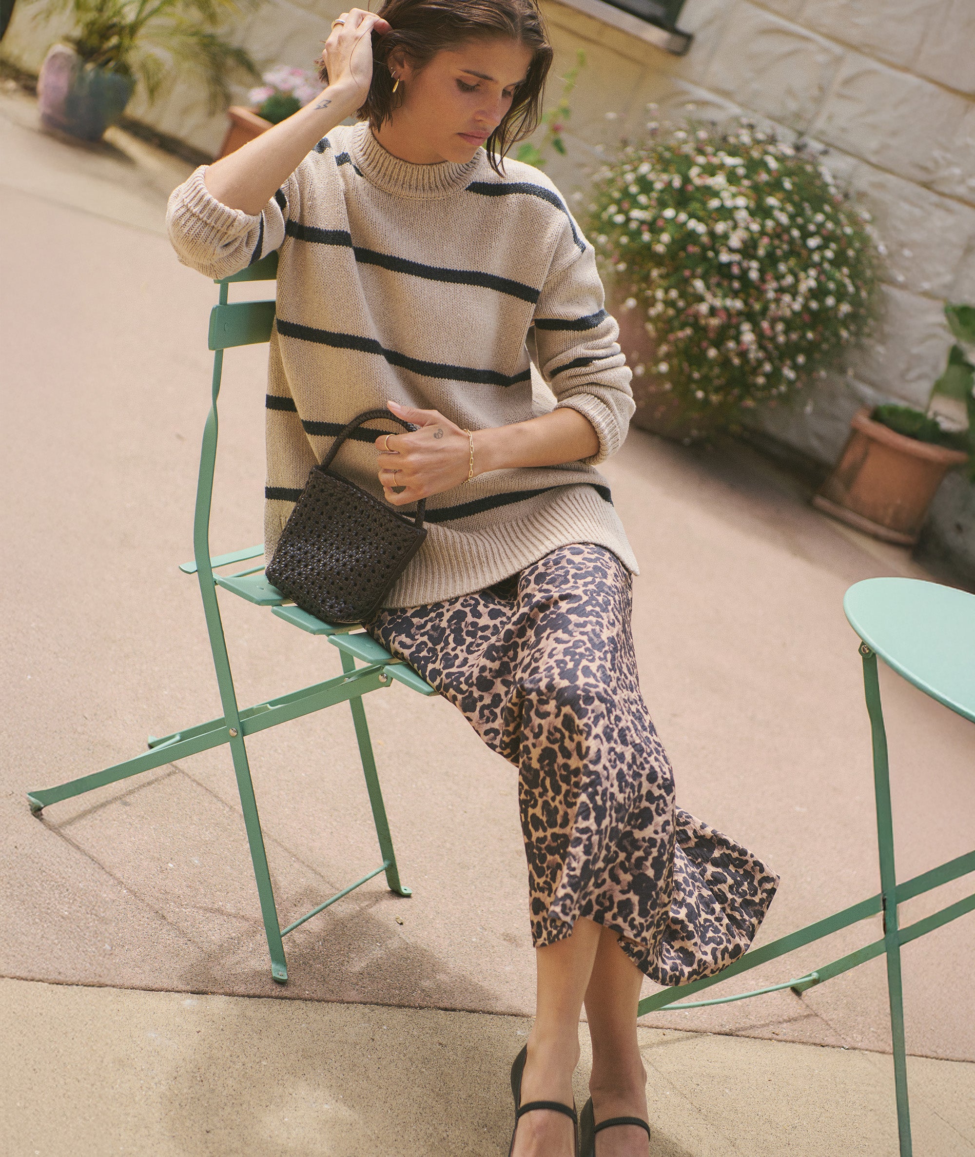 When we first released this Avery silhouette, it was a plain hemp skirt. But we craved something with a little more…Big Cat Energy. So we kept the easy midi body and brought in this new fabric with a print that never fails to make life a little more fun. Or a lot more fun. Honestly it depends on how fun you are.