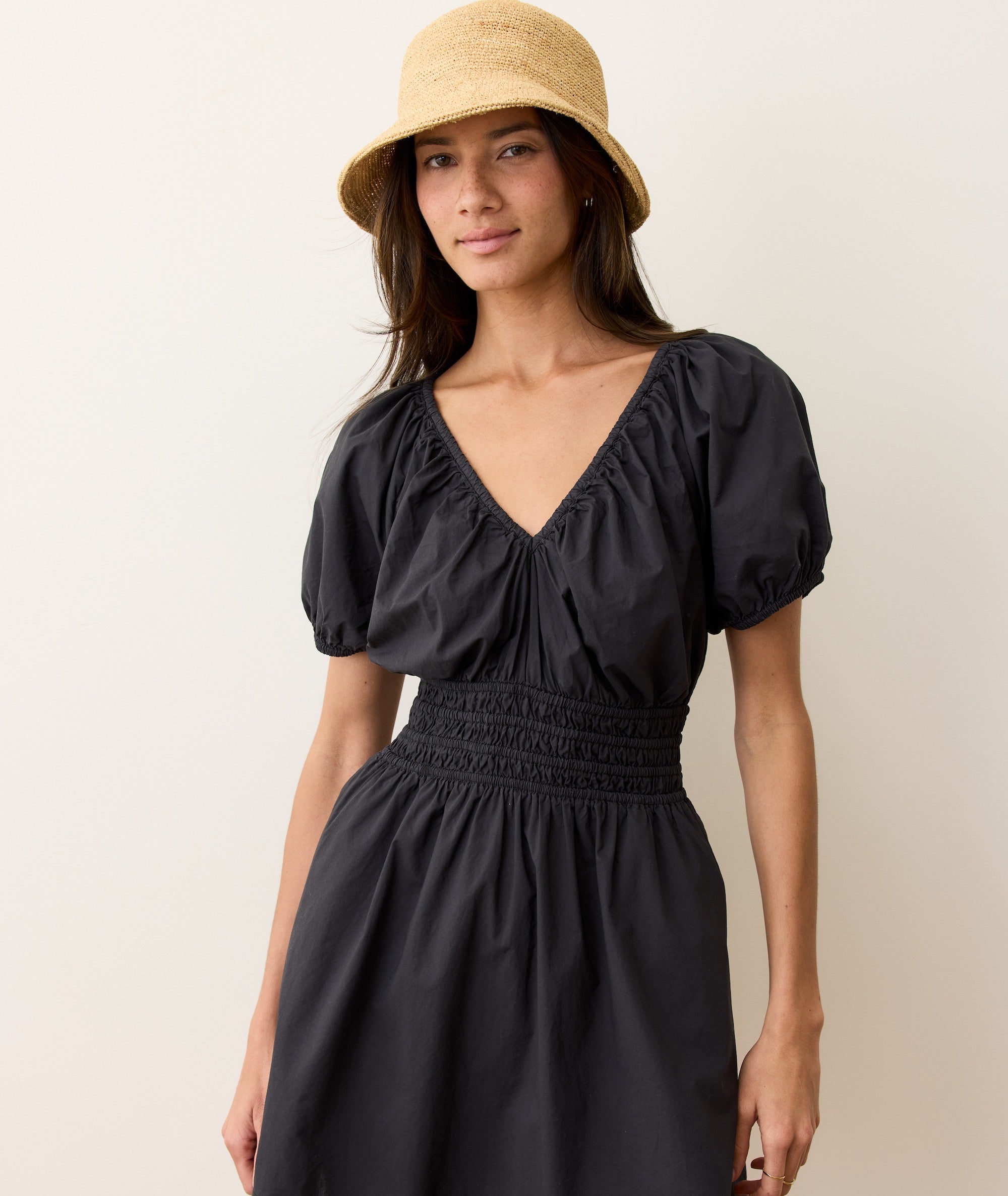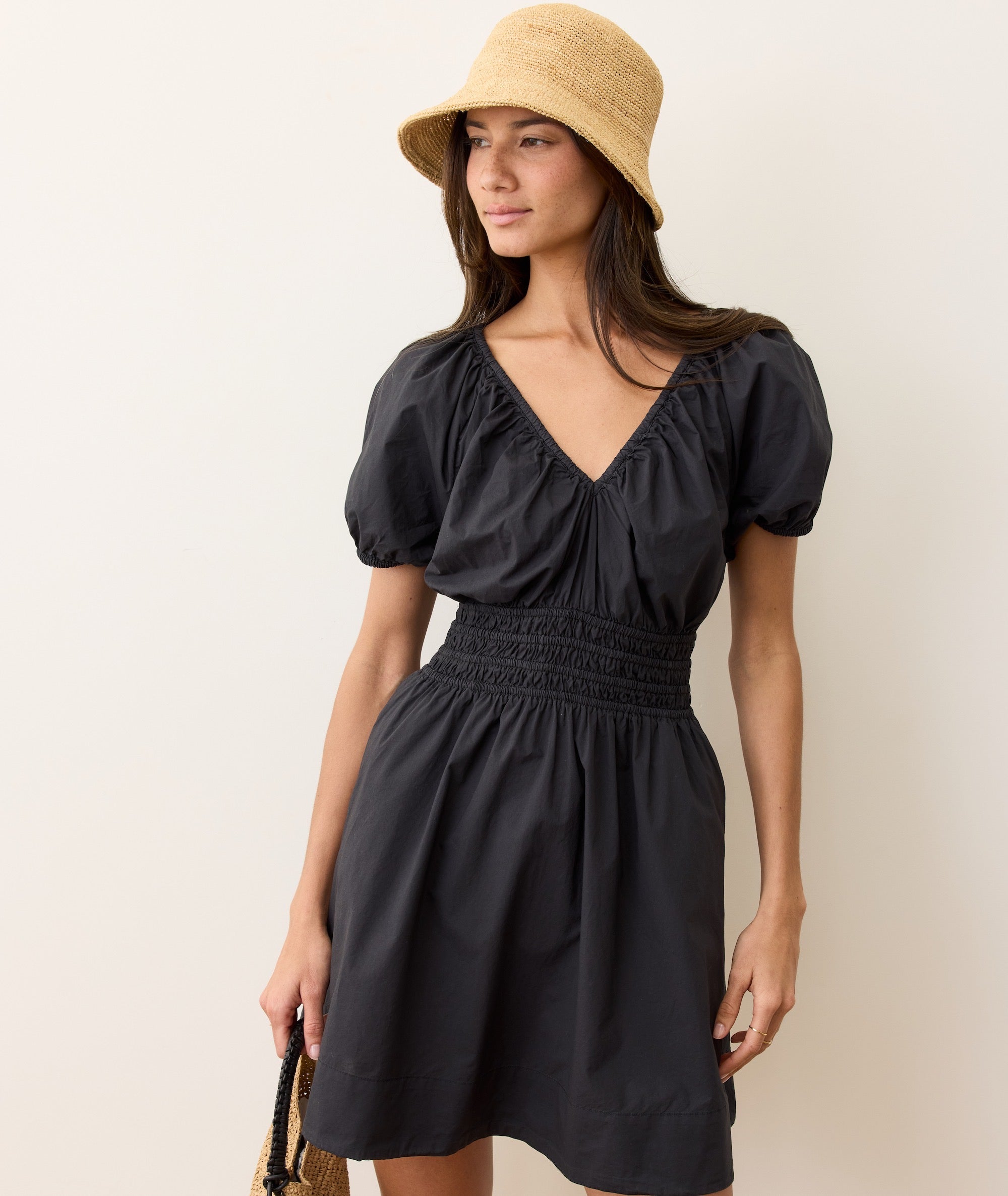 You all loved the midi version of this dress so much, we turned it into a mini for summer. With a flattering V-neckline and smocked waist, this dress is all about that effortless, feminine fit. Made from a slightly heavier version of our Cali poplin, it’s breathable and ready to move with you through the season. Toss on some earrings, sandals, and you're ready for vacation.