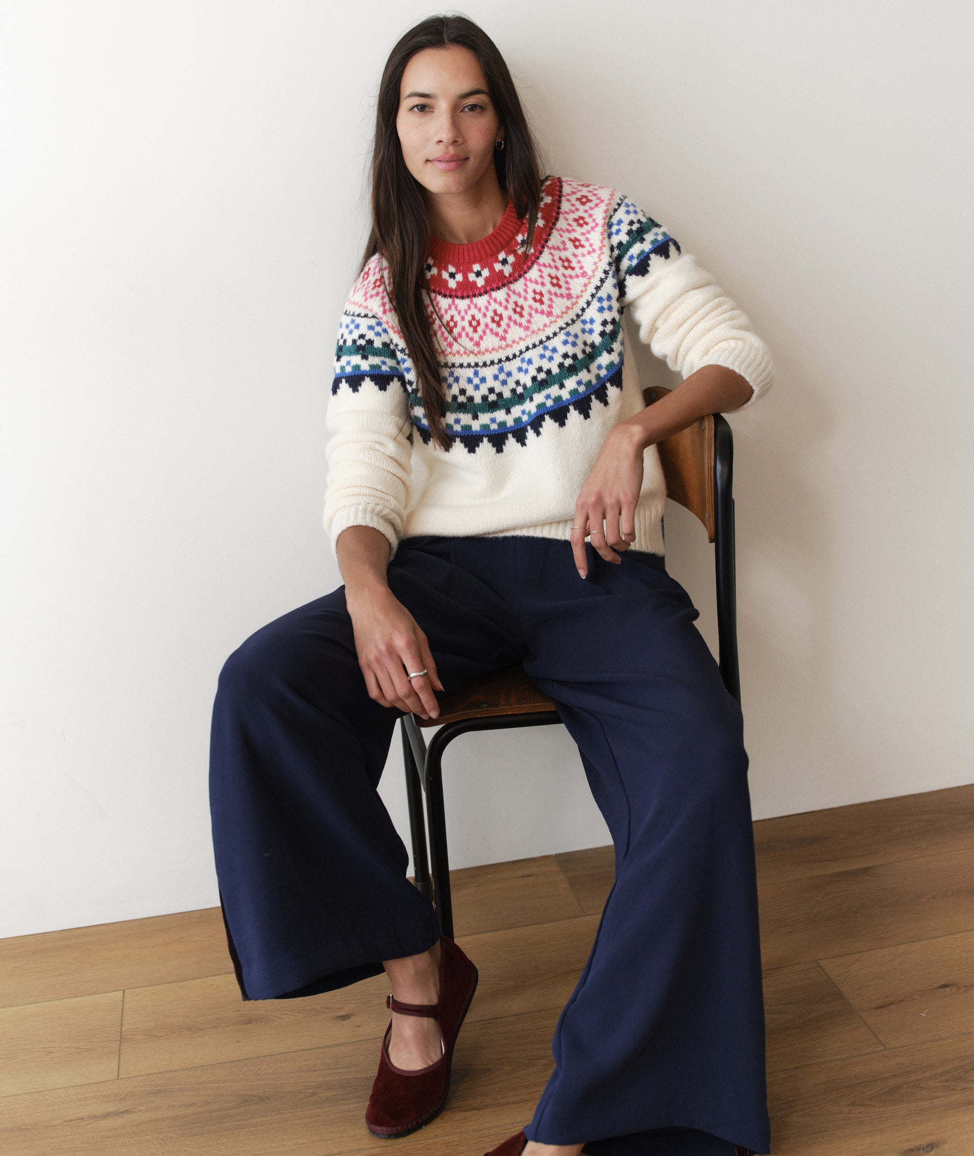 There's just something about a Fair Isle sweater in winter, especially when they're this lofty. We kept all the things you love about these sweaters, like the fabric and easy relaxed fit, but are introducing new colors this year, including a first-ever true neutral in gray. Now you can get all the wintery good feelings and still hit the monochrome trend. Did we mention there are matching hats?