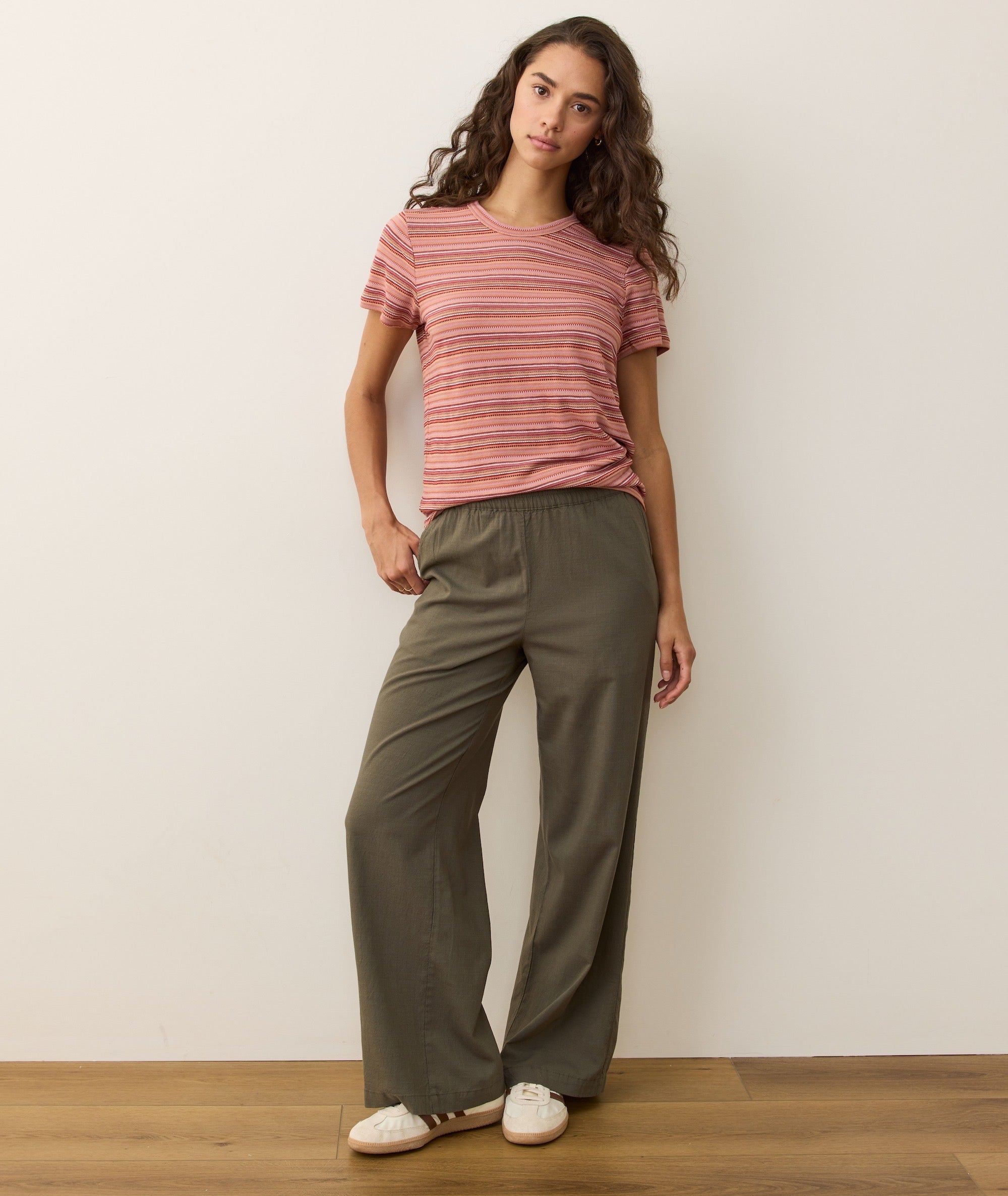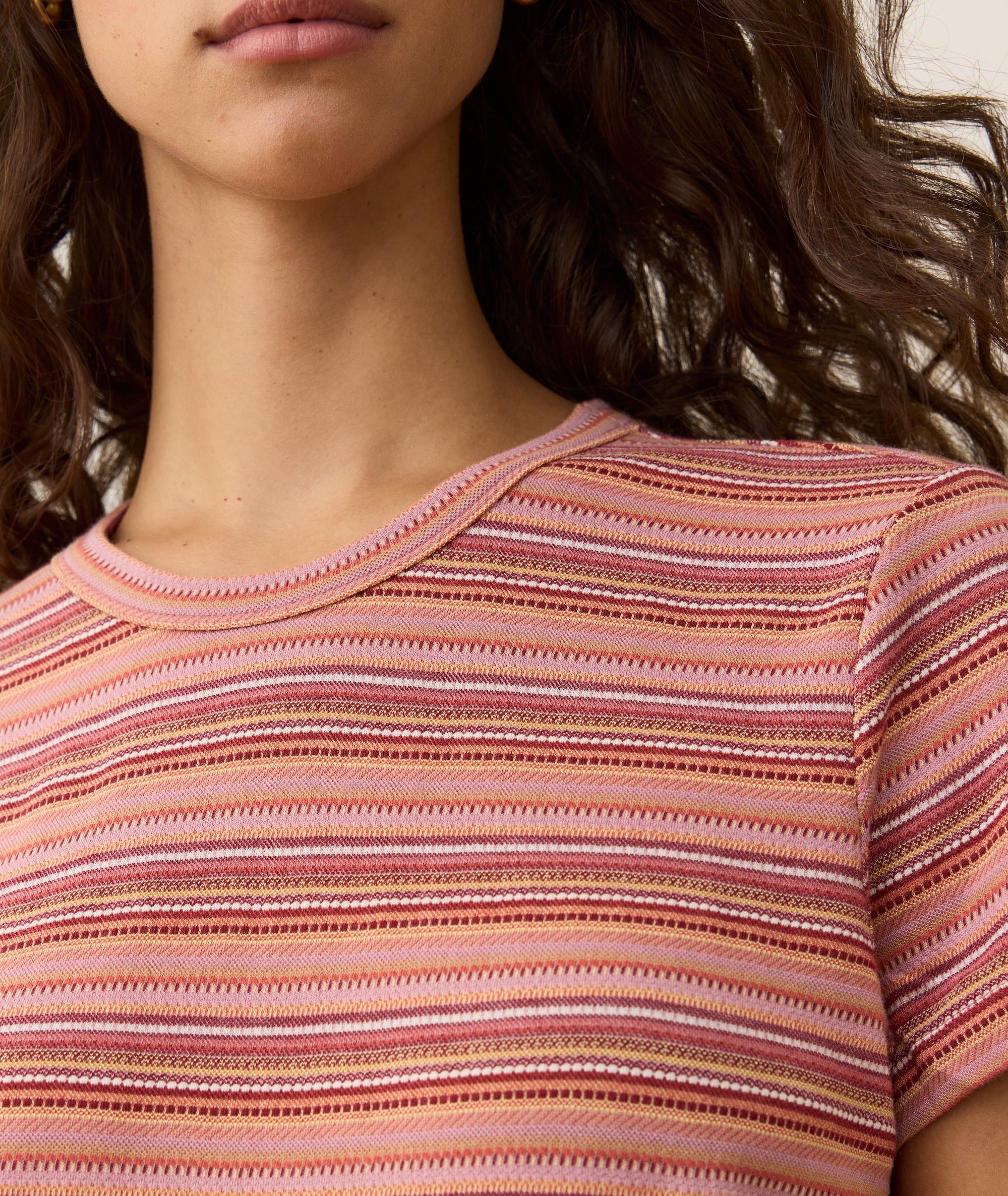 Other jacquard tees tend to be a little rough, but we cracked the code on weaving one that feels even better than your softest jersey tee. It’s a slightly looser knit that feels almost sweatery, and the perfect pop of (several) colors to layer with any of our denim jackets. Or you know what, just wear it solo. It’s still summer after all.