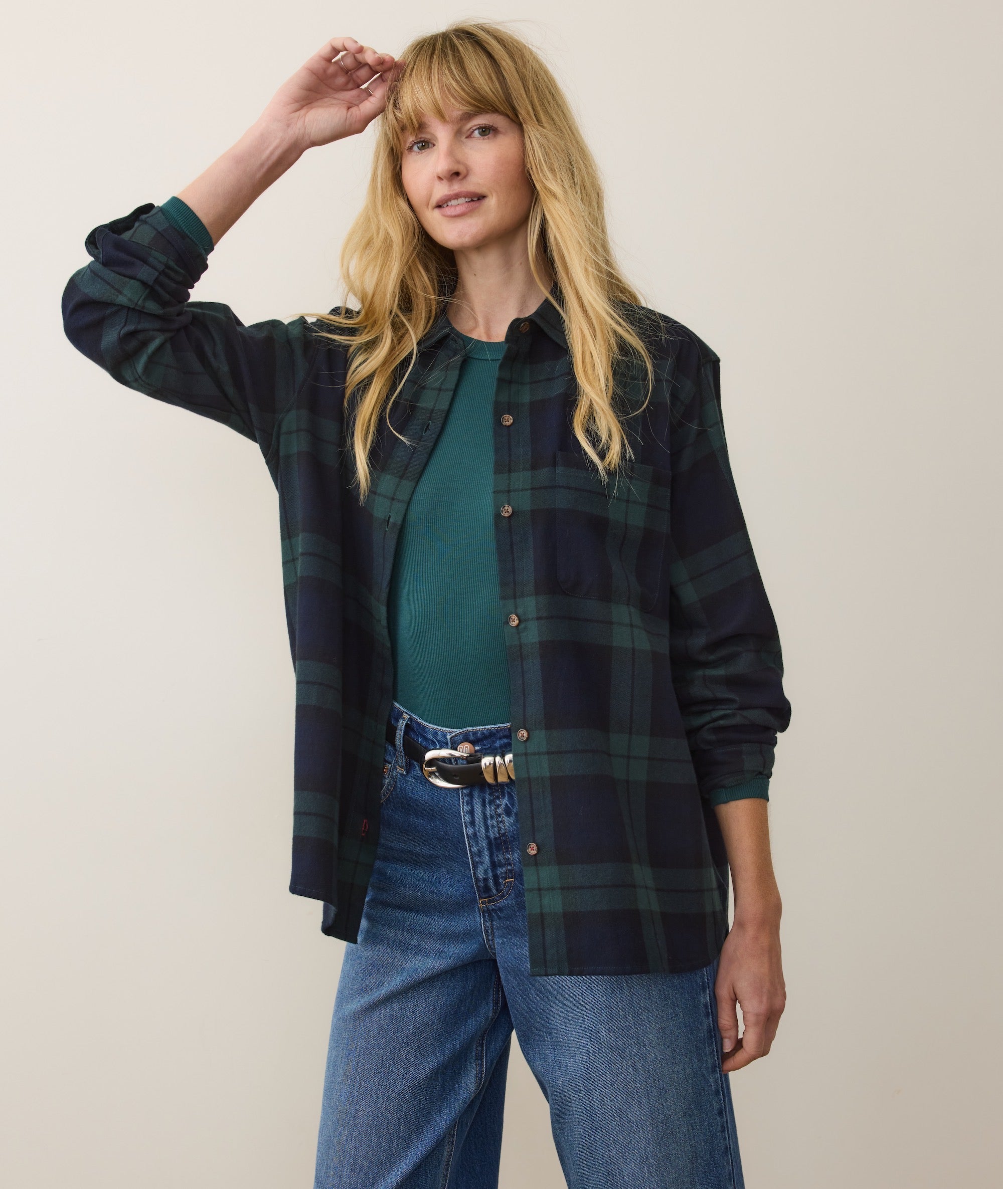 We think there's nothing better than wrapping ourselves up in a cozy flannel shirt on a cold winter day, so this year we're making it easier. Not only did we make a ridiculously cozy flannel, but we made this shirt with our amazingly oversized Jane silhouette so you can truly wrap yourself up. So go ahead, put on your slippers and pull those knees up. Then get out of the house and show everyone how good you look.