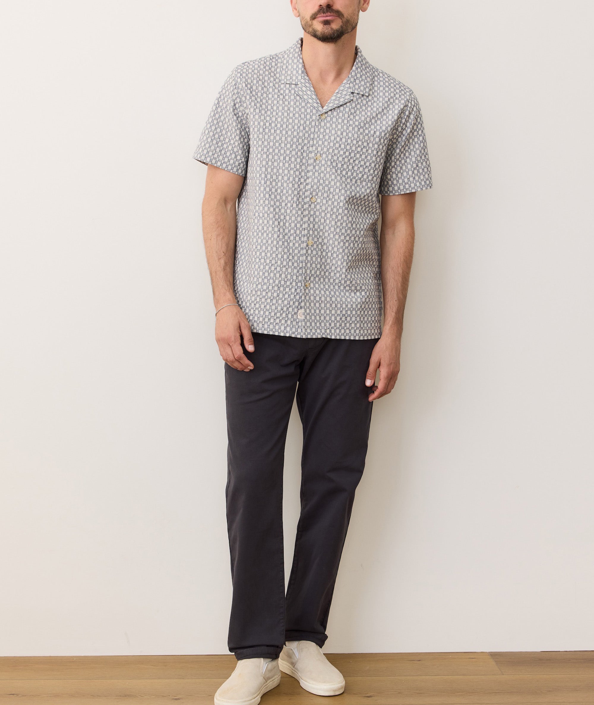This is not just a check pattern you see, it’s one you can feel. The jacquard pattern is woven right into the fabric with long floats of yarn that give it a one-of-a-kind wavy look on the back. Just the right amount of trippy, if you ask us.