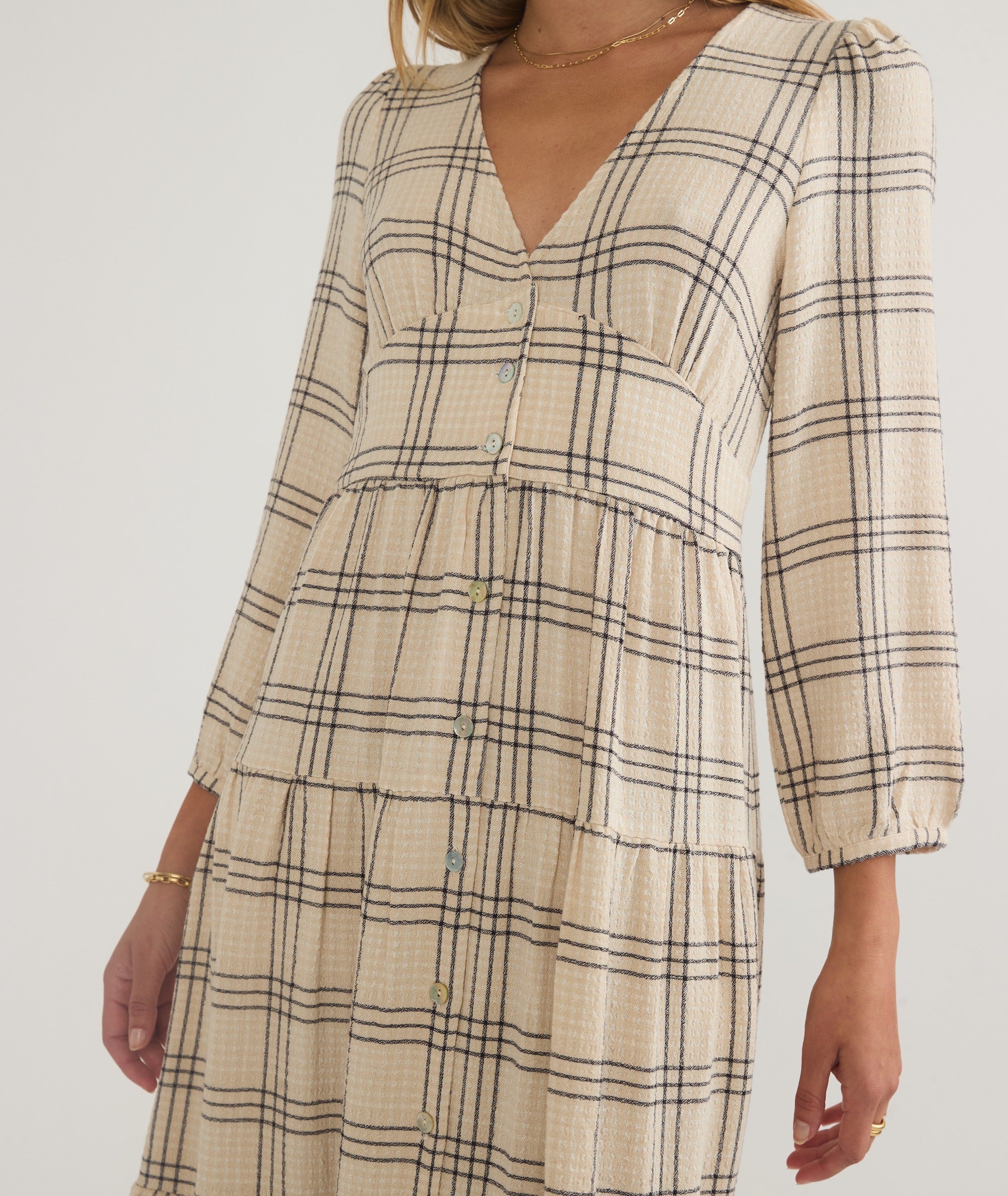 Put down the holiday sweater for a minute and give this a go. This dressy new style has easy tiers, a flattering neckline, and loose sleeves that drape beautifully. It pairs perfectly with your favorite heels or boots. Like we said, give this a go.