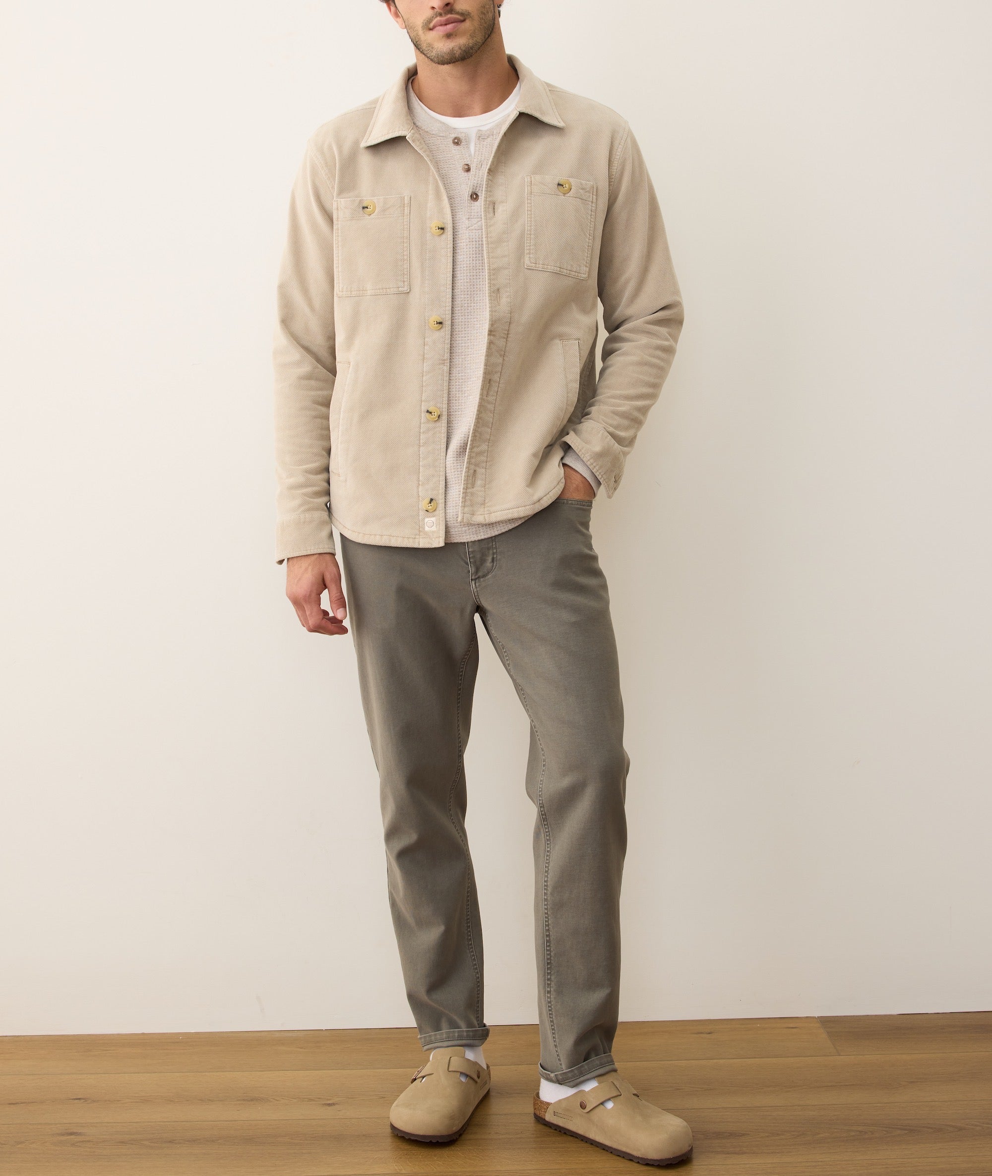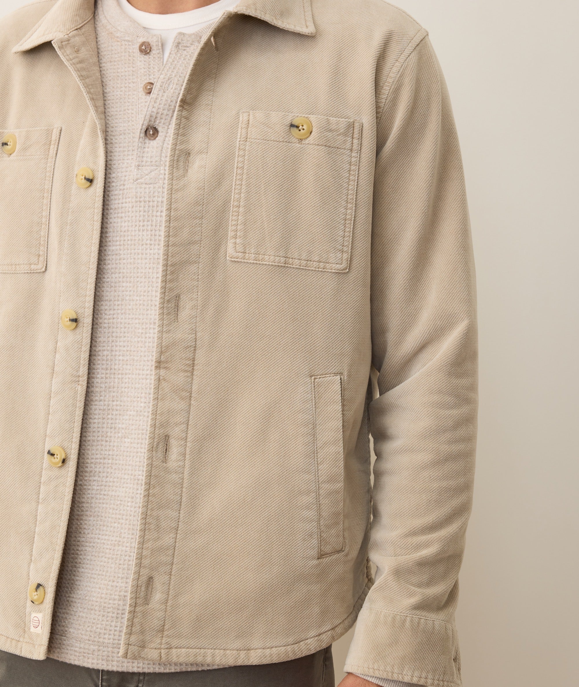 People love our Max overshirts for their broken-in feel and perfect stretch, but we wanted a version that looked a little more cleaned-up. So we traded the corduroy for this ultra soft moleskin fabric with a slight diamond pattern. It's still thick enough to skip a coat, but just a touch more dressy. And yes, it's amazingly comfortable.