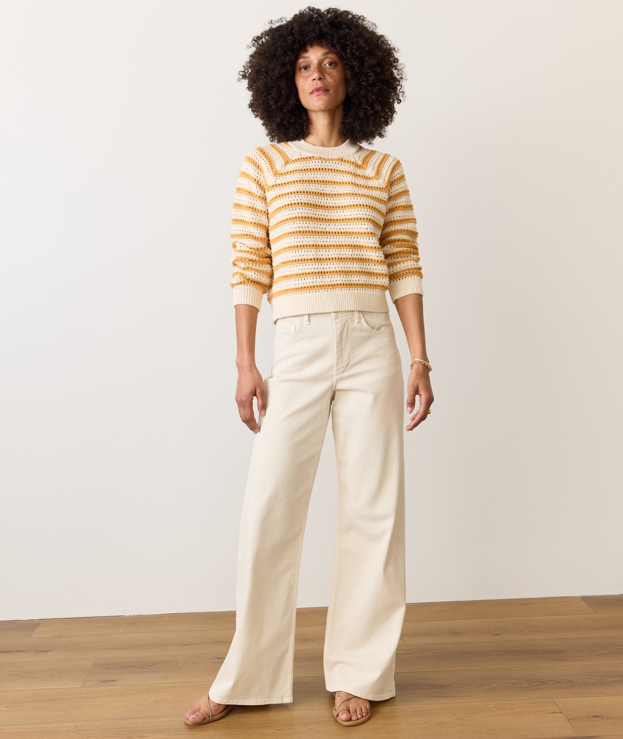 A lightweight, open-knit fabric with a dry hand feel that’s as breathable as an ocean breeze. Midweight enough to keep you cozy but airy enough to never feel stuffy—perfect for layering or wearing solo as the seasons shift.