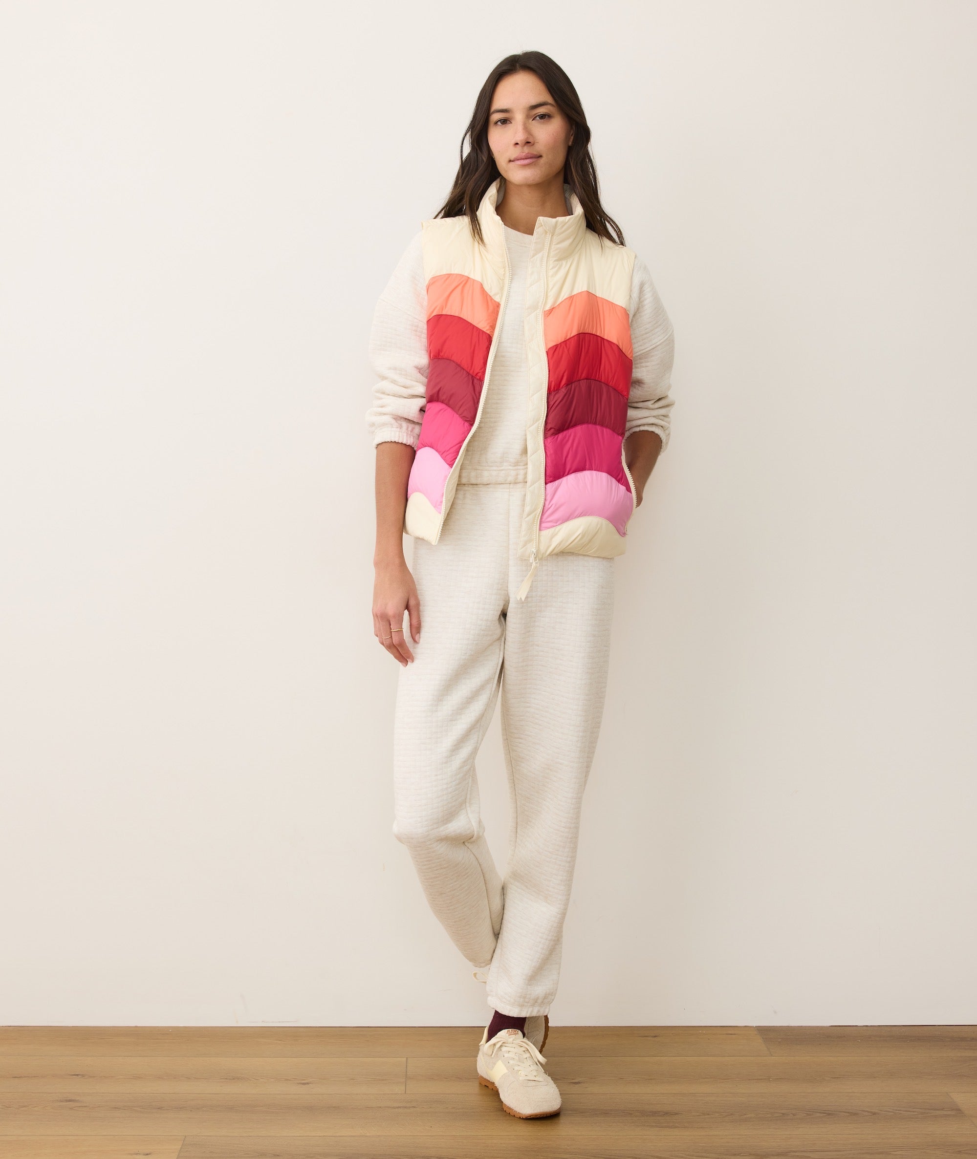 Have you ever wanted the coziness of a puffer, but to still show off your outfit? That's why we took the same perfectly lightweight fabric from our Sunbeam Puffer Jackets and turned it into this Sunset Vest. Cozy, ready to outfit, and perfect for wearing indoors and out. That's something your coat can't say. (Do coats talk?)