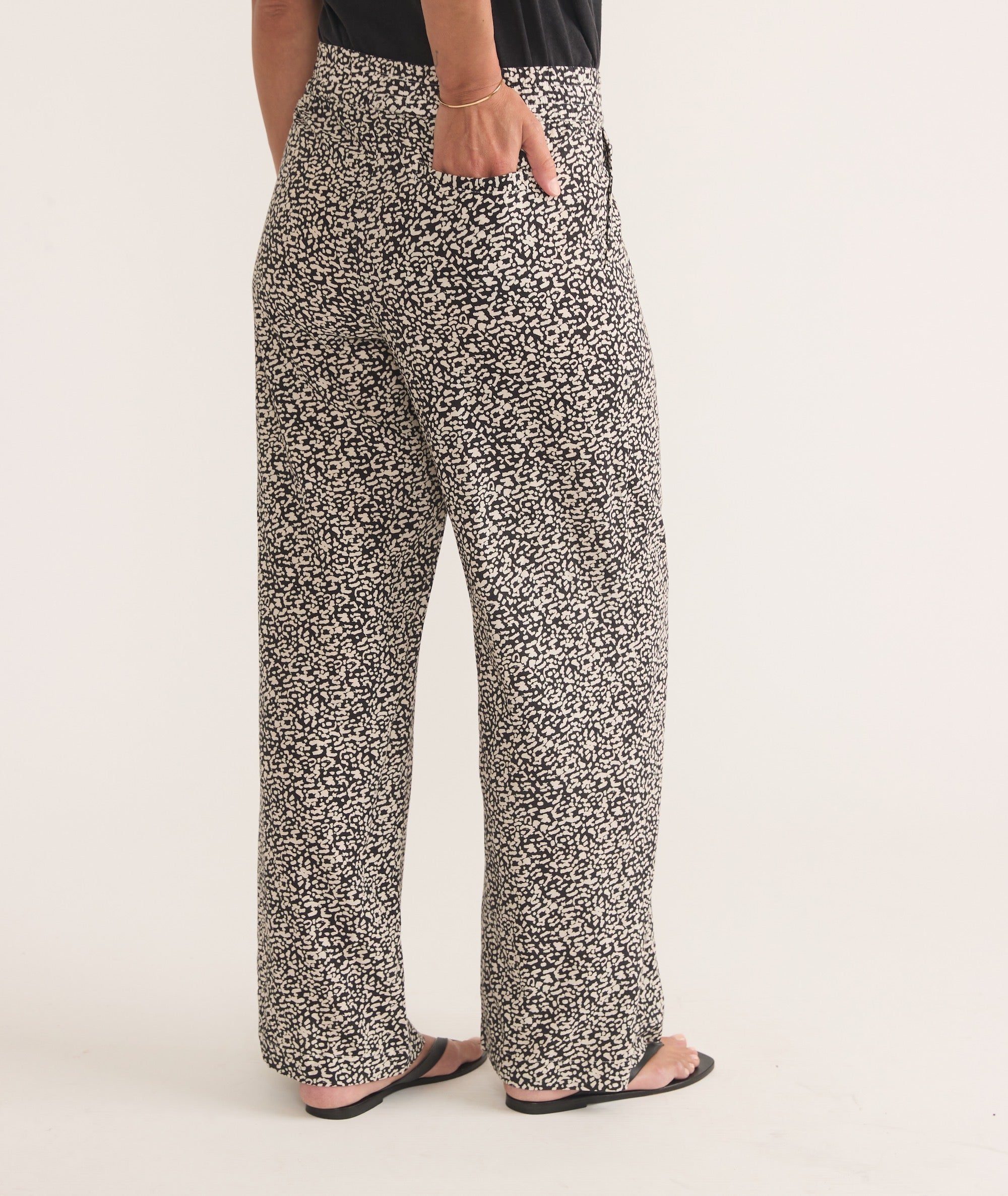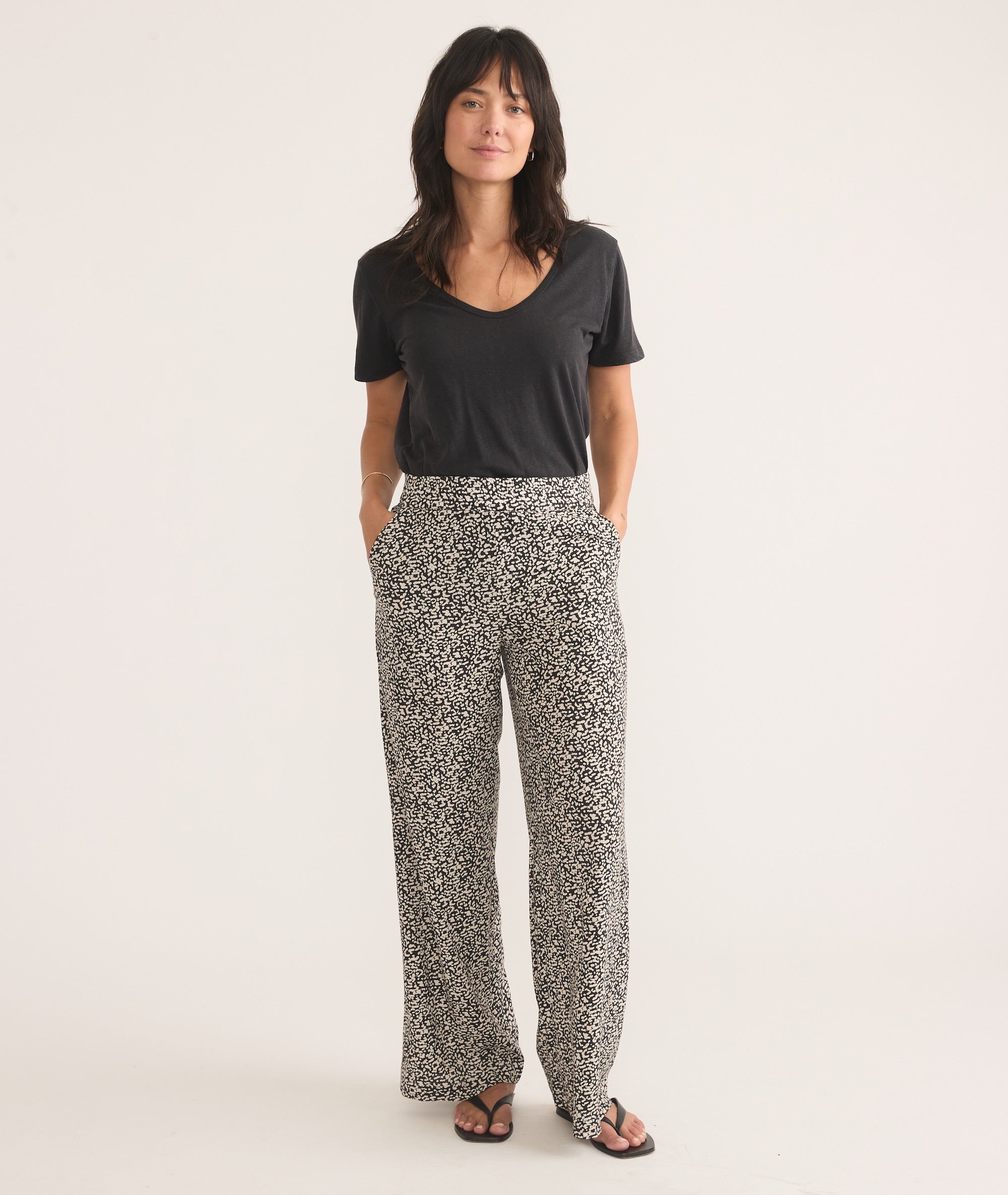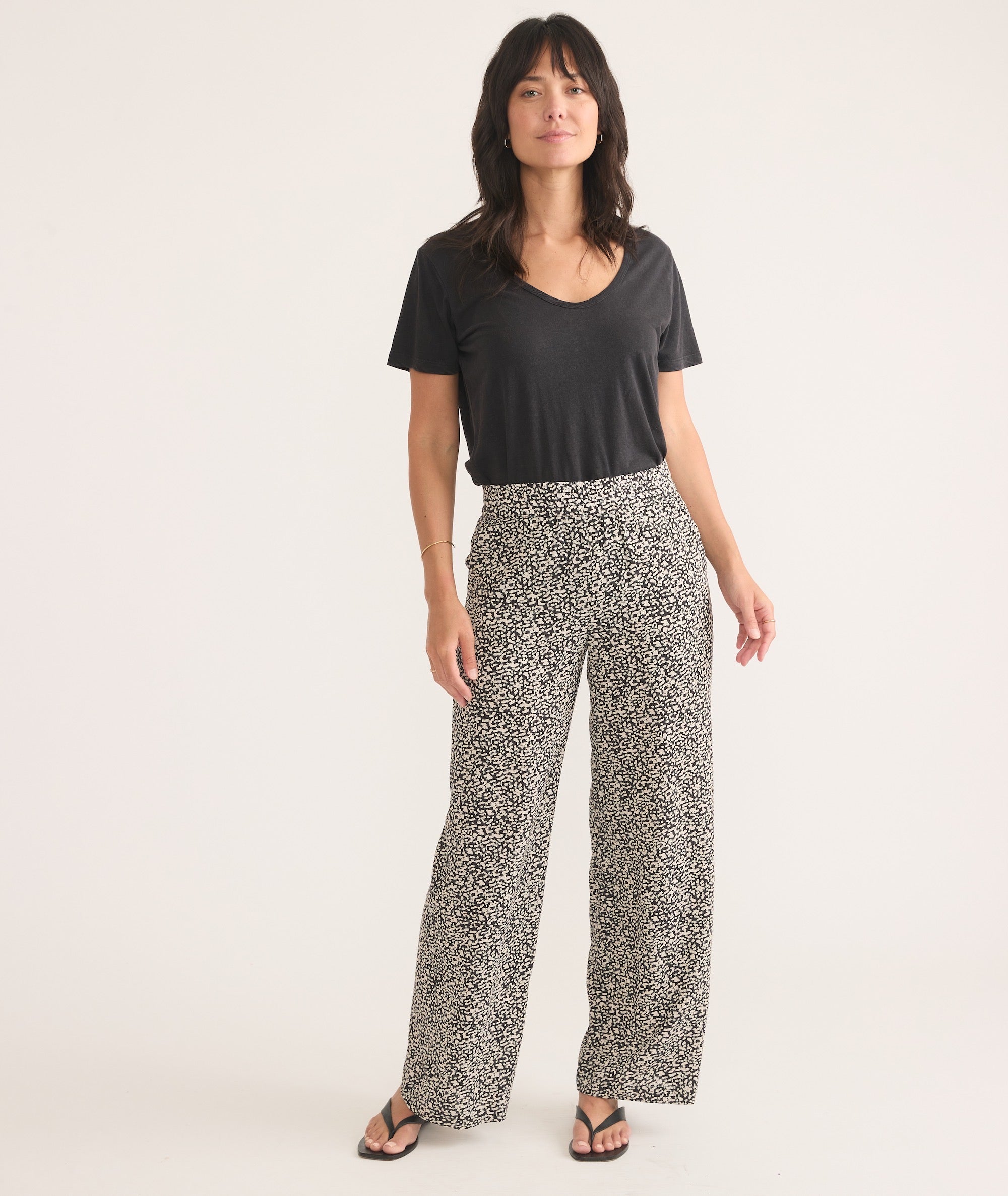 Here she is, the most laid-back trouser ever. It's the kind of pant that instantly makes you look put-together, while still being comfortable enough to wear all day. They've got an elastic waist, wide, full-length legs, and a soft, drapey fabric.