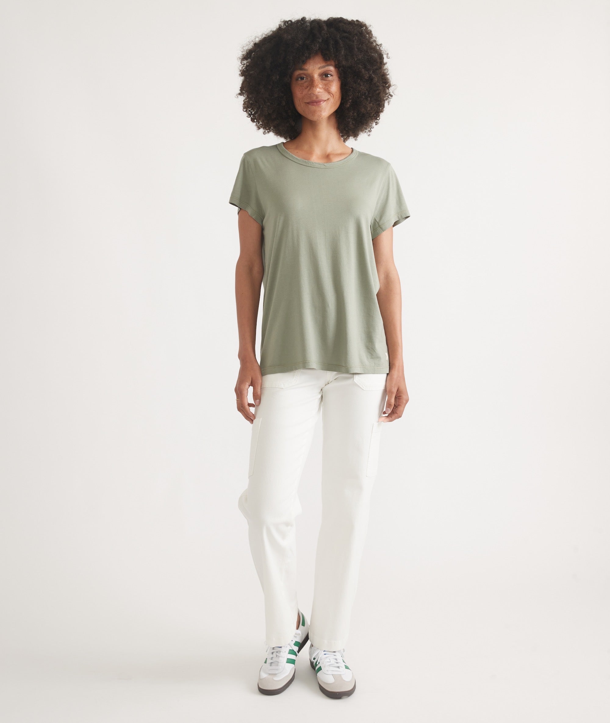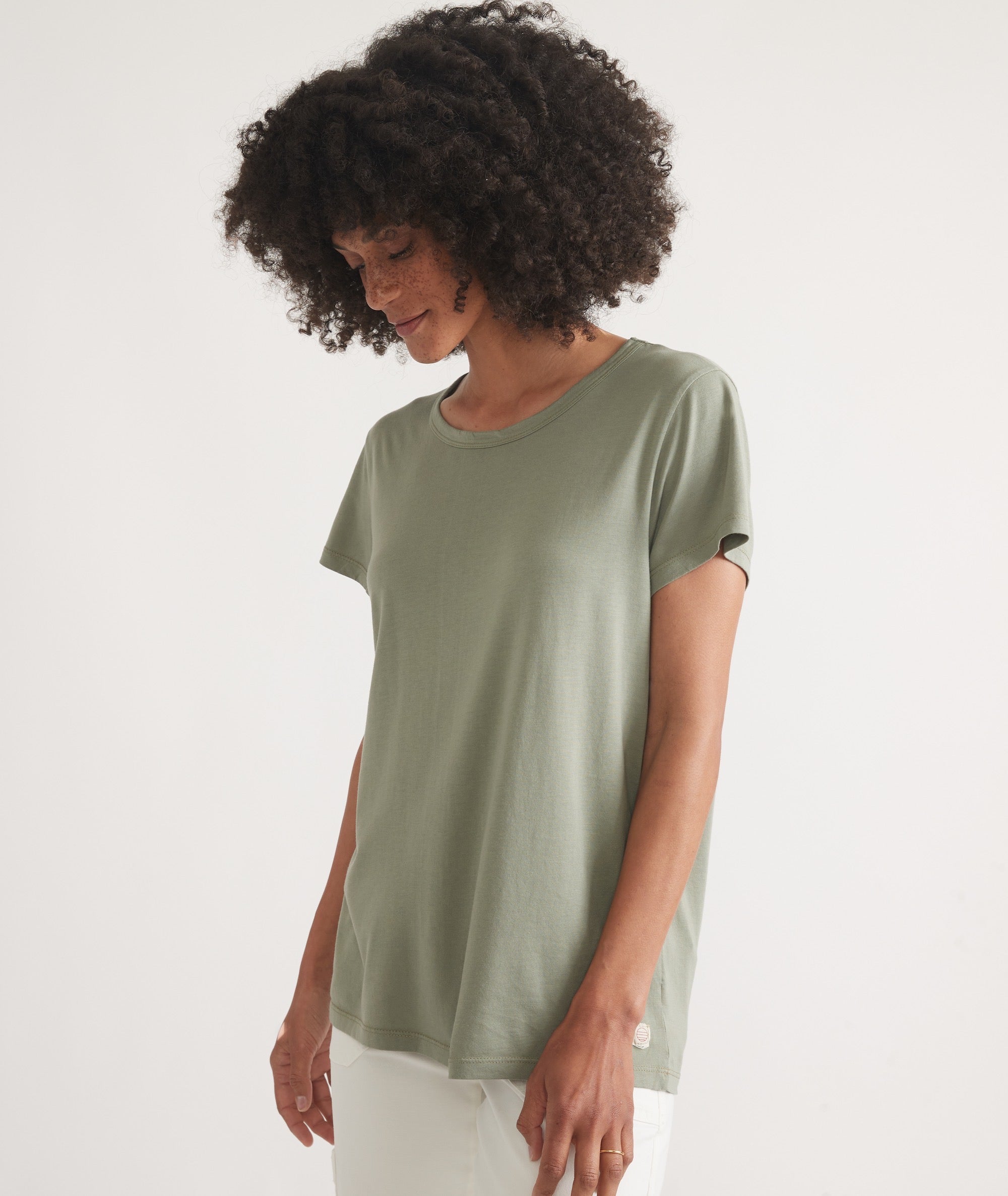 These shirts are the reason why we exist. Not only are they the most absurdly soft shirts you'll ever wear, but they're also made with recycled beechwood, so they're sustainable too. It's the crew of your dreams: soft, never see-through.