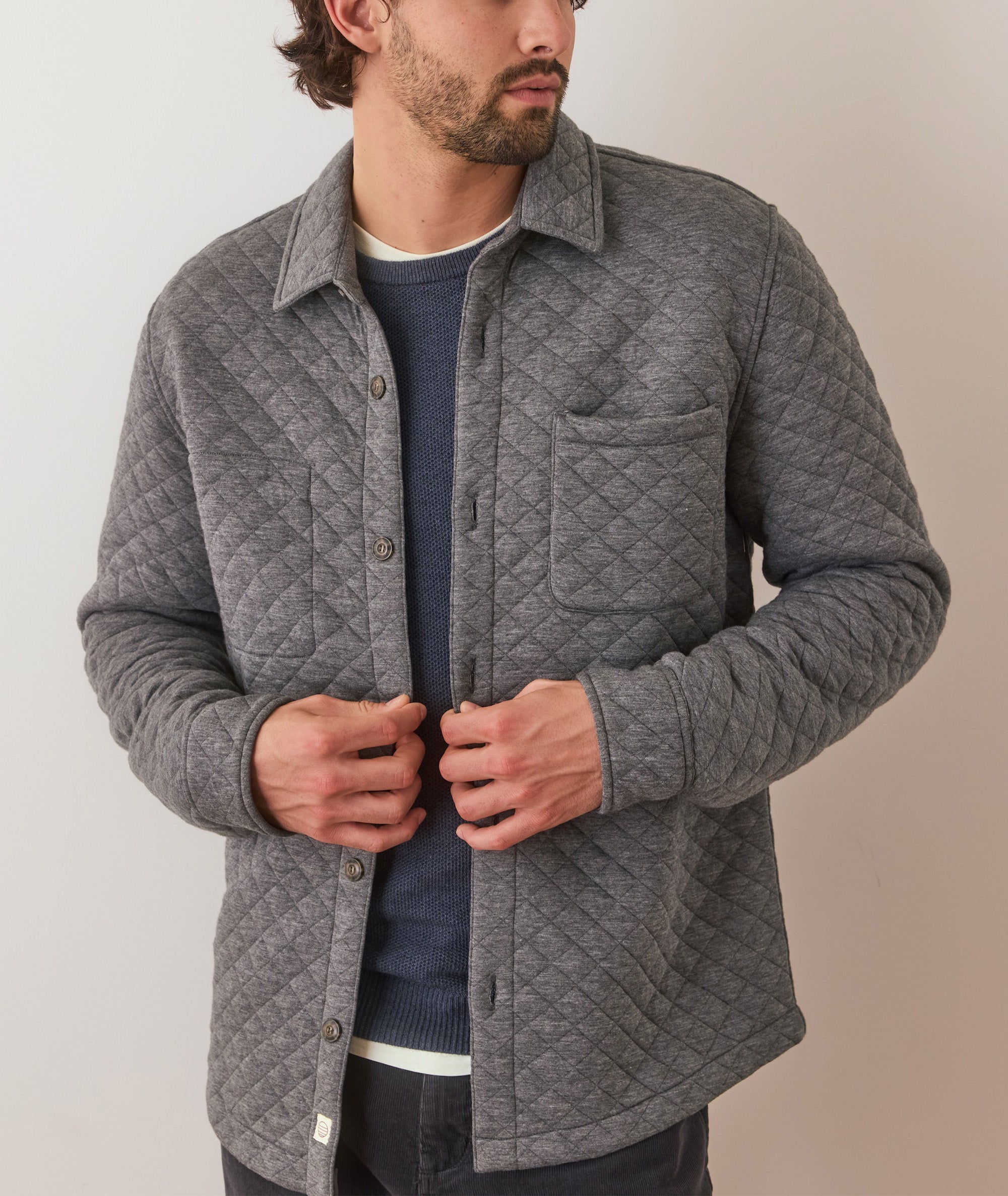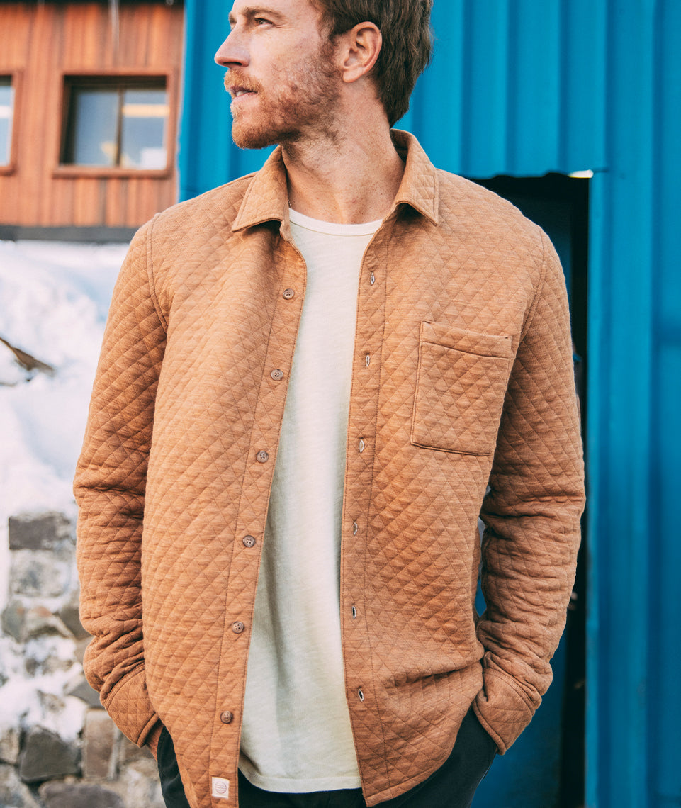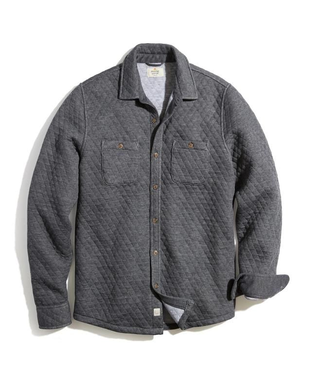 We're using the same fabric we use for our Corbets (two absurdly soft pieces of fabric, filled, and quilted) but we made it a bit heavier so you can wear it as a jacket-type thing. We also gave it a different color inside, so you can show a little contrast color depending on how you roll (... up your sleeves).