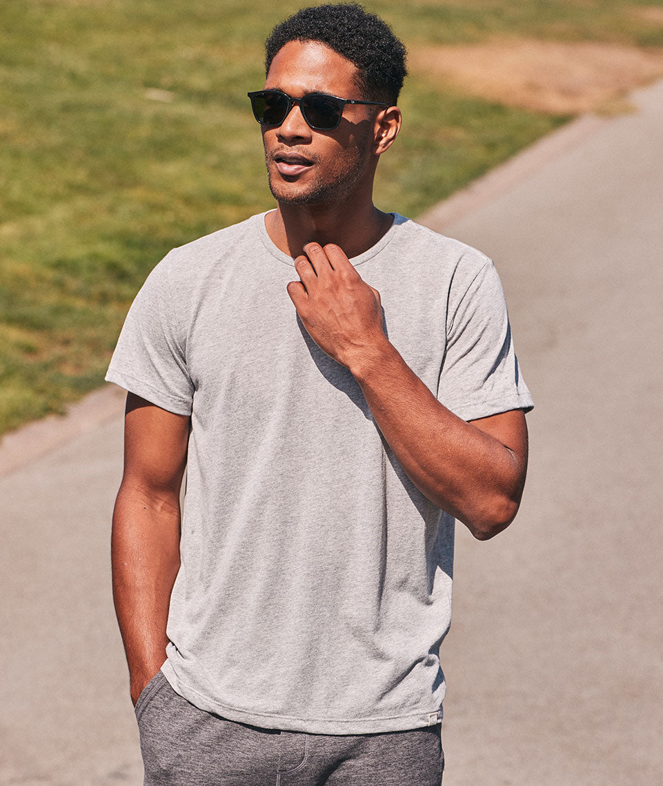 We mixed our Signature Re-Spun fabric (you know, the one made from your old tees) with some recycled polyester and sustainable Tencel® Lyocell. The result? A low-impact, high-softness tri-blend fabric. Which is exactly what we’re about.