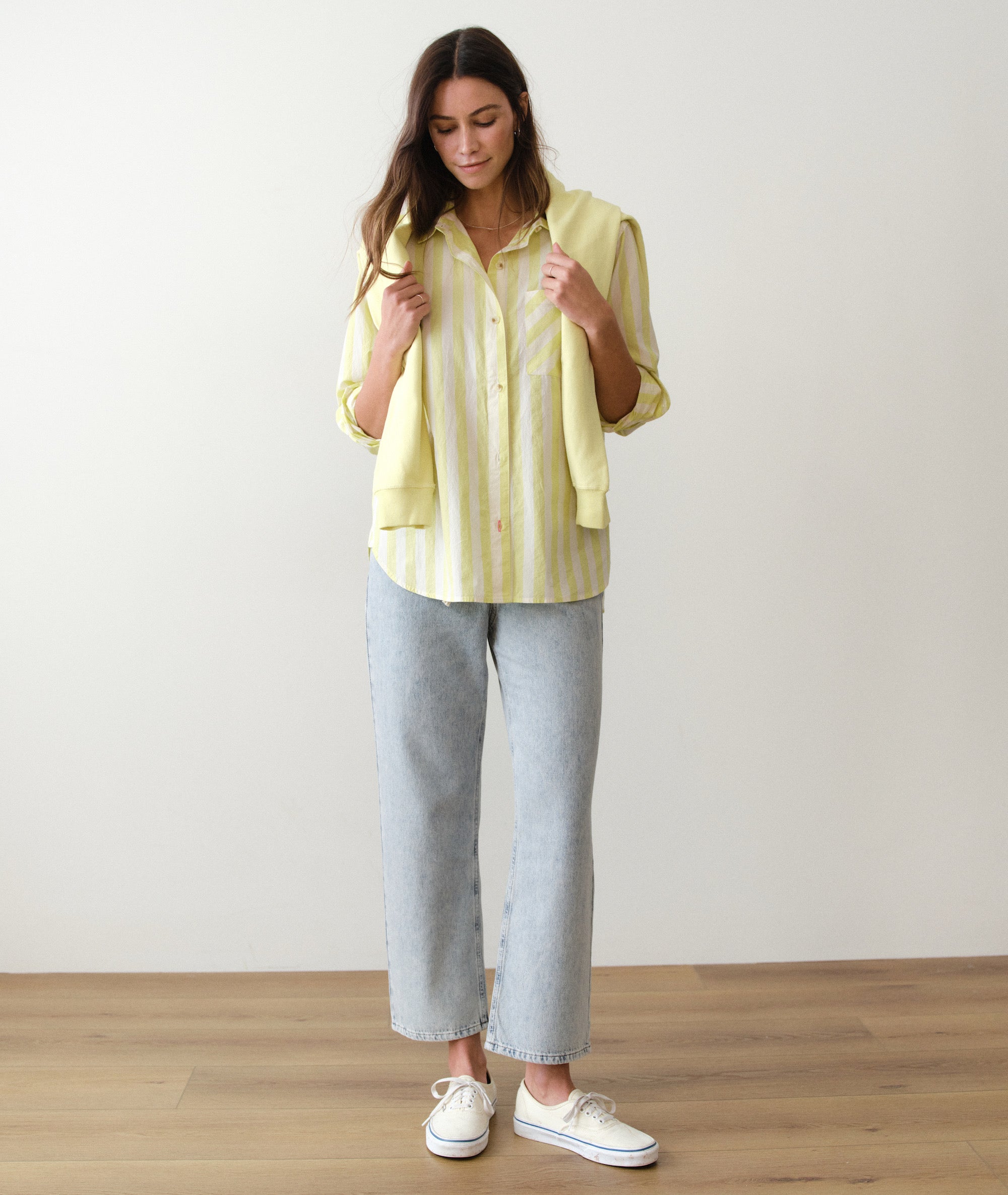 We love the look of denim, but we don't love that stiff, pinchy feeling most jeans give you. So we created this: the Ella pant. A beautifully easy pull-on waist, an amazingly soft and lightweight denim, and a simple straight leg that you can wear with…basically anything. And with how good these feel? You're going to want to.