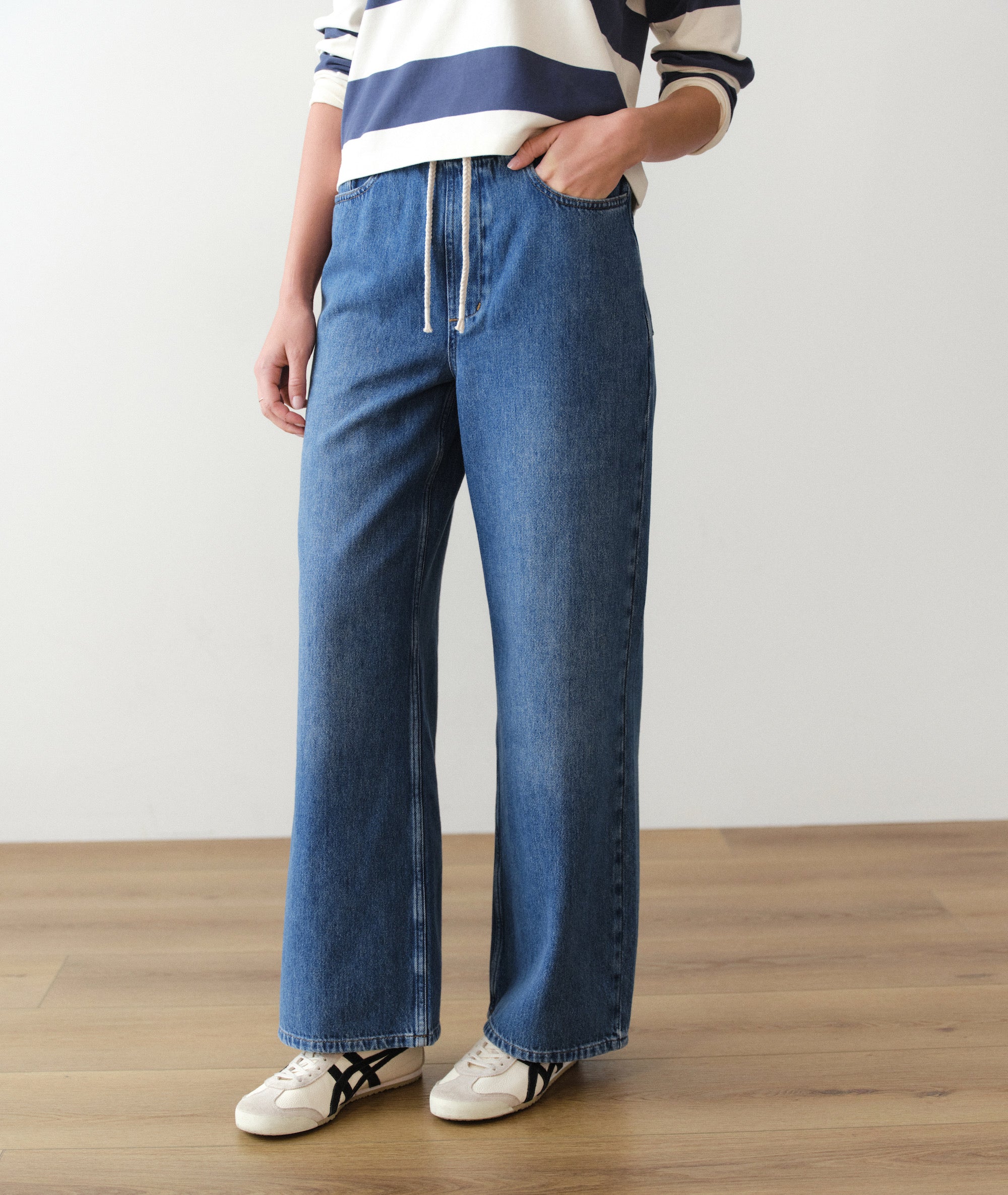 We apologize to your old favorite jeans in advance, because these new denim pants are so cute and effortless that all your others are going to stay in the drawer. Pick from three washes in ultra soft stretch denim, each with an easy and oh-so-comfy drawstring waist. Put them on and wonder why it took so long to feel this comfortable in denim.