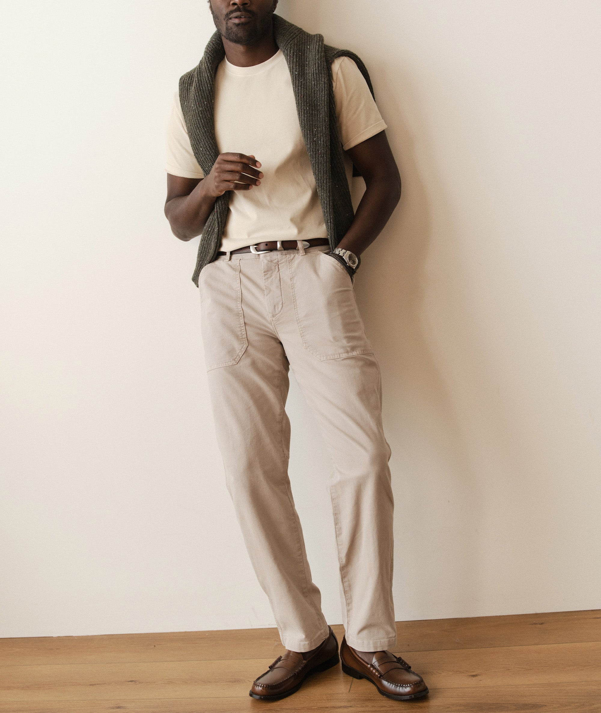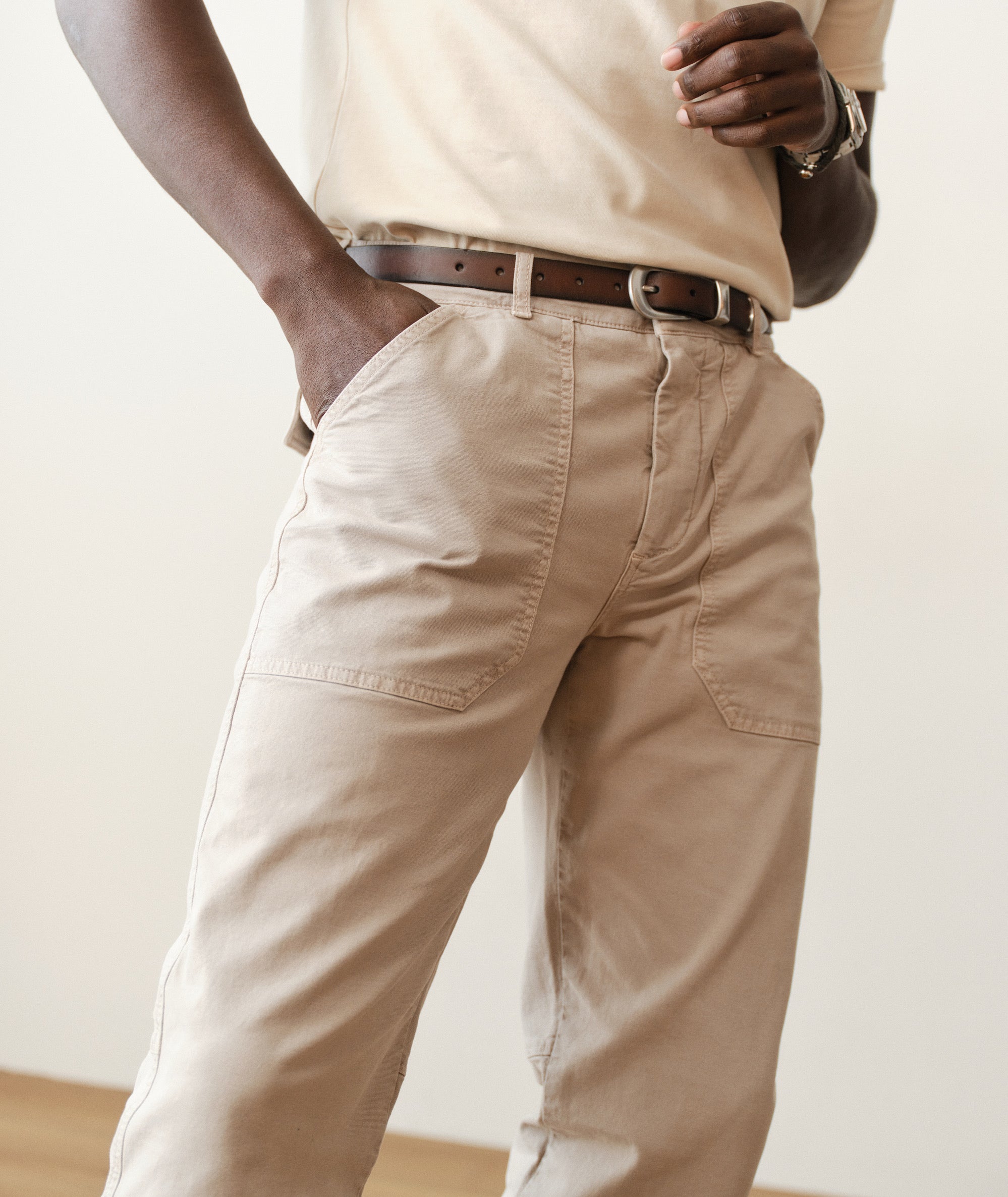 Say hey to our new Breyer Utility Pant (!) A fan-favorite for it's soft fabric, we've made some tweaks to give it a more vintage look that holds its shape and fits any occasion. The look of workwear, without the work. These pants are made from soft, heavyweight cotton, have utility-inspired patch pockets, and are broken-in right off the bat.
