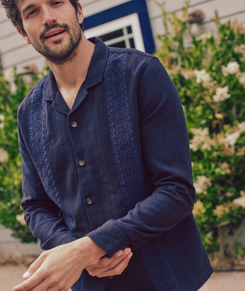 Your new go-to fall shirt for when you wanna step things up: a long-sleeved resort shirt made from 100% cotton with cool tonal embroidery/dobby stripes. Prepare for a lot of "Whoa, where'd you get that shirt?".