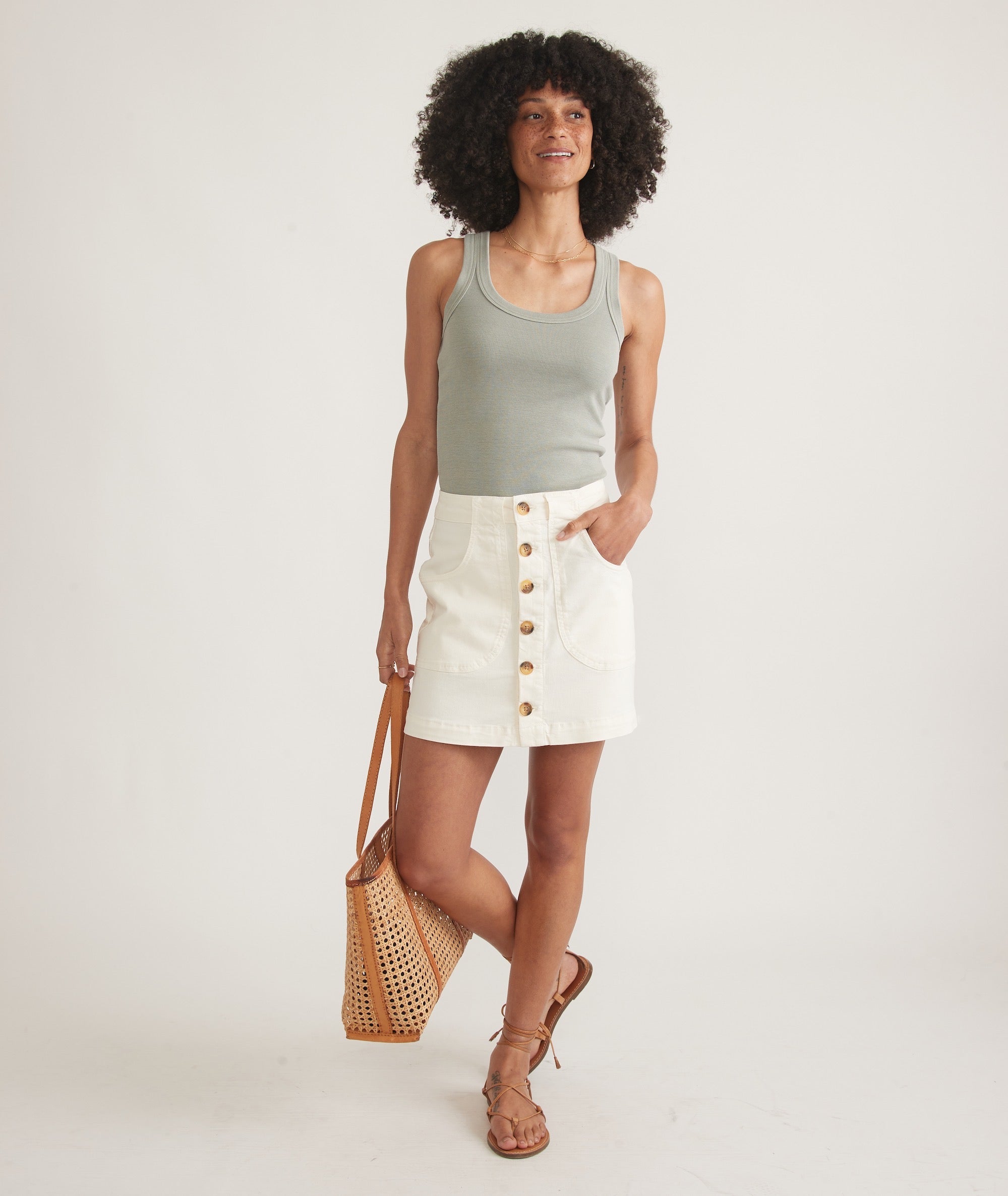 We wanted to create a comfortable, versatile skirt you can wear all year long, and we did just that. This denim mini skirt features a high waist, a-line fit, pockets, and functional buttons all the way down. It's perfect with tanks and tees in the summer, or sweaters and boots when it's cold out. Told ya, it works anytime.
