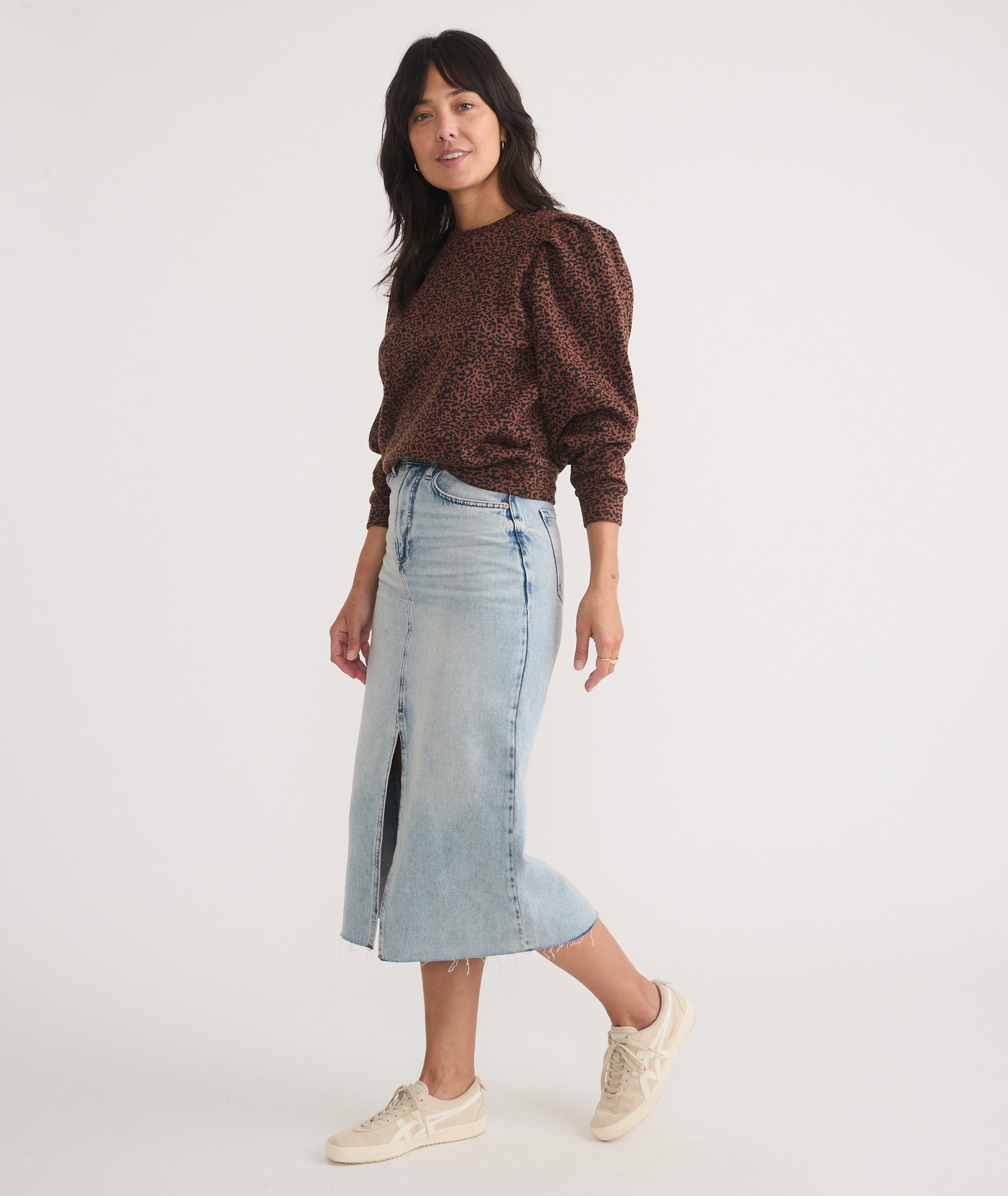 We fully believe that being cozy shouldn't compromise your outfit. That's why we created this slightly dressed-up sweatshirt. With a subtle puff sleeve, banded cuffs and bottom, this versatile style works with great with denim, Bridget pants, or even a skirt.