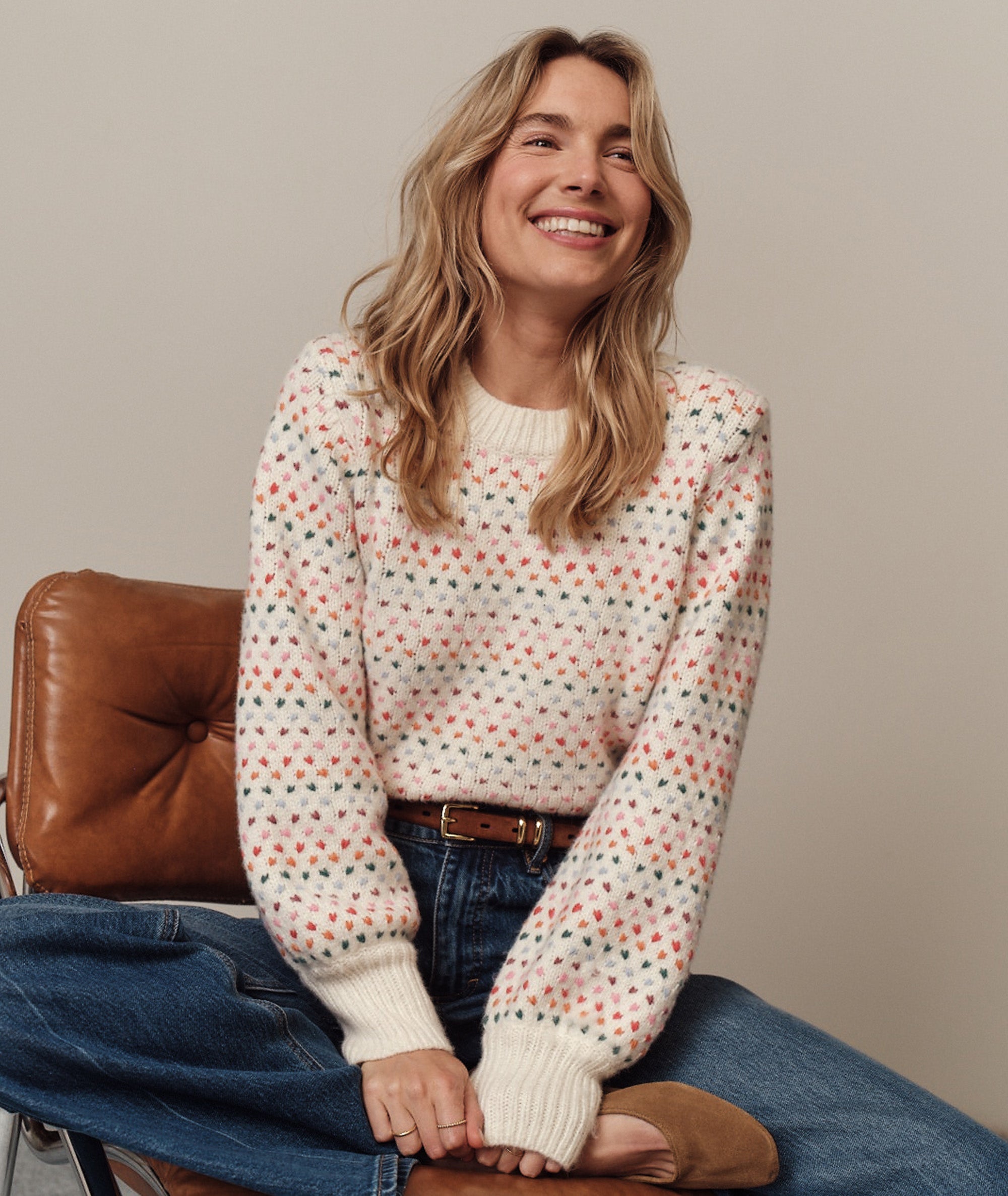 From the billowy bishop sleeves, to the perfectly textured knit, there's a reason people love our Alma sweaters so much. This year we kept the bestselling fit and feel, but changed up the birdseye stitch to give it a tossed look that's a little extra fun. And, we updated the fabric to be even softer. Because we just can't help ourselves.