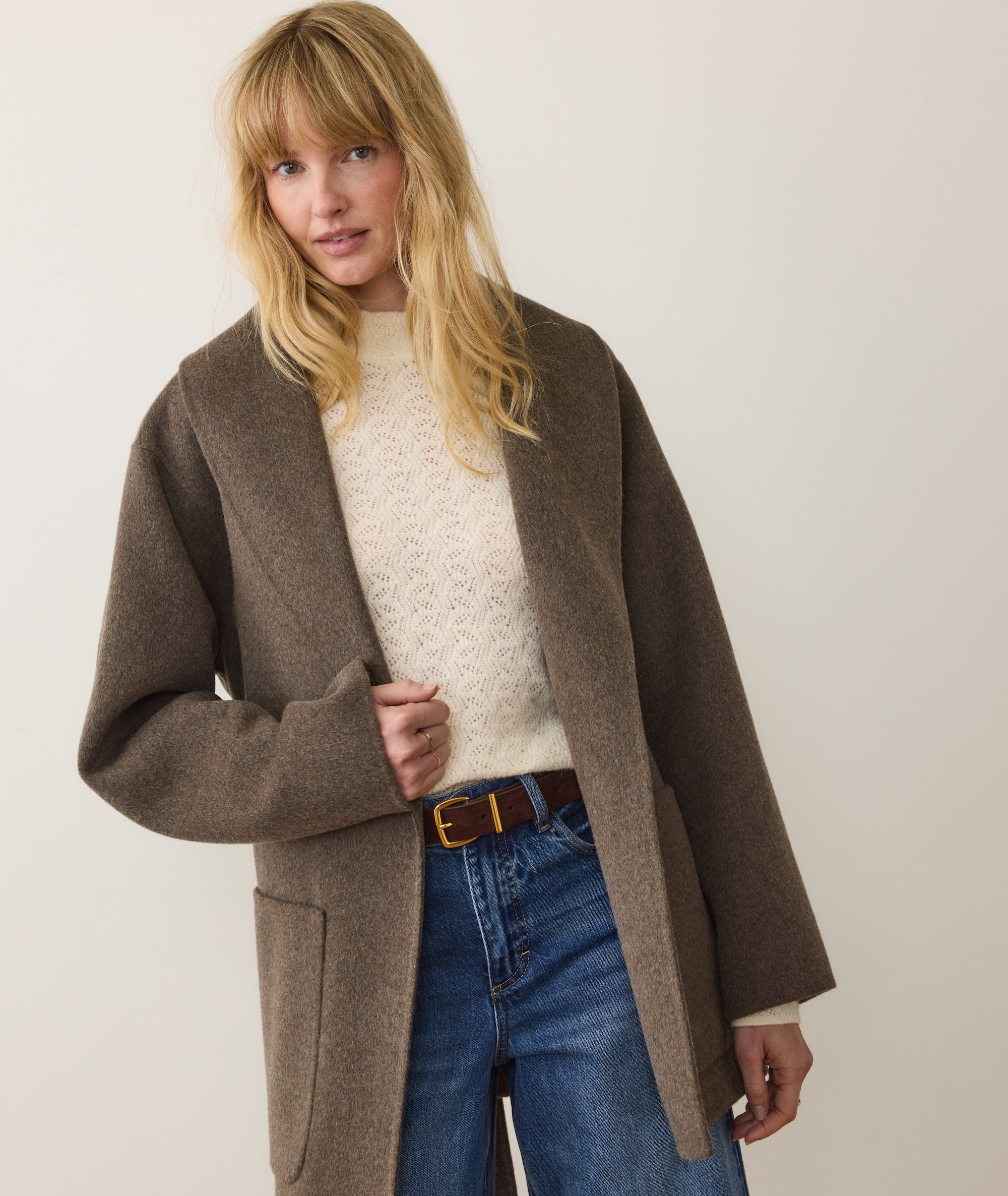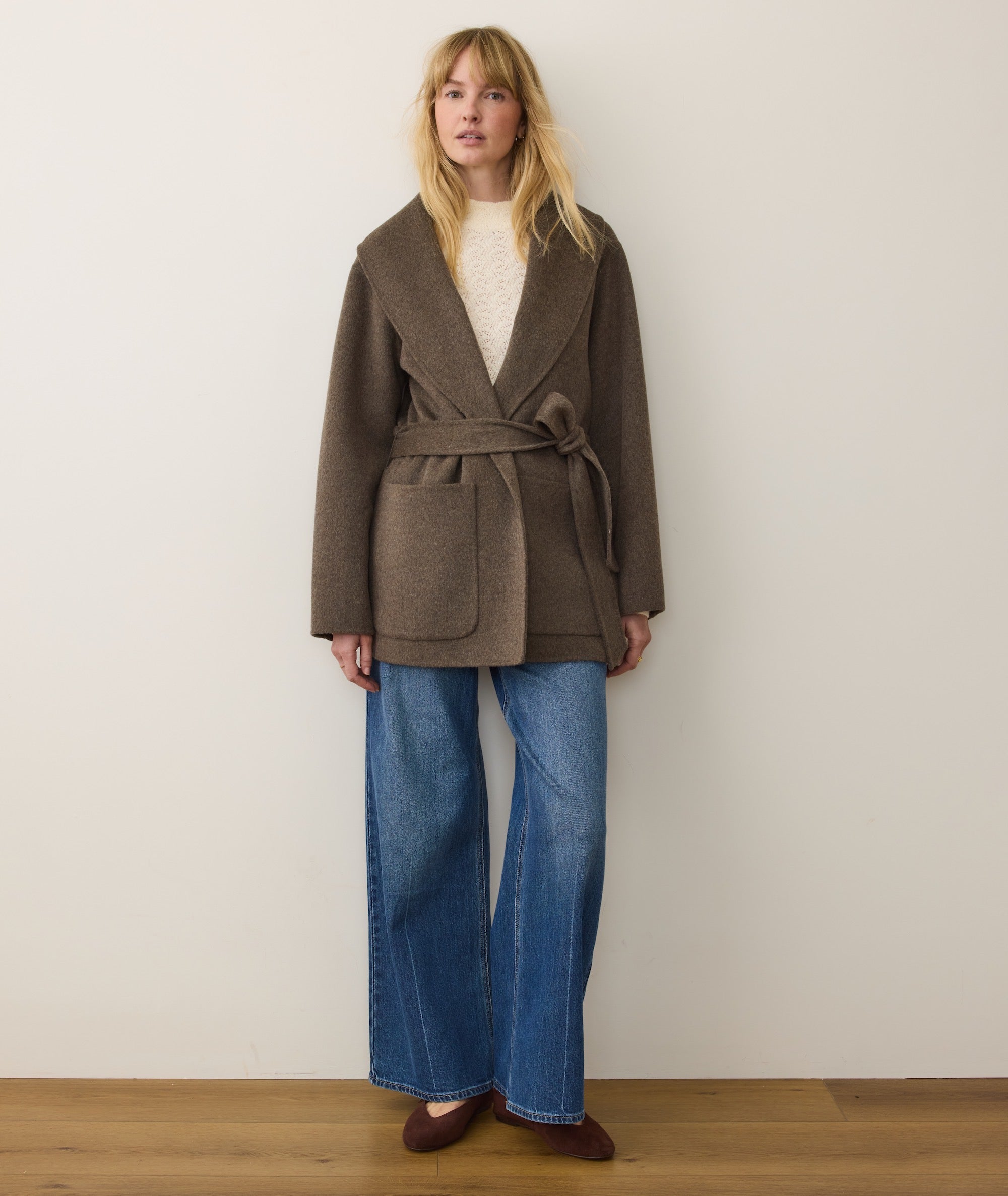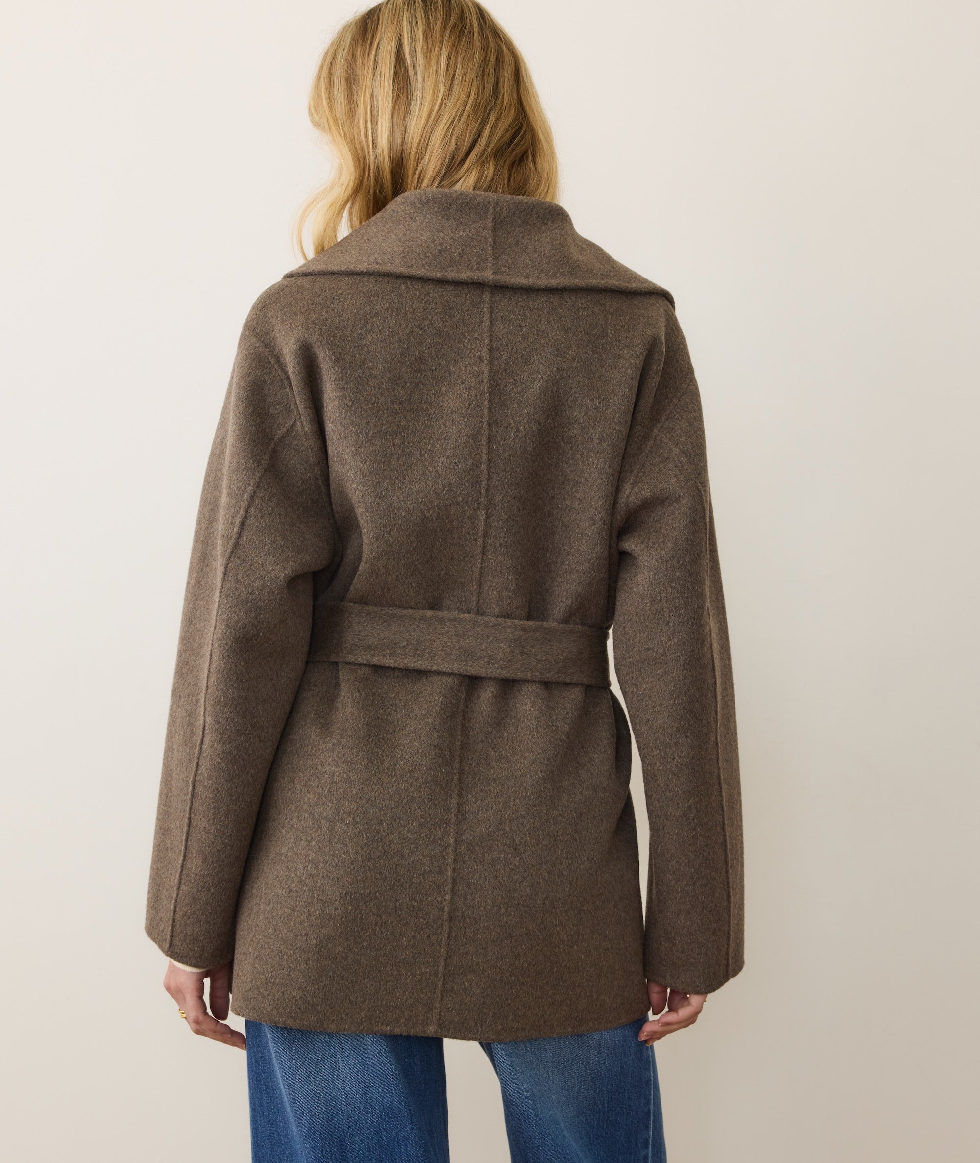 Meet one of the new looks of our #1 bestselling Colette wool coat. This robe coat takes the same soft, wintery looks and makes it easier with a shorter length and cinch closure. That means no buttons to fiddle with when you have frozen fingers: just give the belt a tie and you're on your way. Easy, just the way we like things.