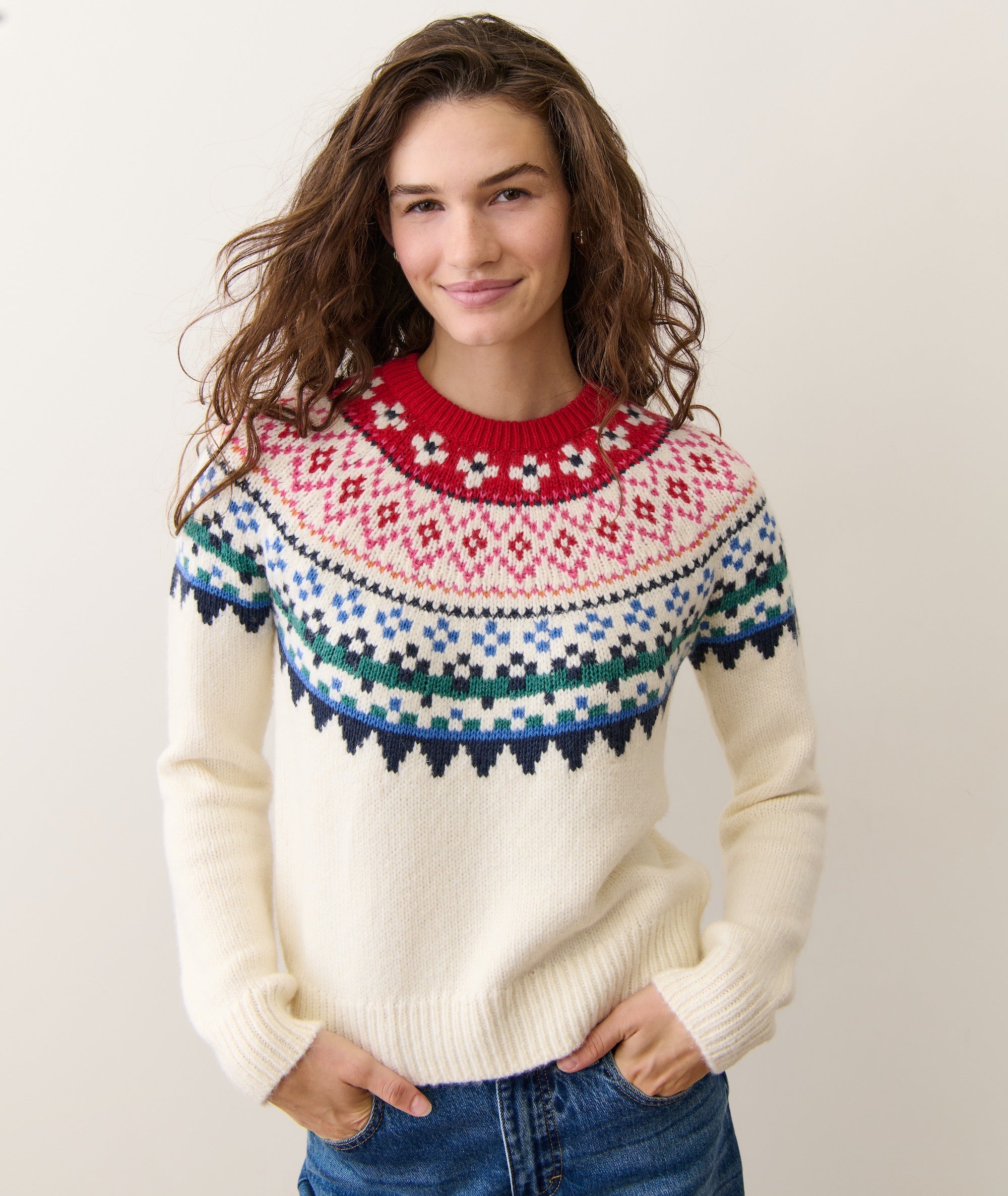 There's just something about a Fair Isle sweater in winter, especially when they're this lofty. We kept all the things you love about these sweaters, like the fabric and easy relaxed fit, but are introducing new colors this year, including a first-ever true neutral in gray. Now you can get all the wintery good feelings and still hit the monochrome trend. Did we mention there are matching hats?