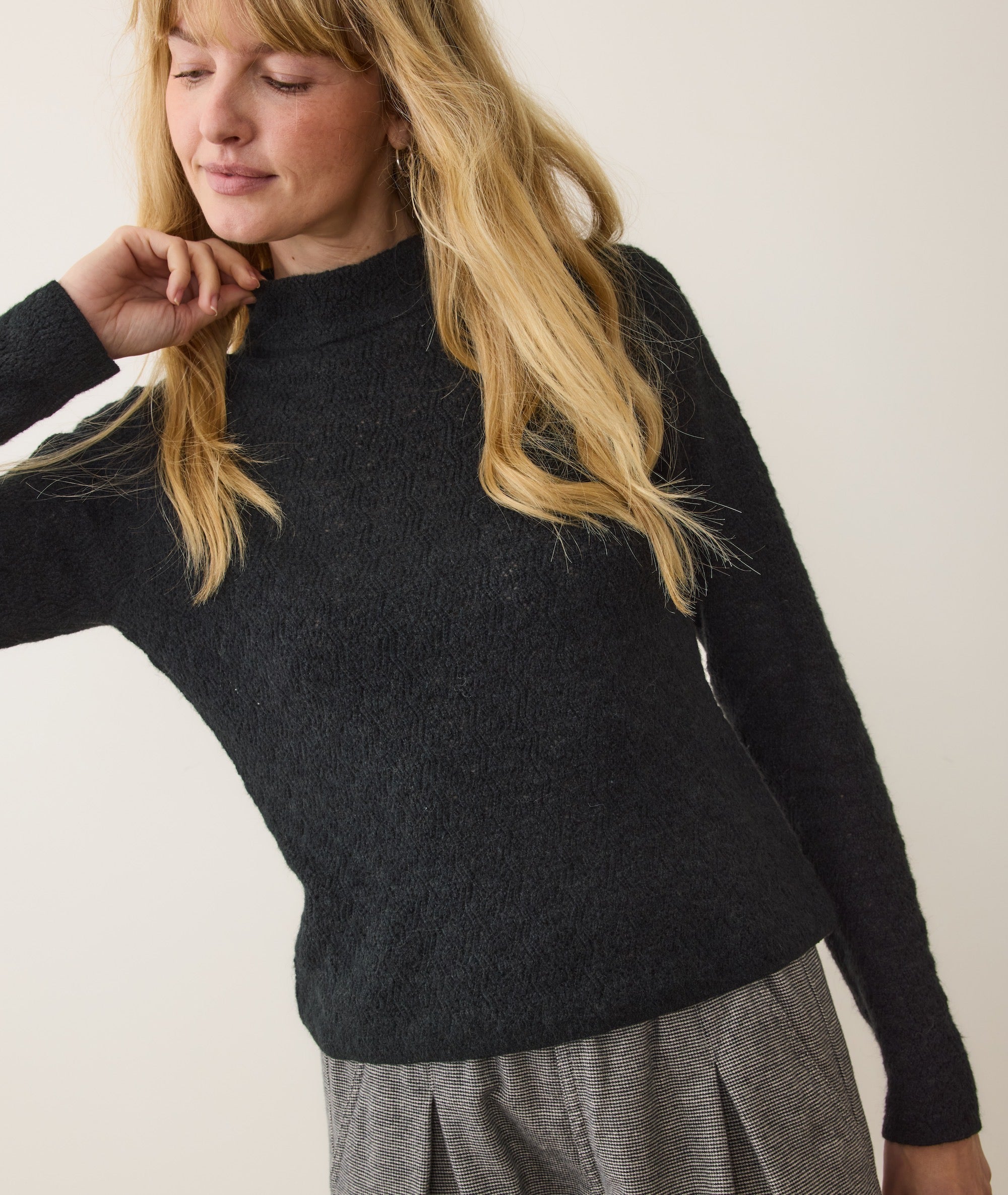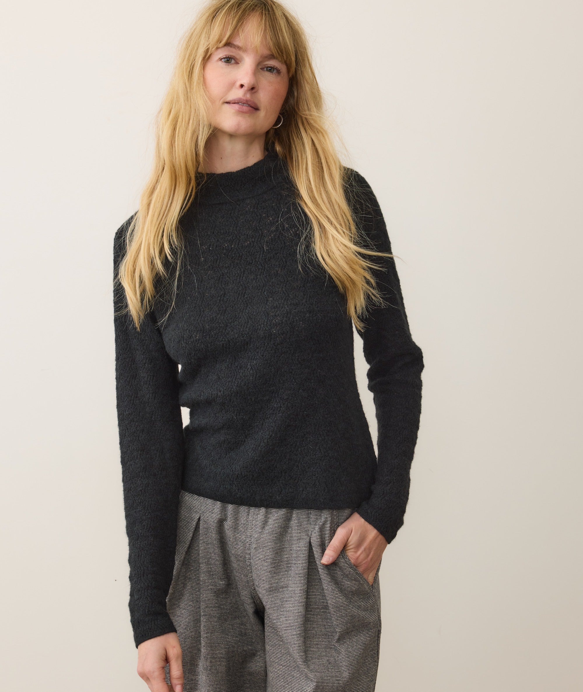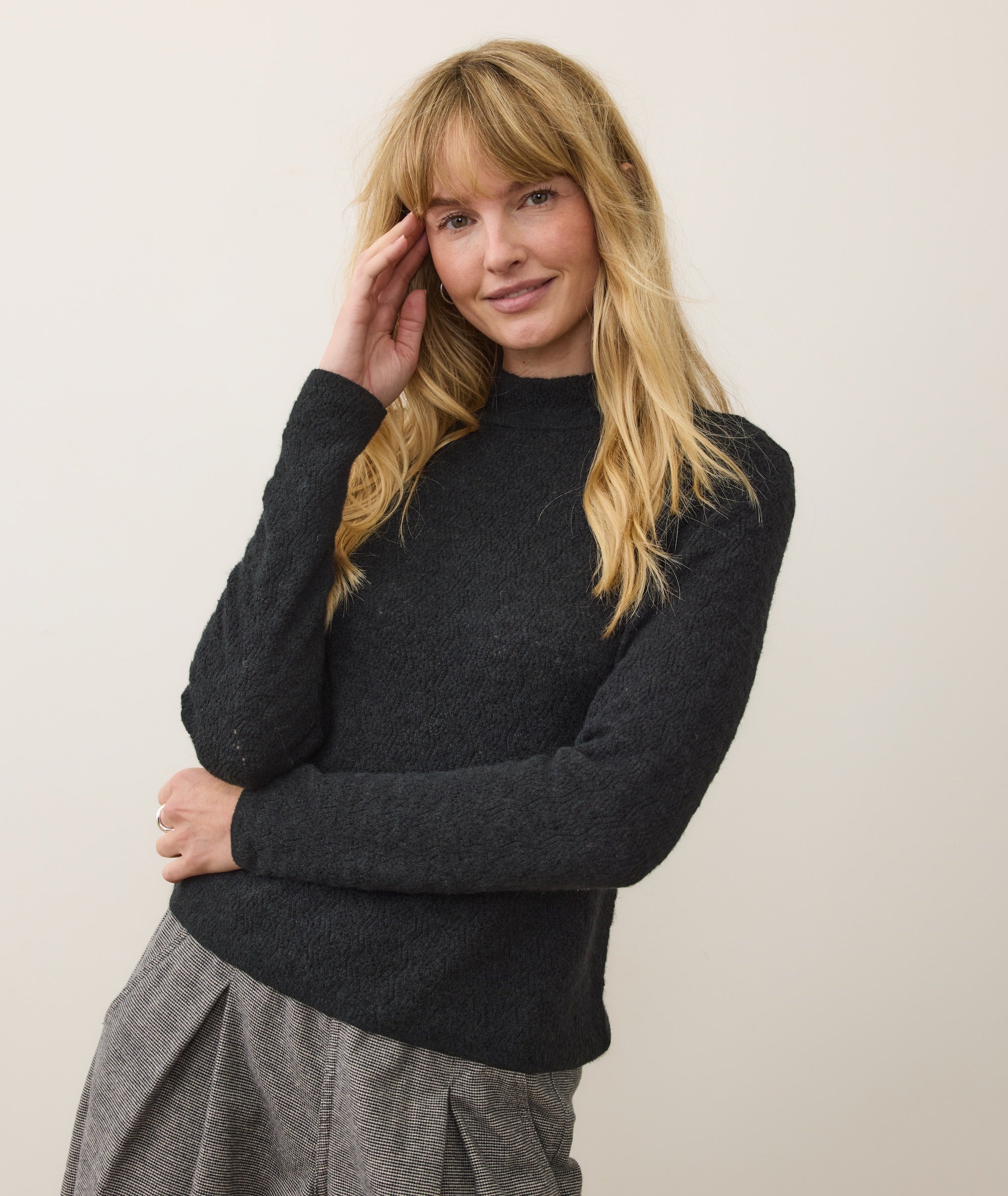 Is there such a thing as too much of a stitch this cute? We don't think so. That's why we didn't just make a whole sweater, we gave you a little extra fabric with a mock neck. The body is fitted, the fabric is amazingly soft, and the look is…well, you can tell how good that is for yourself.