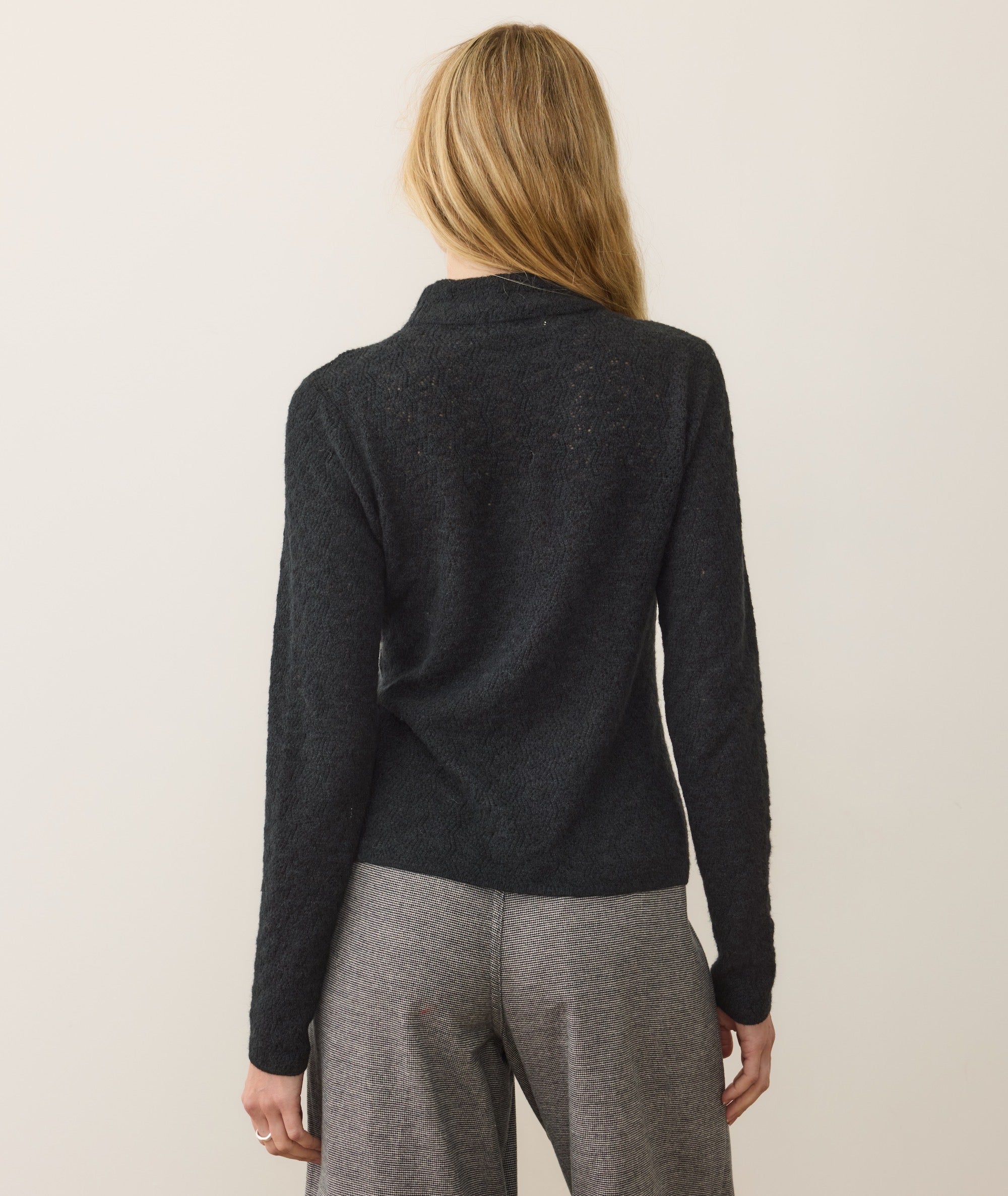 The fabric for this sweater is a soft knit with an open pointelle stitch. Effortlessly elevates any outfit, and just amazing for layering.