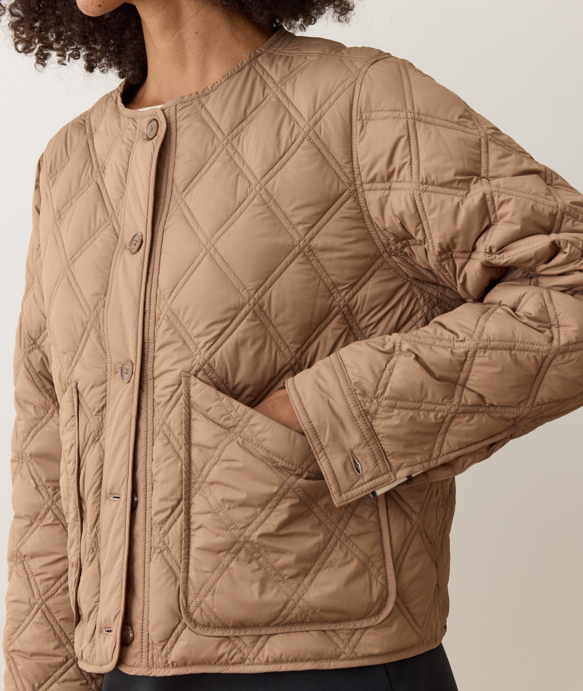 This soft crinkle fabric gives you all the cool-weather cuteness without getting puffy. It's quilted and warm, but compact so you get the liner jacket look no matter which style of Marina you wear.
