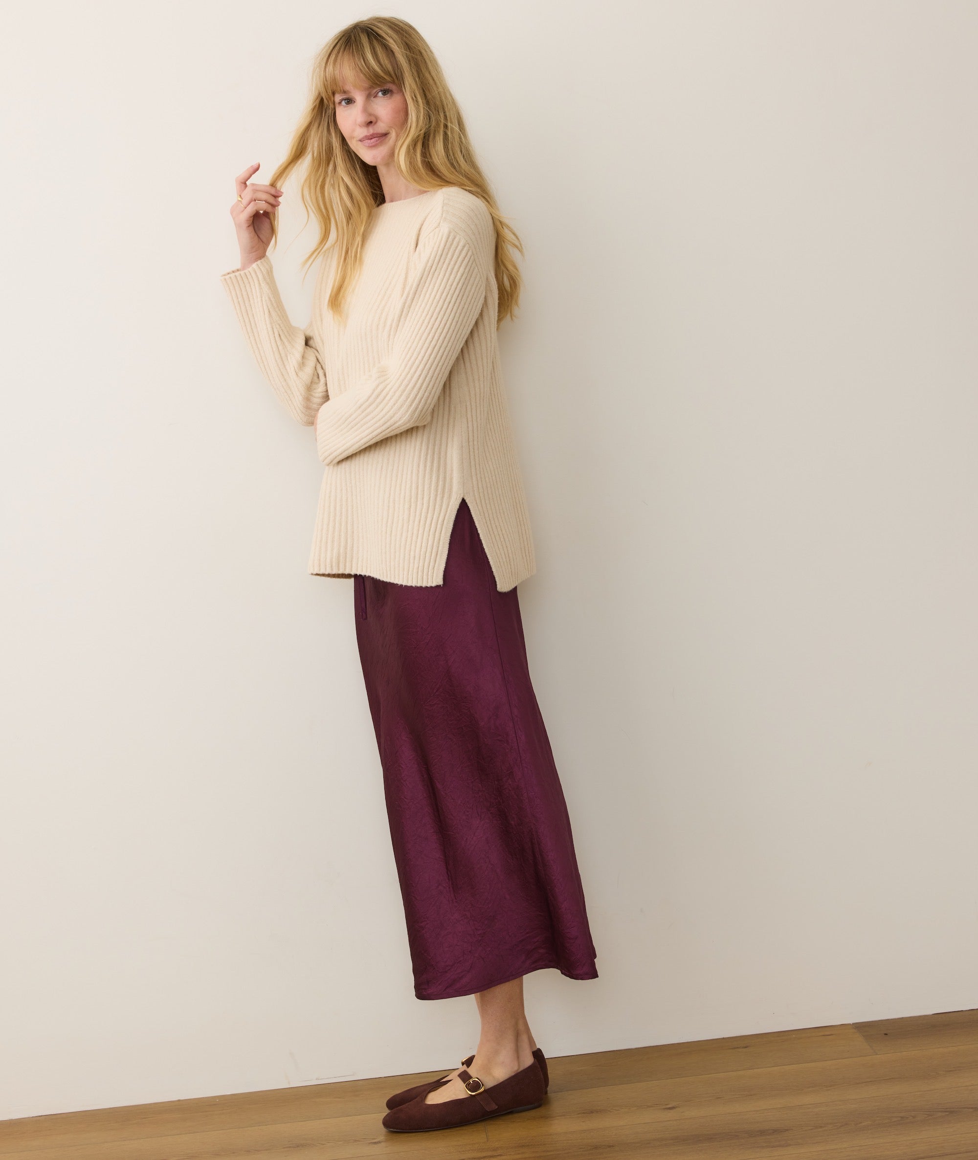 You read that right, we're calling it a tunic. But really you can just think of it as an extra long sweater that looks wildly chic when you wear it with leggings or any slimmer leg pants. It's the kind of sweater that you put on for the style when you go out, but find yourself still wearing later at home because it's so soft. And that's our favorite kind of sweater.