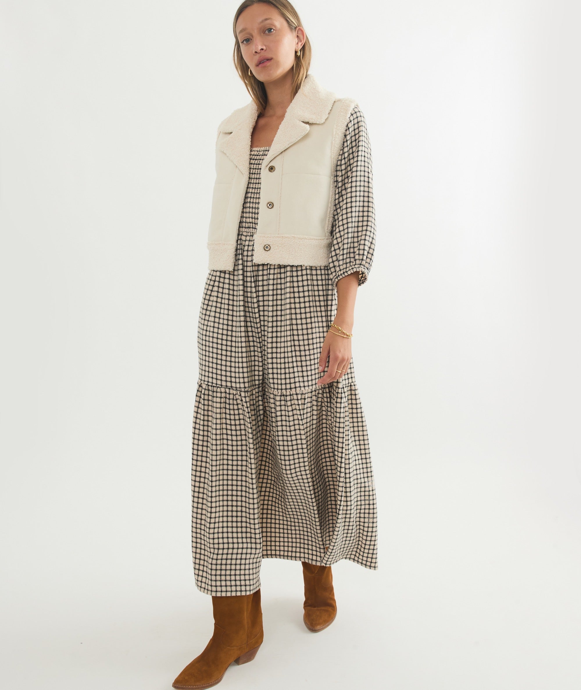 One of our designers cut the sleeves off of her Quebec Sherpa Jacket and we loved it so much, that we're rolling with it! All the things you loved about the bestselling jacket, minus the sleeves. It’s the perfect layer to elevate your fall style, and we’re certain—certain!— it’ll be the coziest thing you own.