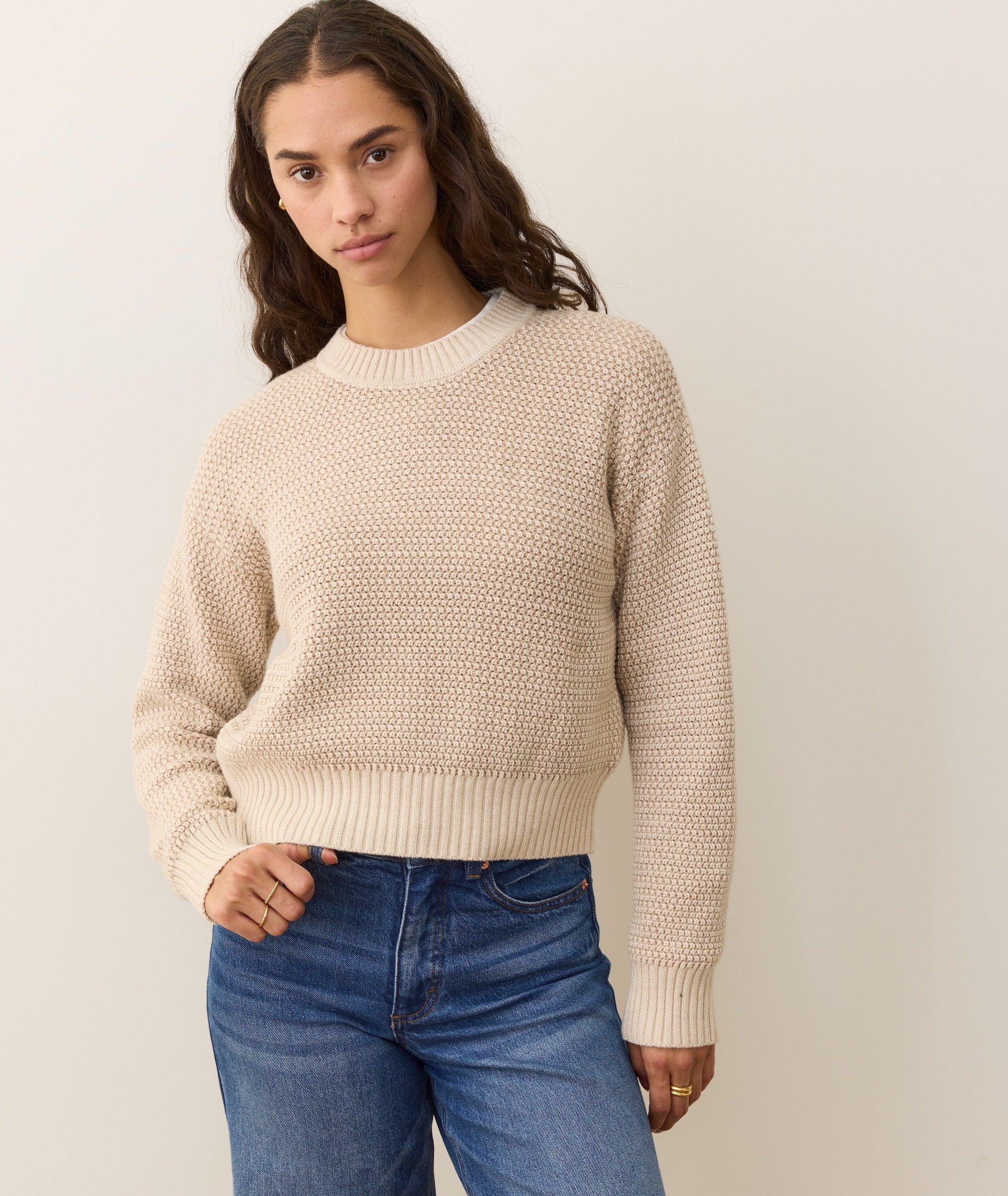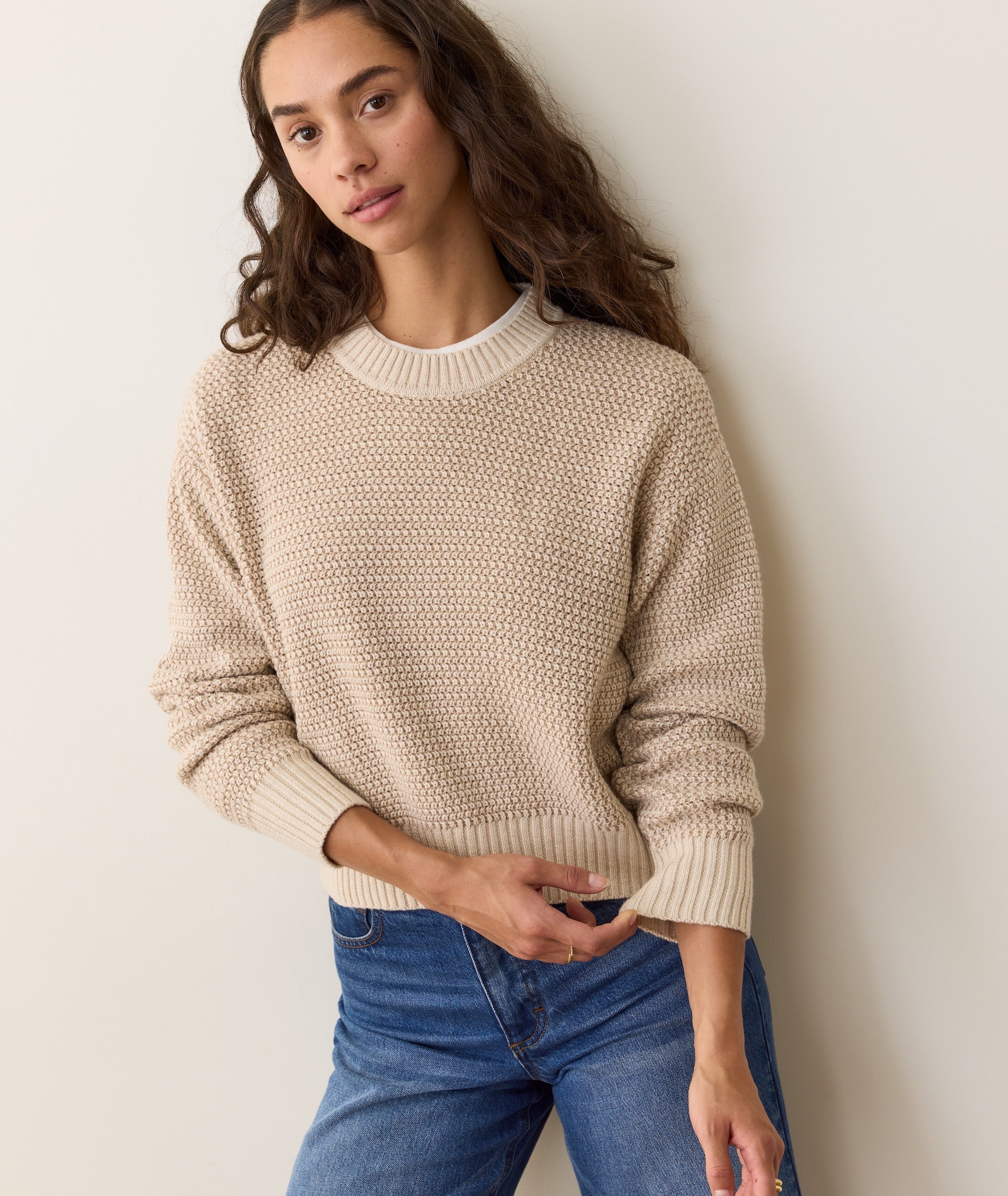 This is our one-of-a-kind Robin knit in a classic crewneck sweater. The two-tone birdseye pattern wears like a solid but feels just a little more interesting. We gave it a relaxed fit so it feels a little more comfortable too. The only thing that’s missing is whatever you’ll style it with.