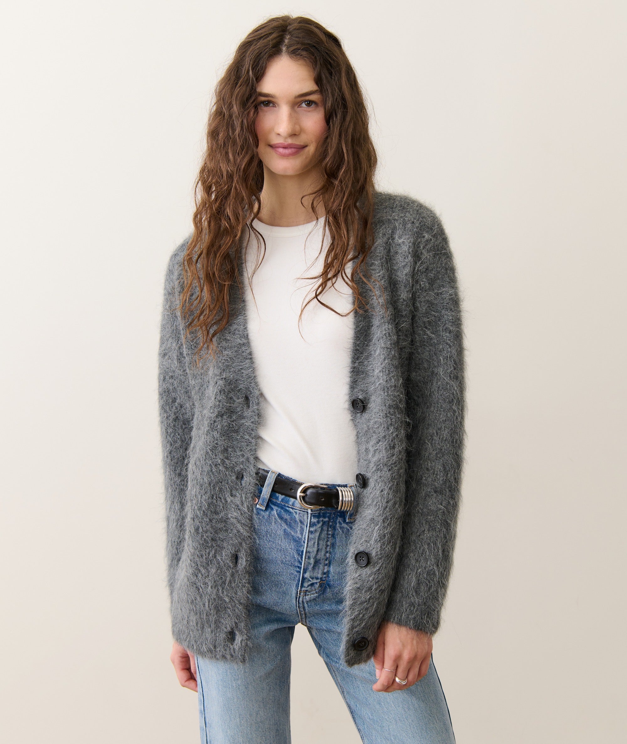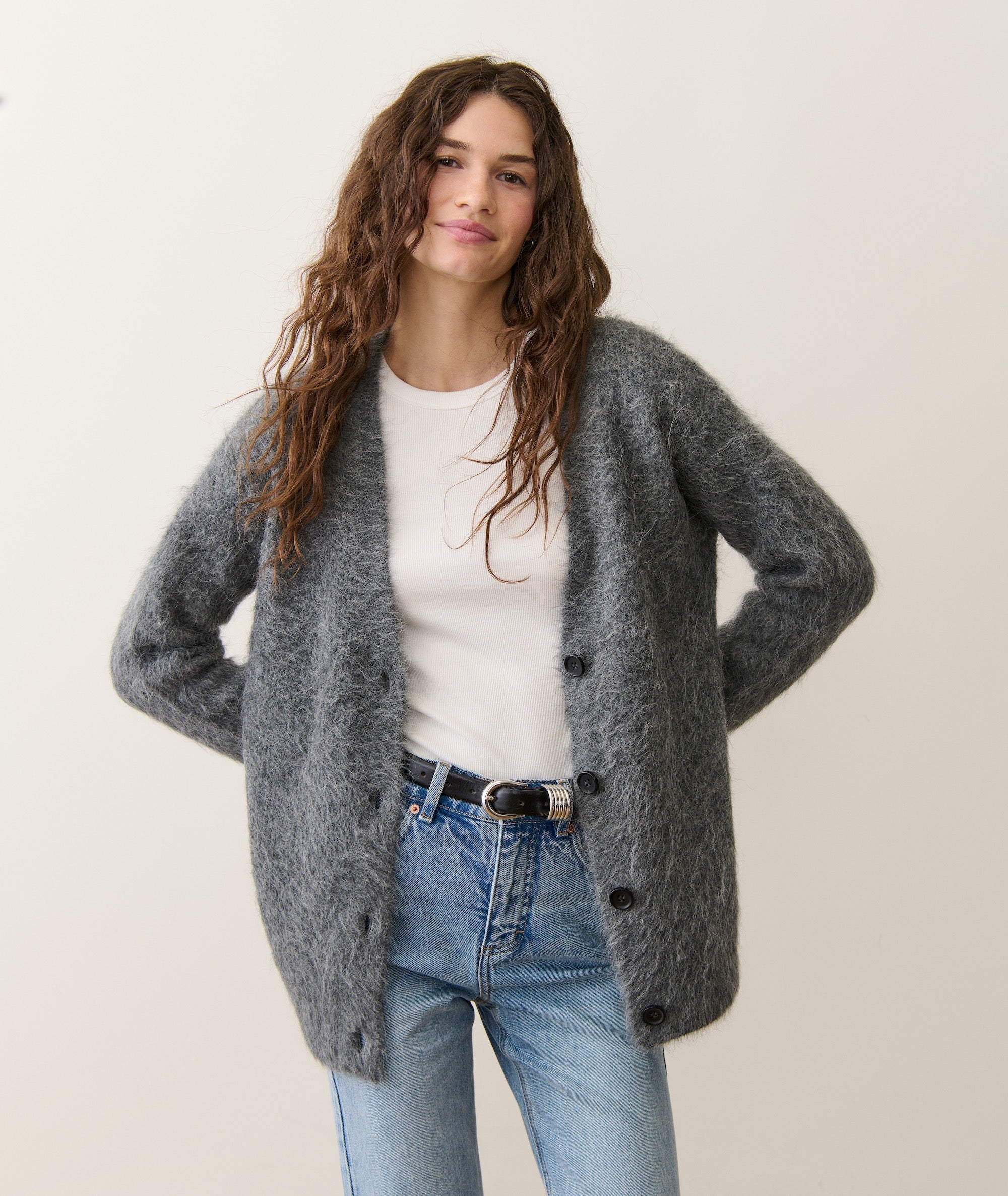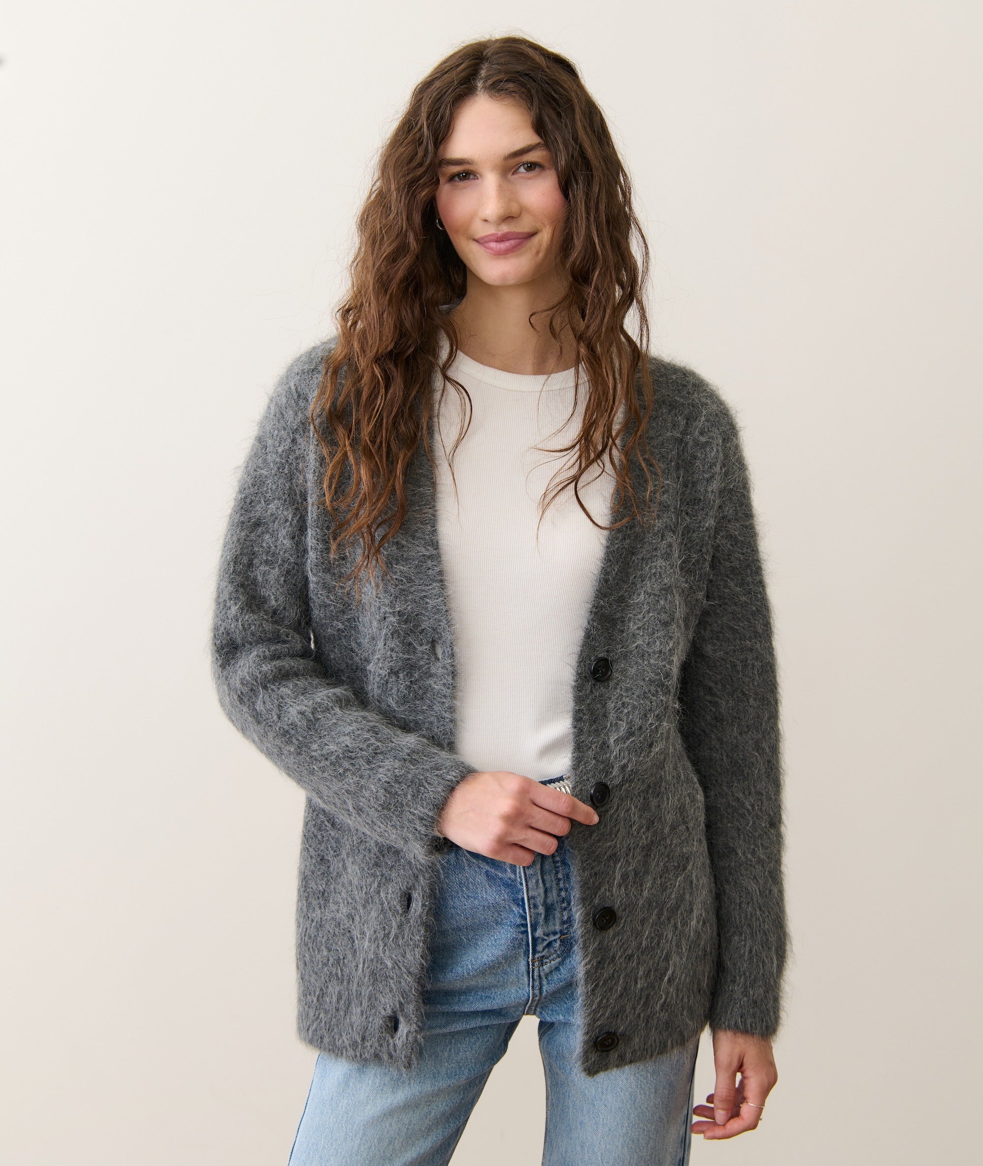 We love this Suri alpaca wool so much we can't get enough of it. So we made this cardigan to give you even more, with an oversized fit and full cover-your-butt length. It's lightweight and oh-so soft, with a fuzzy halo that you just want to wrap up in. Fortunately, with this fit you can.