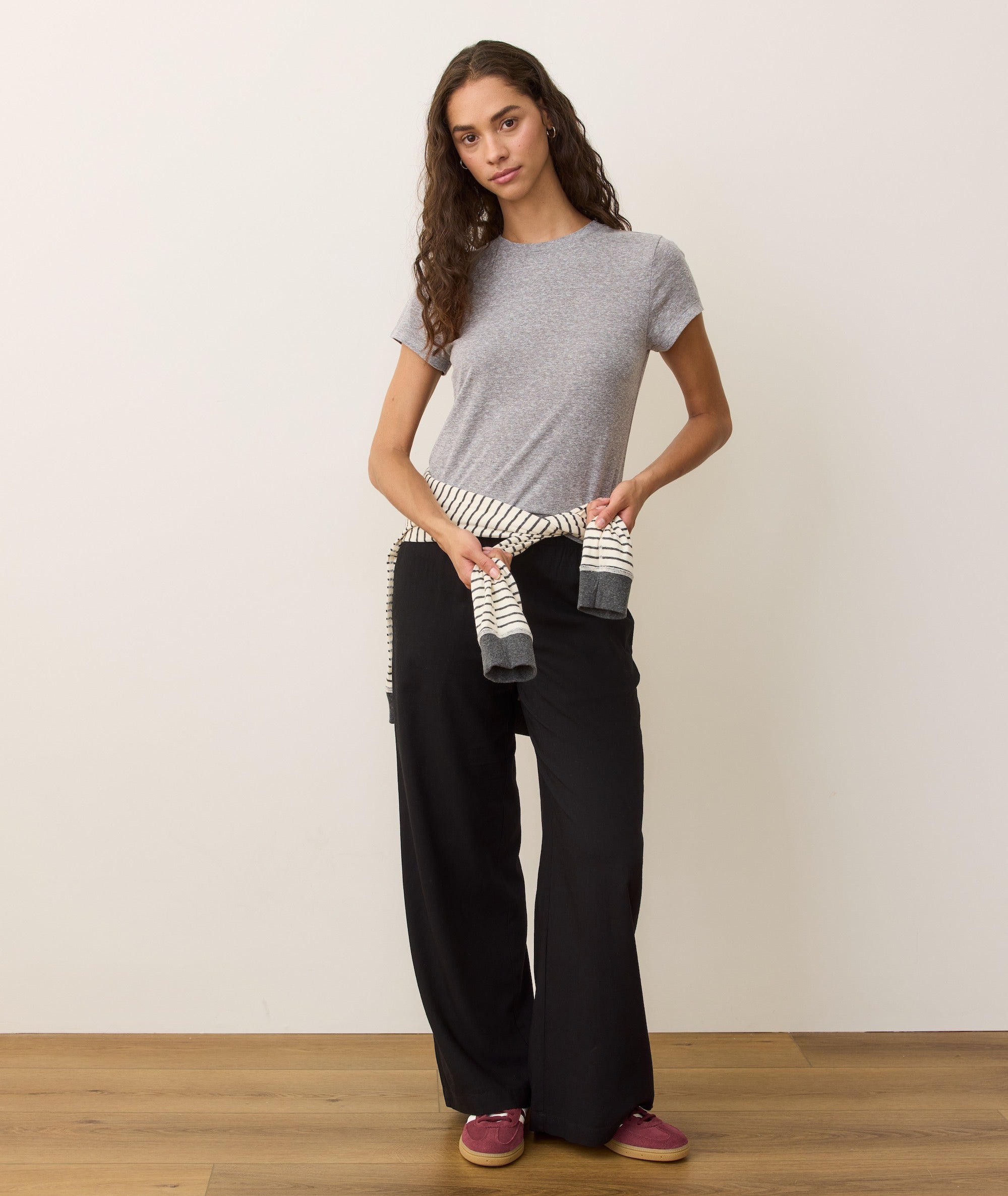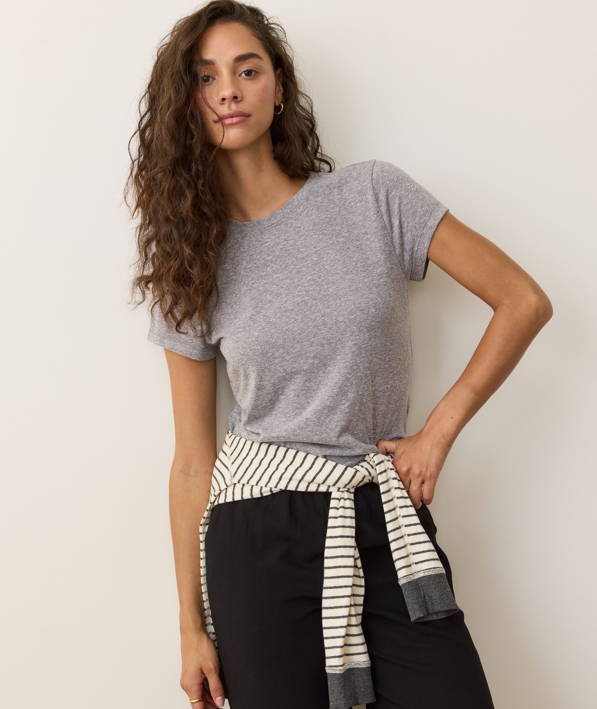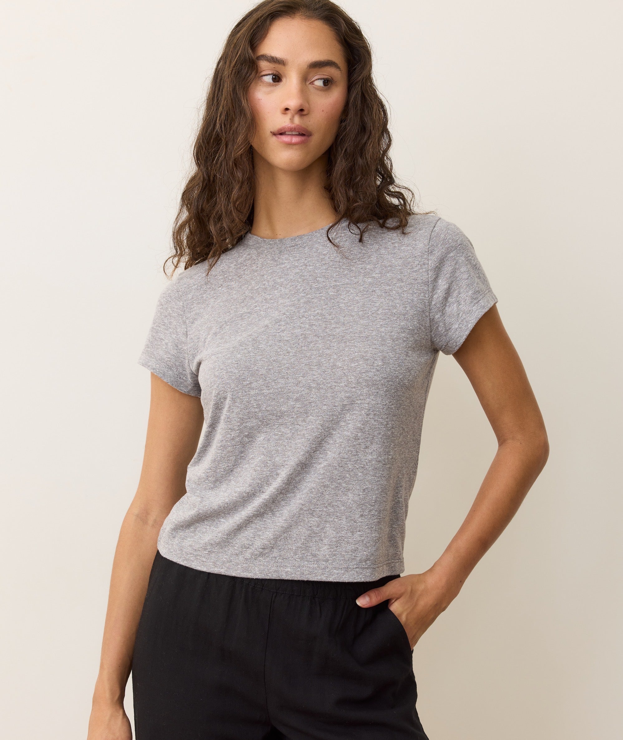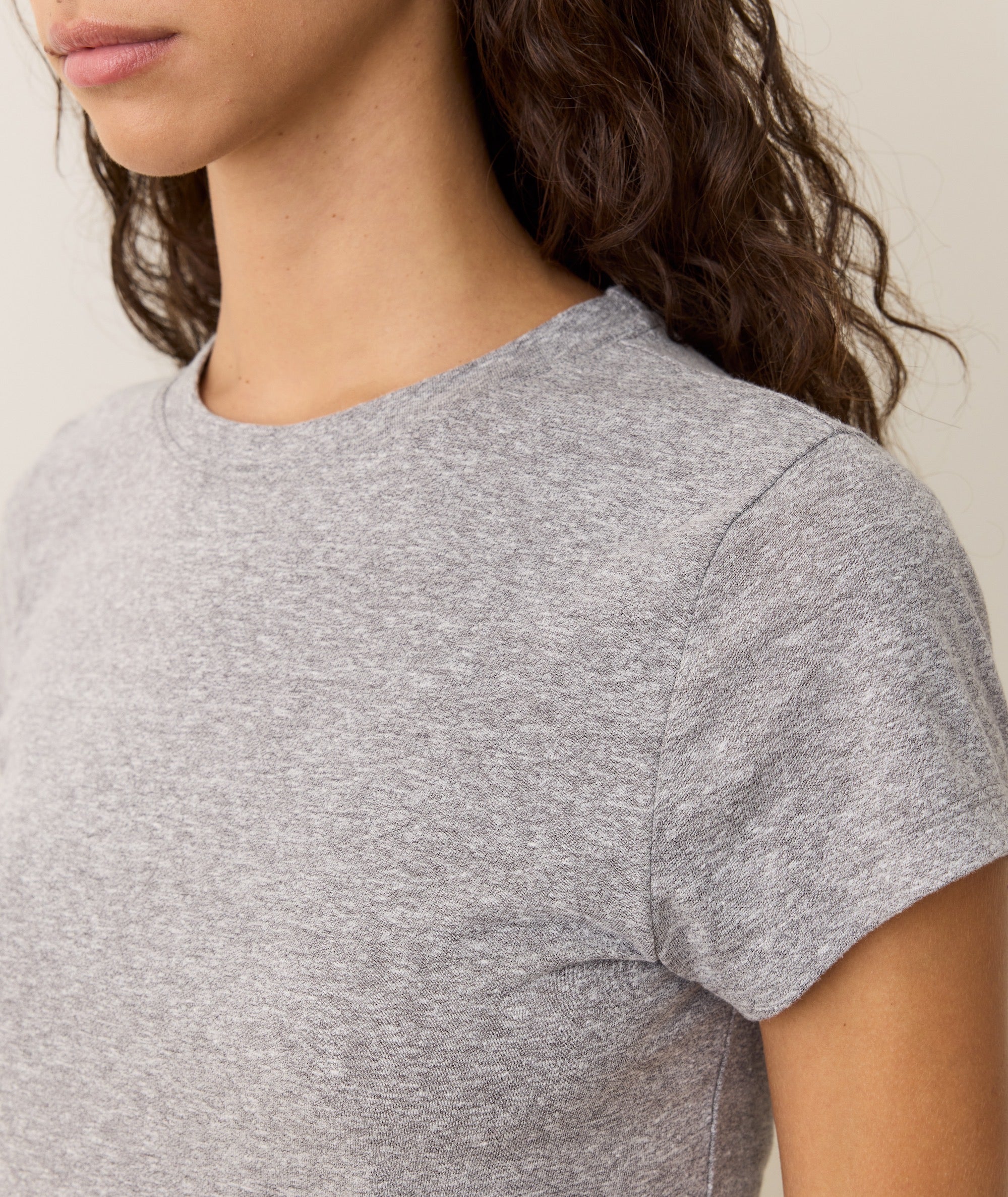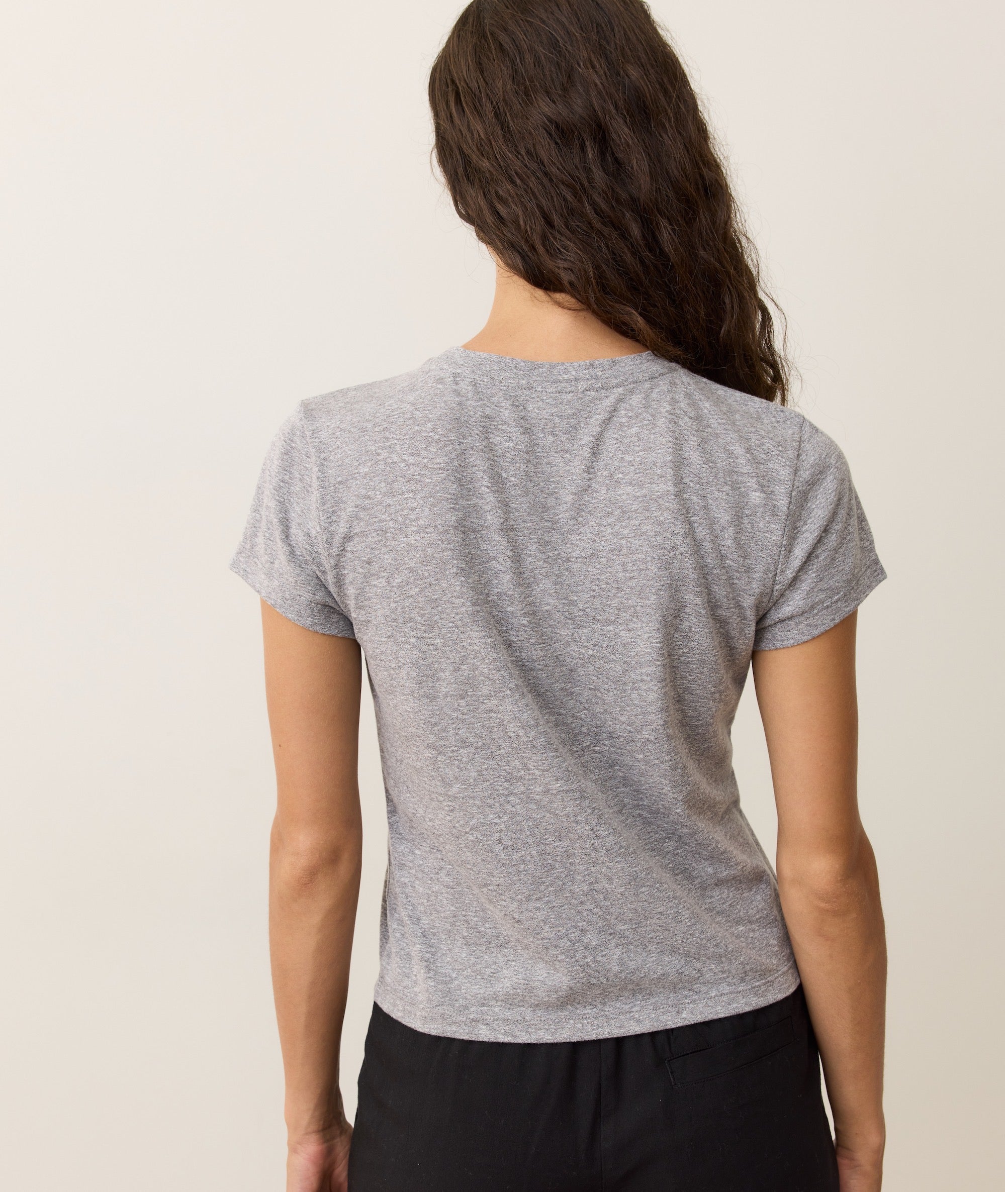 This is your classic white baby tee kicked up a few notches. We wanted it to be wildly soft, and cleaned-up enough to dress up or down. So we came up with this super lightweight fabric and put it in a slim fit baby tee body. It’s the kind of shirt you’re never going to be upset about owning.