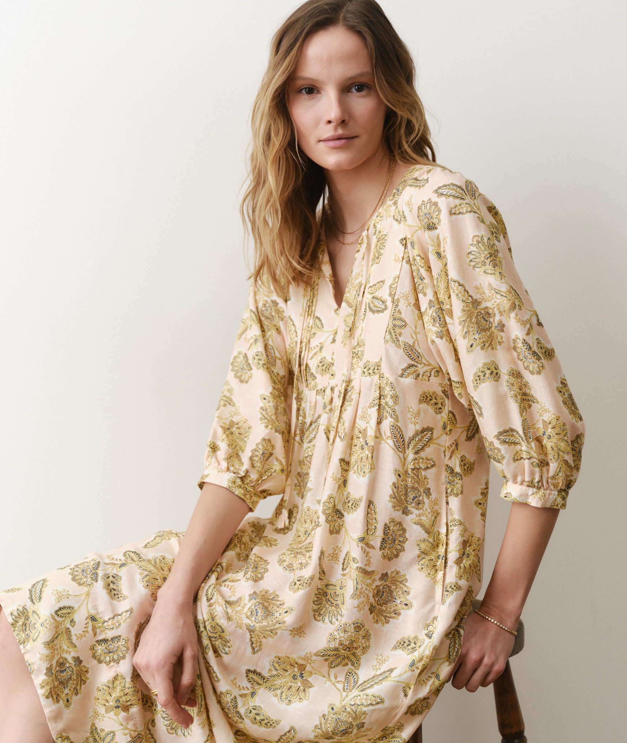 The Nell Midi keeps all the breezy, boho-leaning spirit of the Skye dresses, but gives it longer sleeves and a slightly different fit. It pops on effortlessly, drapes naturally, wears comfortably, and still adds a little bit of whimsy to your day. Because life is serious enough.