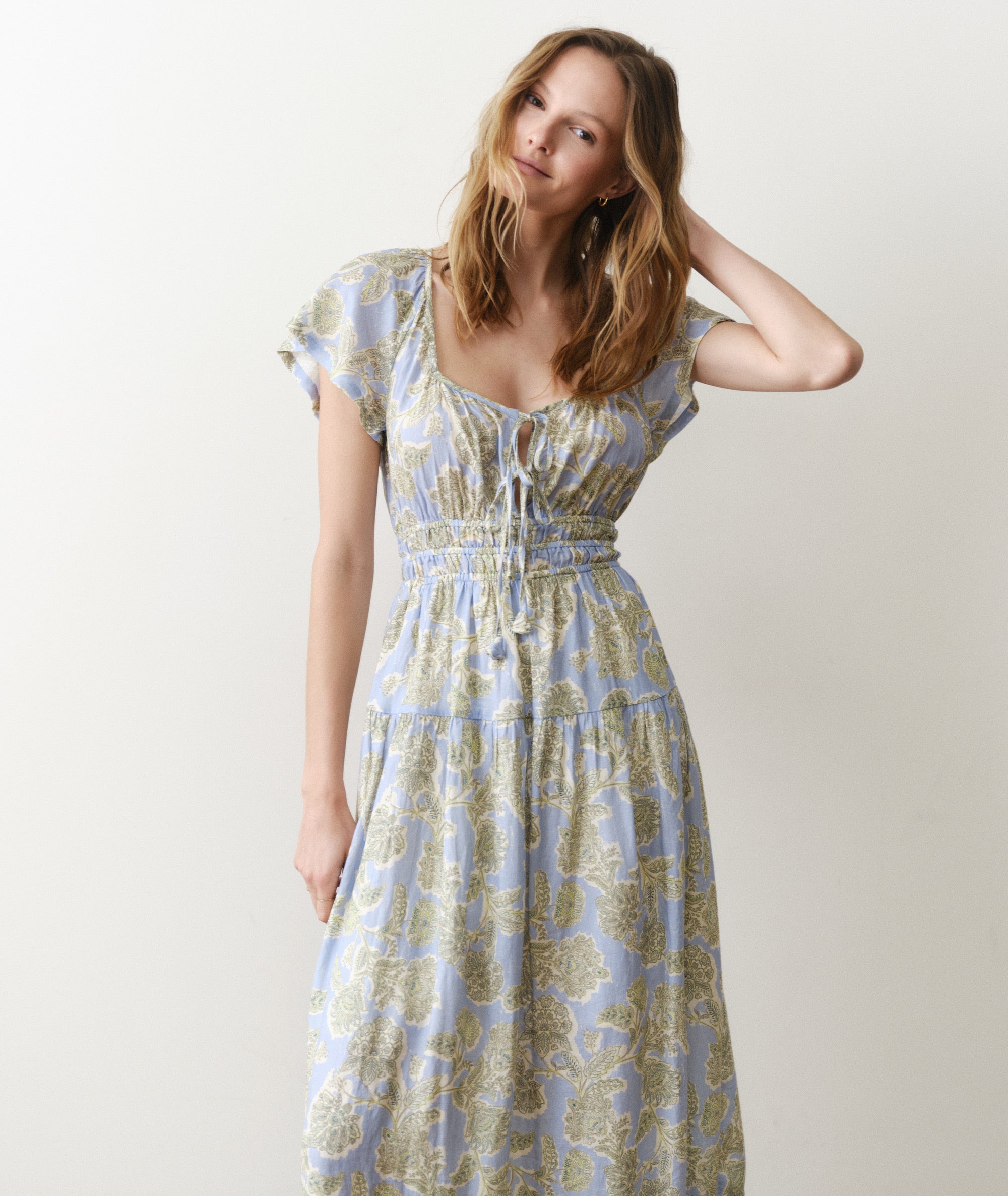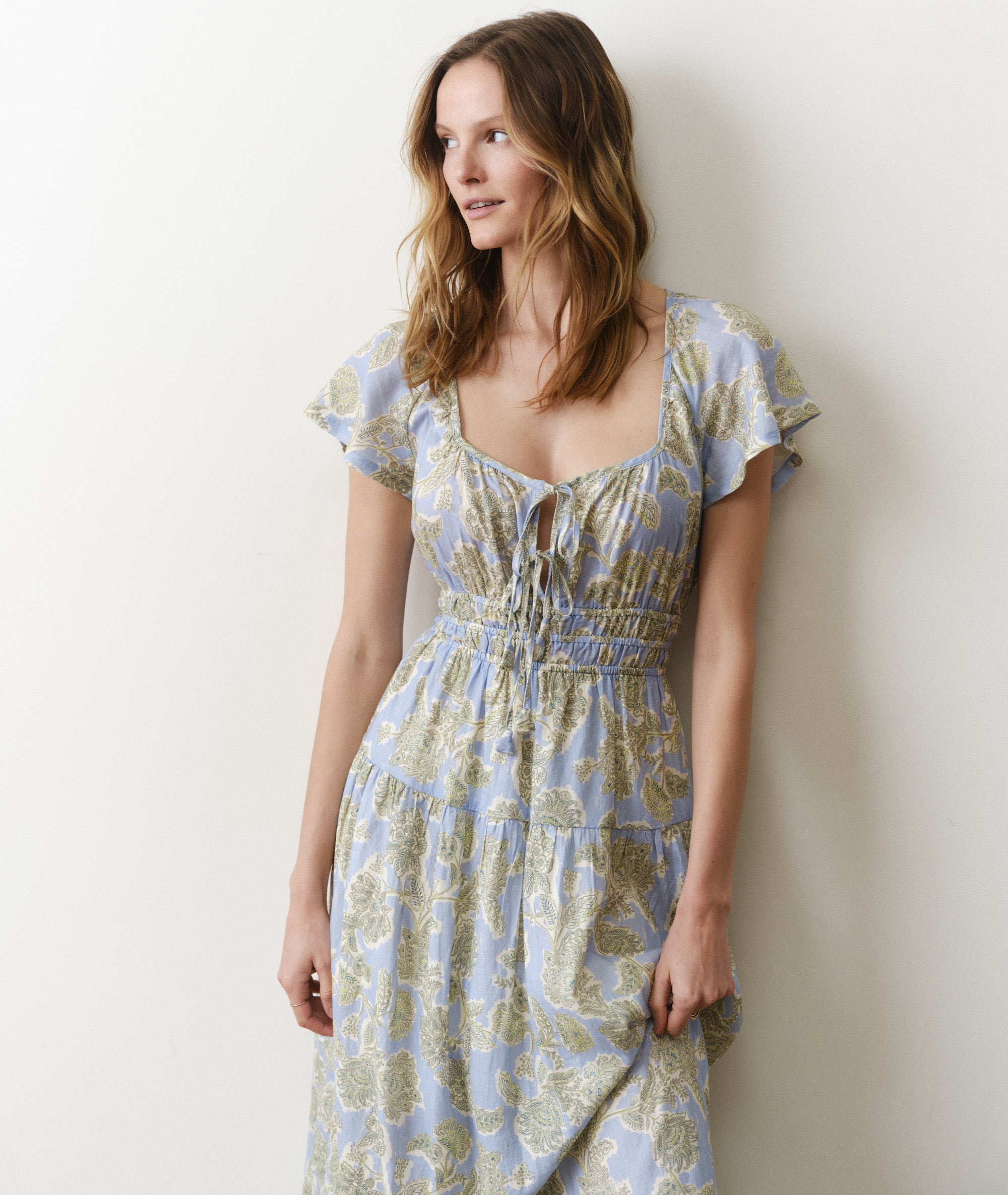 The Skye Midi leans all the way into texture and movement, from the patterned fabric to neck ties and flutter sleeves, without ever going over-the-top. Understated and fun all at the same time, this isn't just a dress—it's a vibe. Relaxed, detailed, and very good at making casual plans feel a little more special.