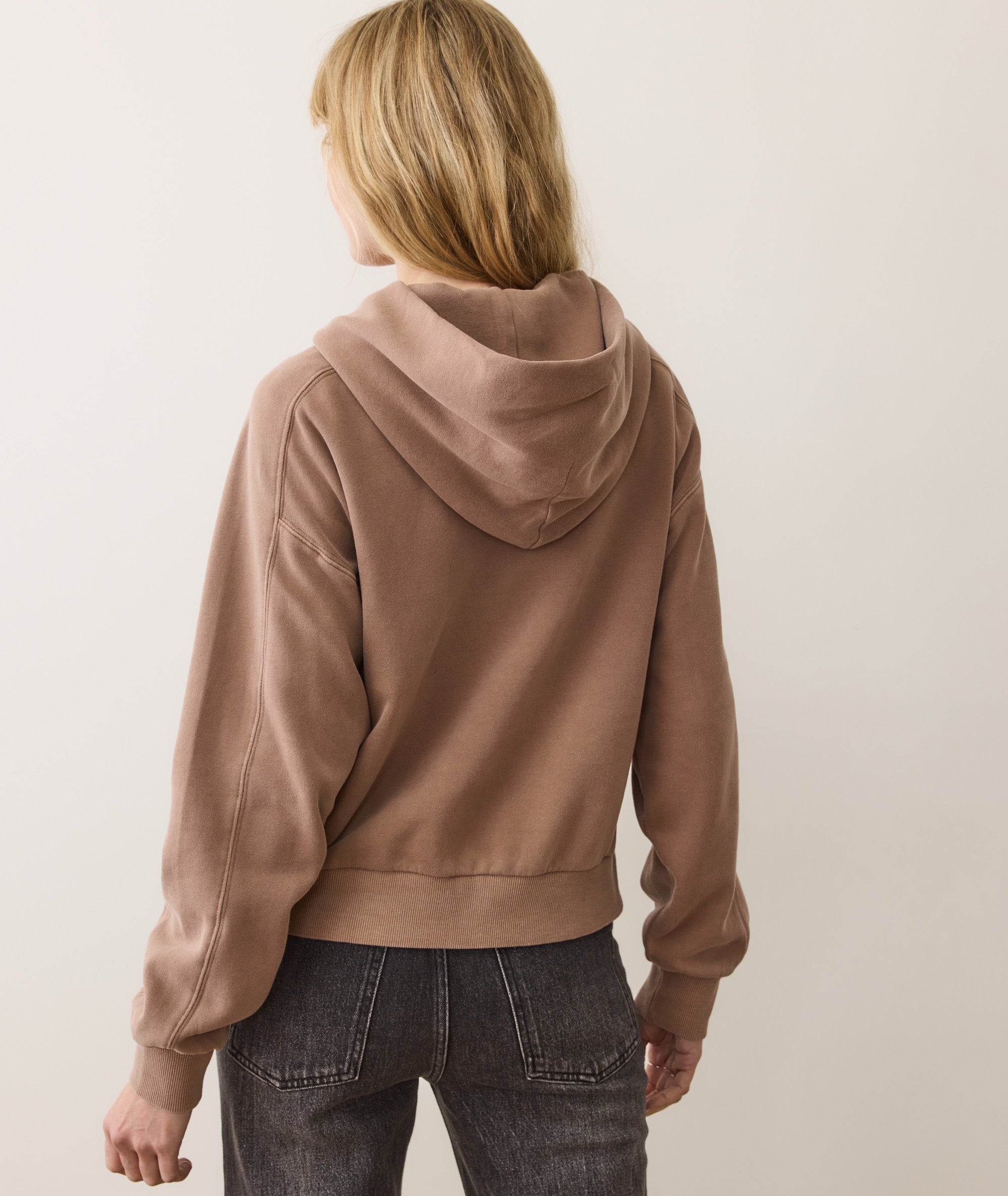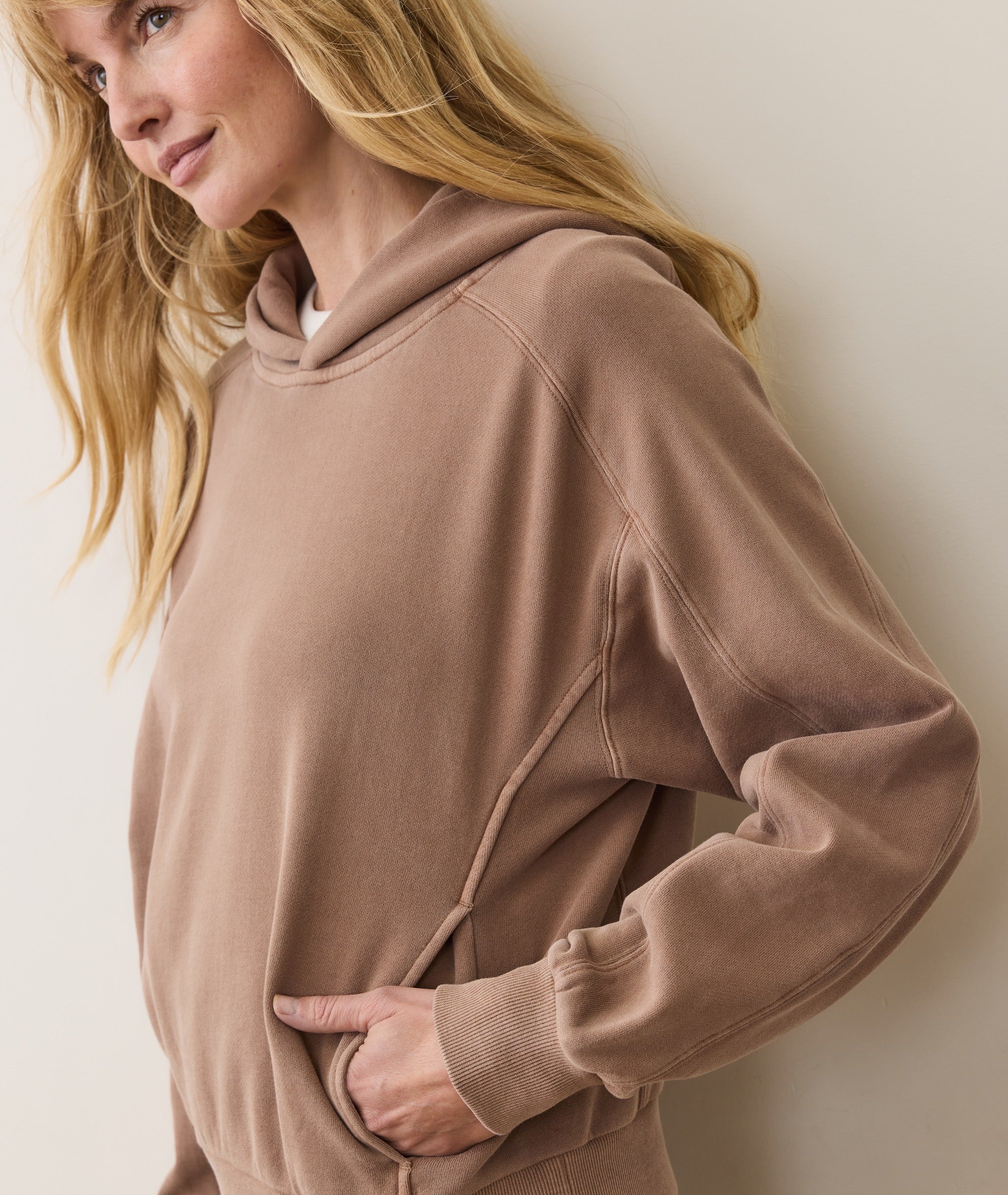We spent 7 years developing this soft, lofty, downright heavenly fabric. We call it Cloud 9 Fleece. Peached on the outside, and amazingly fuzzy on the inside, it's the kind of comfortable you end up comparing everything else to.