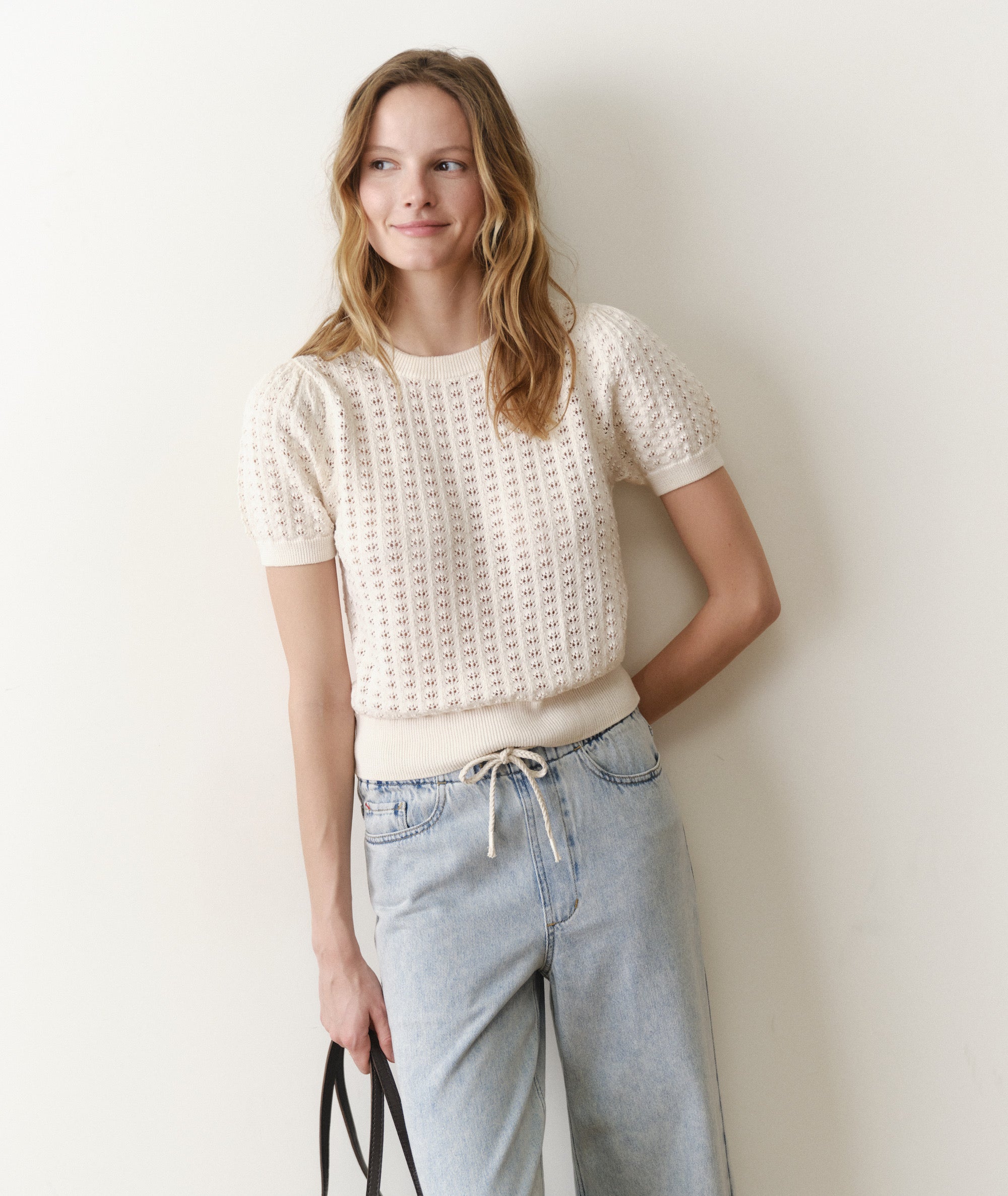 She's soft, textured, and not at all shy about it. Between the patterned stitch and the puffed sleeves, the Ellie sweater brings some personality to your everyday rotation without ever going overboard. Cozy, flattering, and very good at upgrading otherwise simple outfits.
