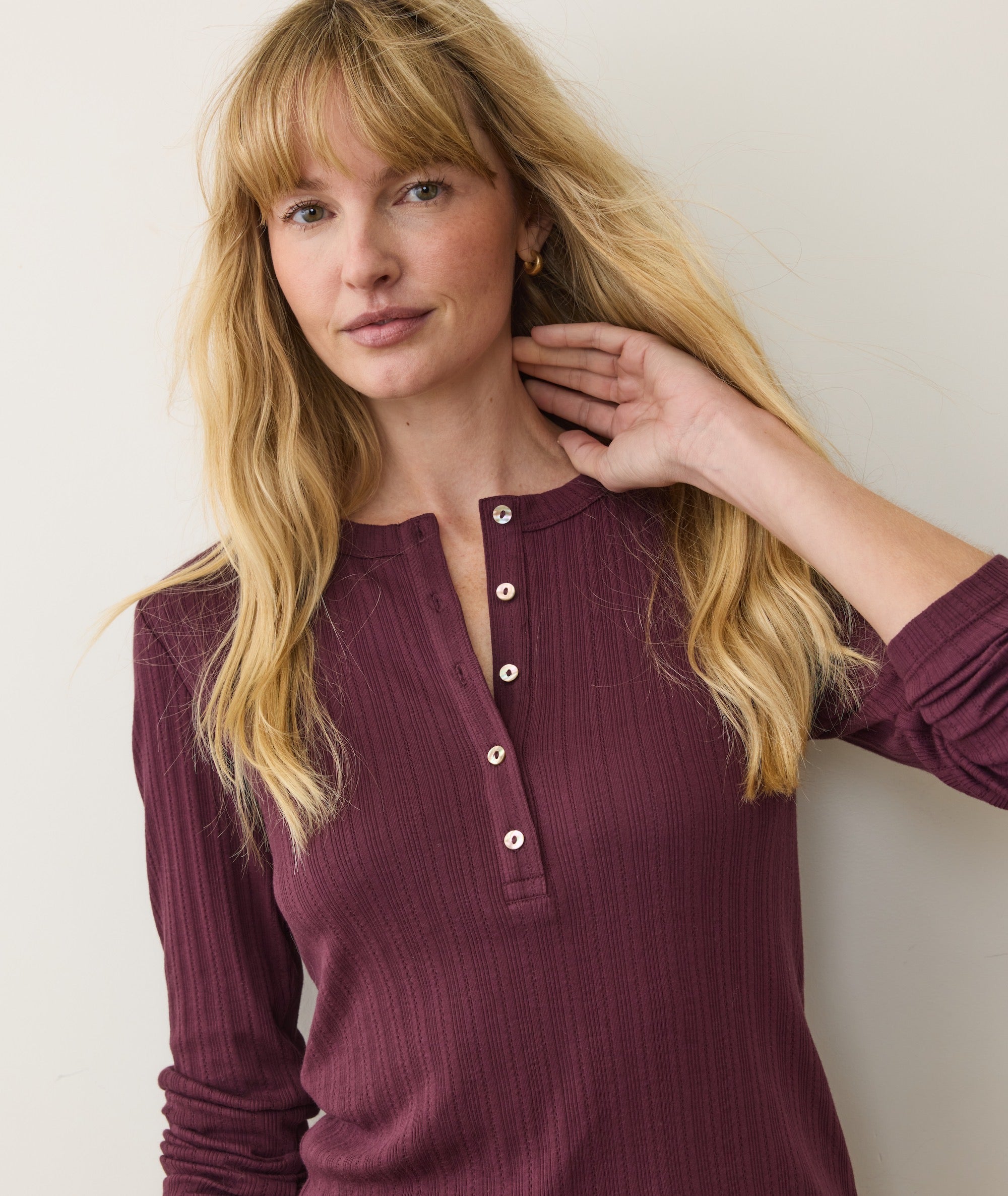 This henley is everything you want out of a cooler-weather top. It’s cozy but keeps you looking cute with a very on-trend pointelle stitch. It has all the softness and comfort that make our original Lexi tees a bestseller in every season. And guess what: the buttons are real. Hello styling options.