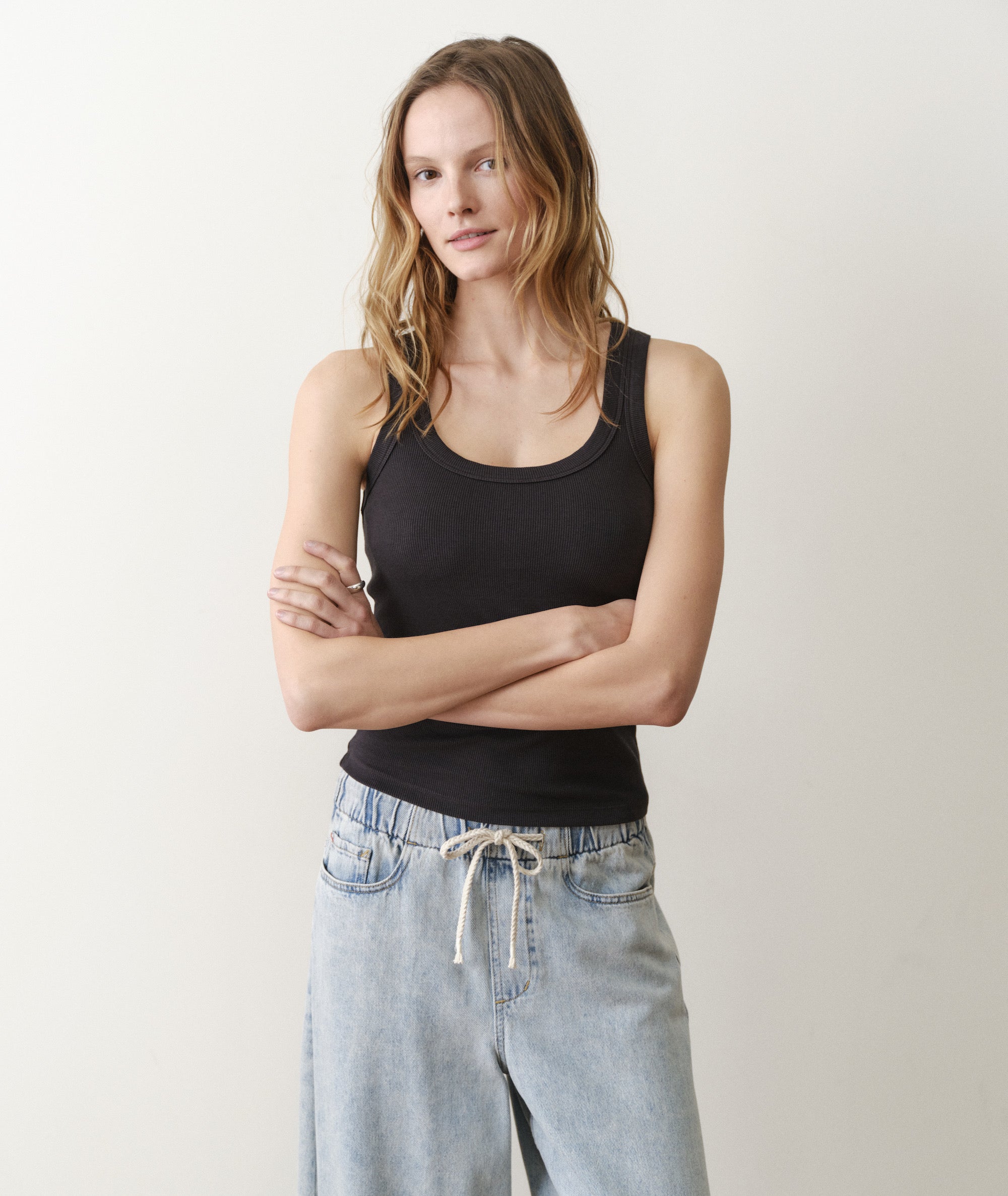 Here she is—the tank that goes with everything. This style has been garment dyed for a naturally sun-faded, broken-in look and feel. The fit? It's a perfect, slightly fitted version of a crew tank. It's absurdly soft, comfortable, and has a great thick texture. Perfection? We'd like to think so.