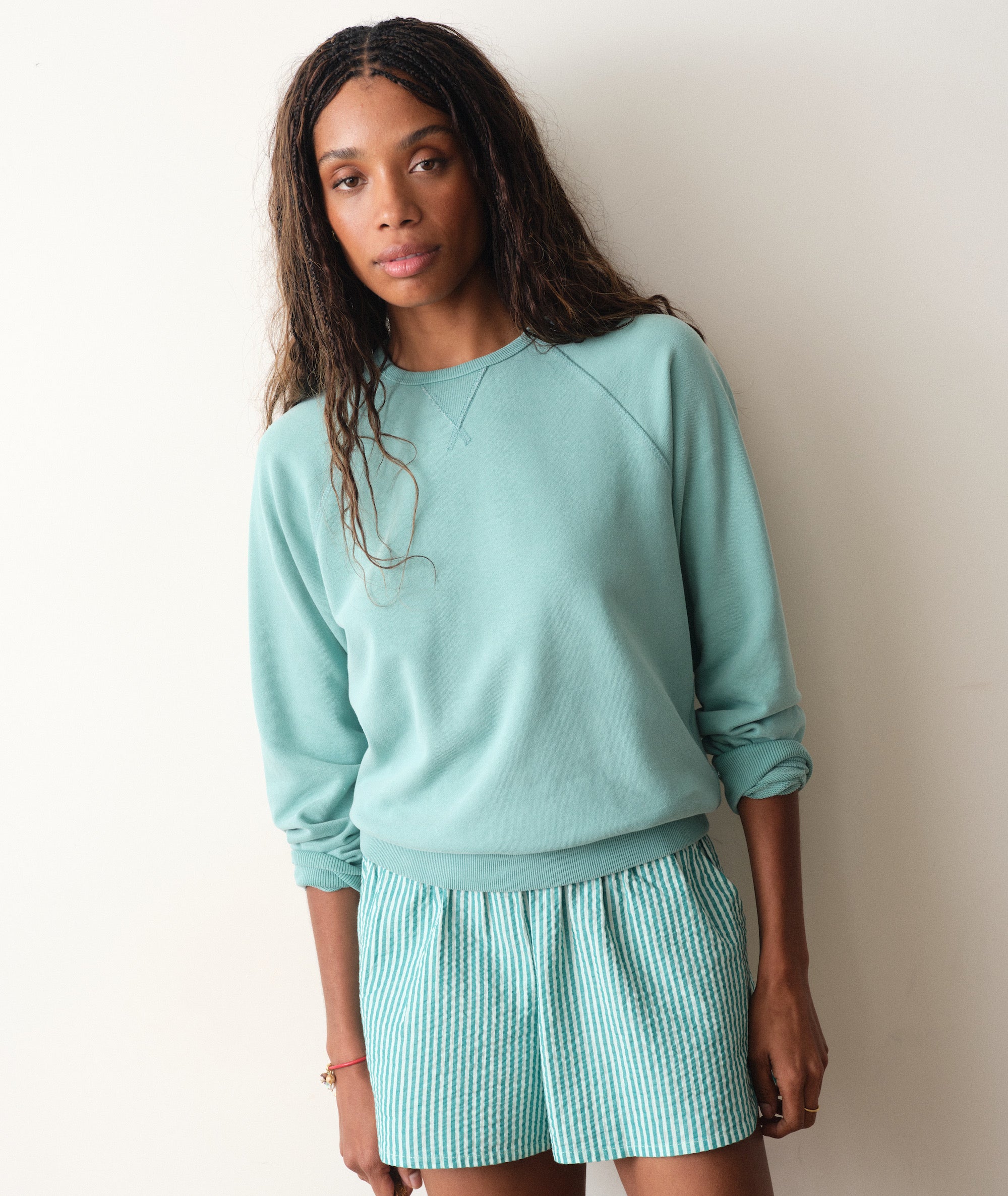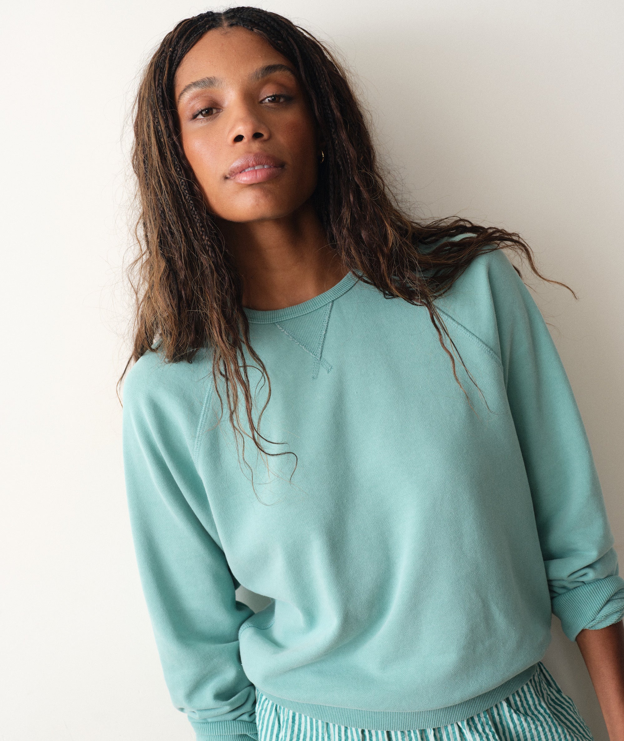 Who says sweatshirts are just for the winter? Not these super soft, California-inspired terry styles. Made with the same fit as our relaxed fleece crewnecks, they're easy-wearing with raglan sleeves, and cozy without being too warm. Plus, the new jersey applique designs give them a polished, handmade feel. Just don't blame us if people start asking you to make them one.