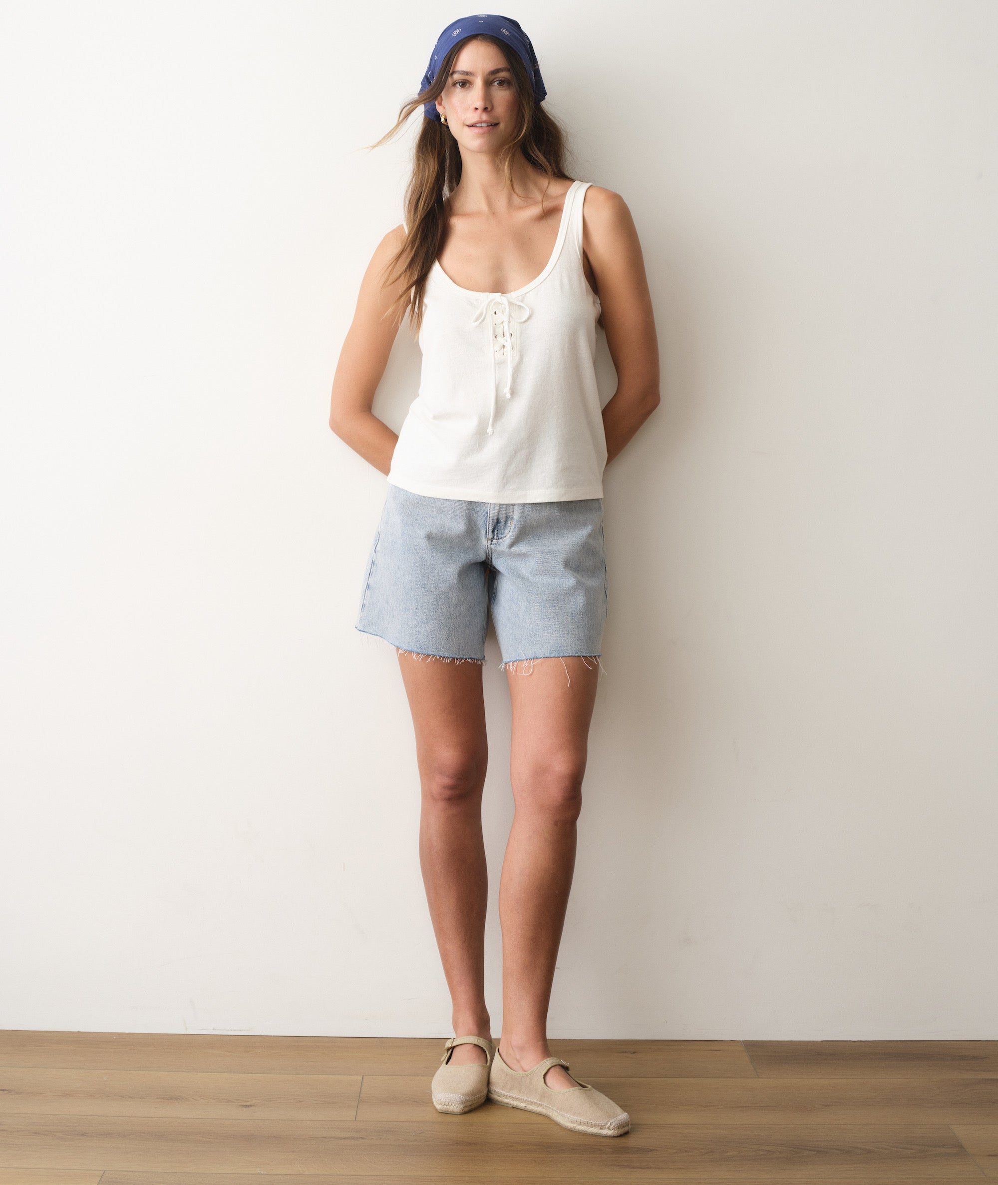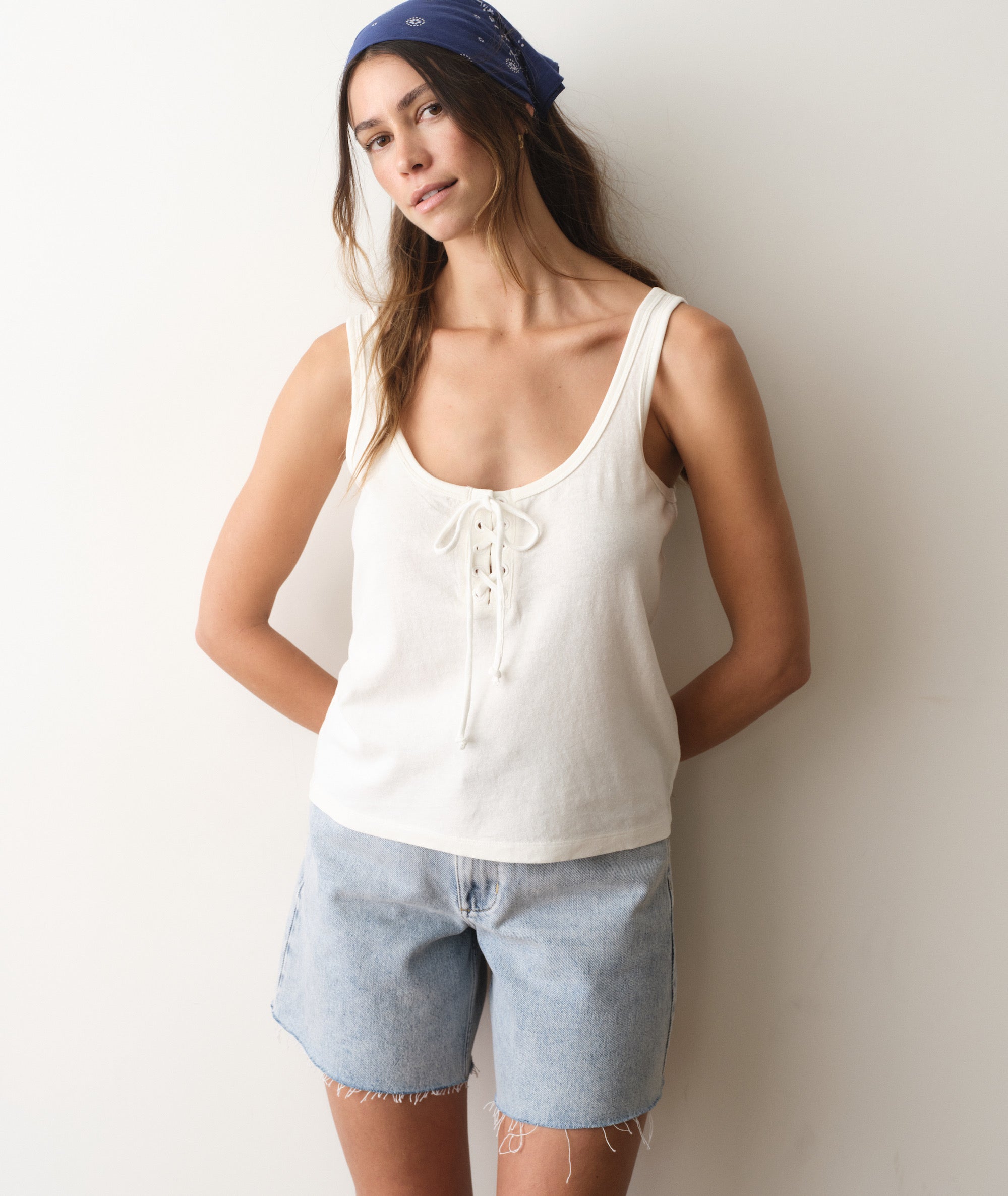 Light, flattering, and endlessly wearable, this is the kind of top we love to build an outfit around. Whether you opt for classic stripes or sunwashed colors, the lace-up front makes this just a little flirty. It's amazing what a bow can do.
