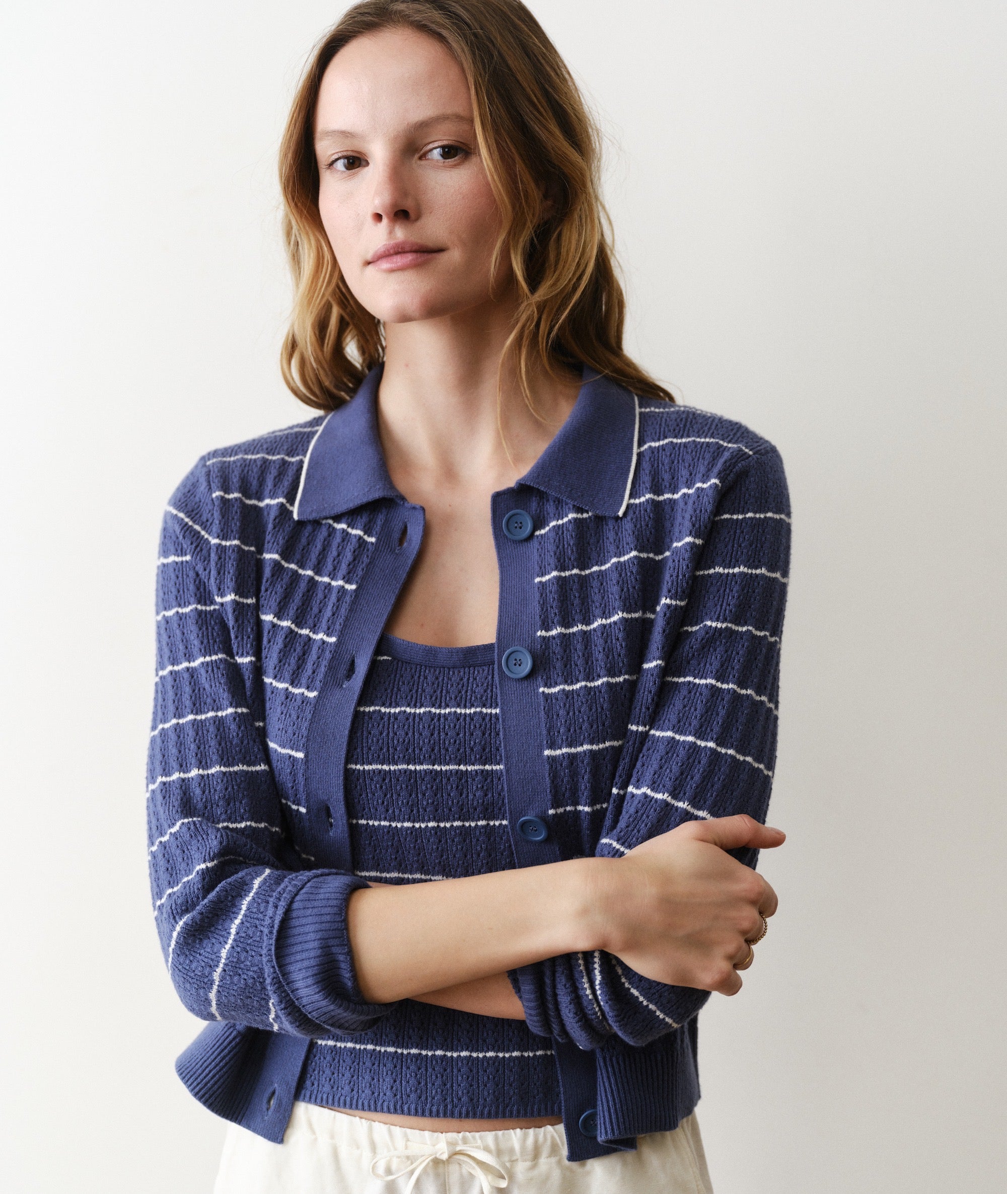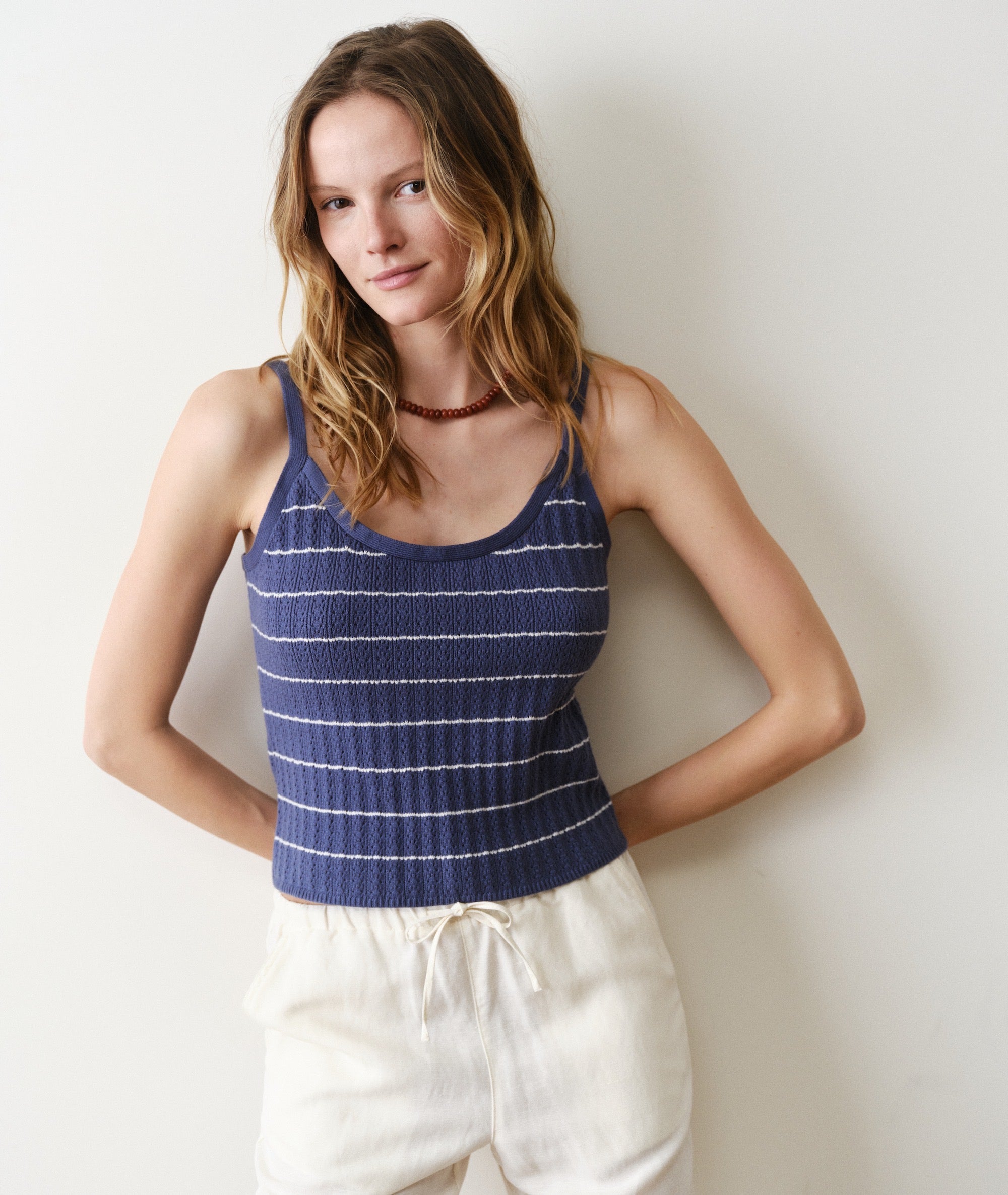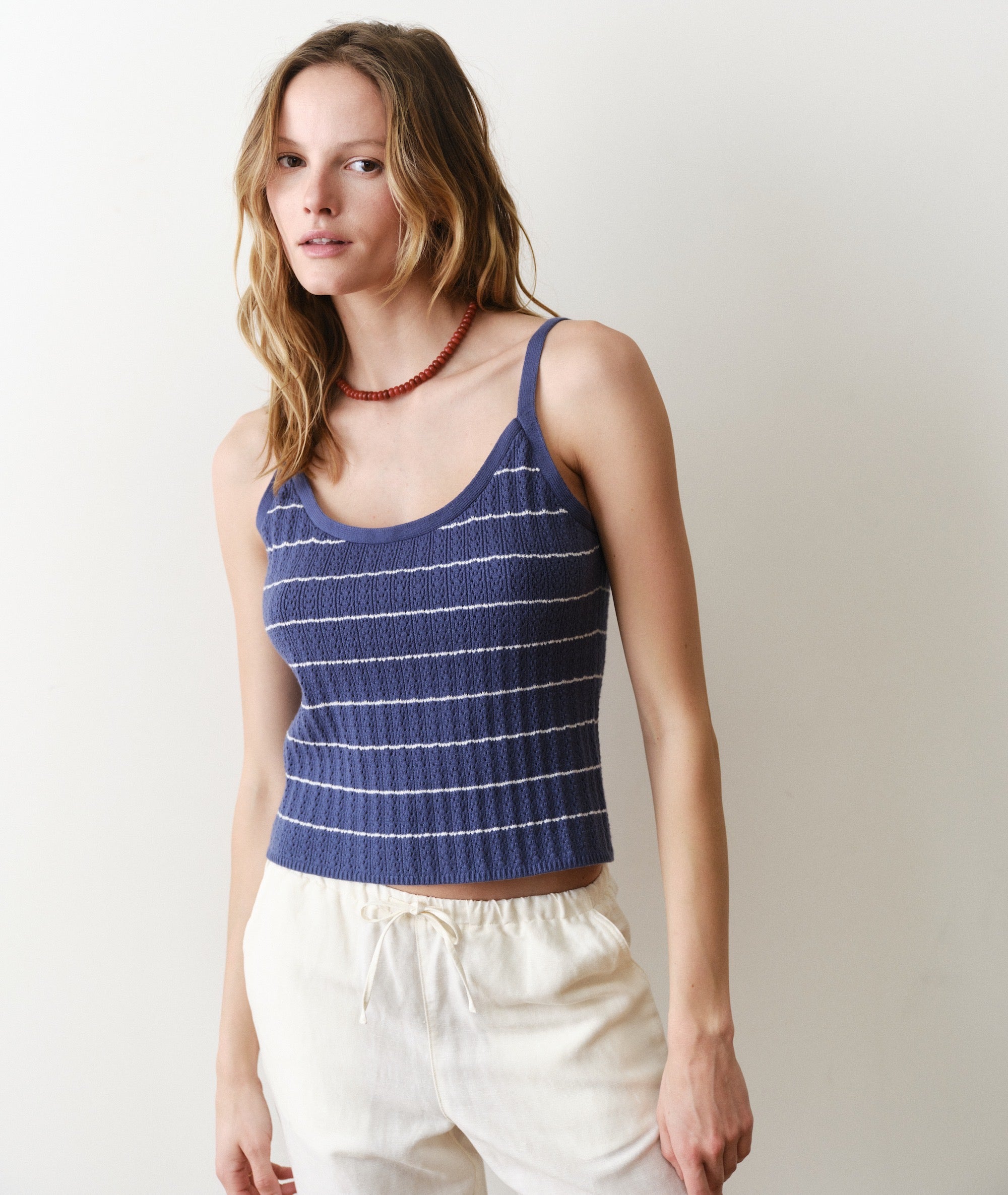 We wanted to turn the cami silhouette into a style so elevated we could wear it to work. And look, we did. This sweater cami is the matching sister to our Eva sweater cardigan: all the same softness, colors and very on-trend pointelle stitch, in a silhouette that's made to layer. Wear them together for an instant look, or mix and match for literally endless outfits.