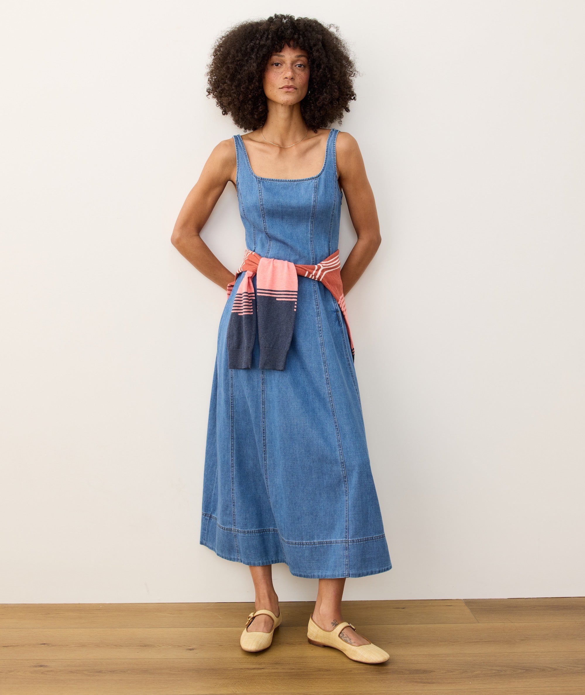 The kind of denim dress that mysteriously works for everything. Backyard BBQs? Yep. Weddings? Weirdly, also yes. With a soft square neckline, flattering princess seams, and hidden pockets (because we care), this one’s on heavy rotation.