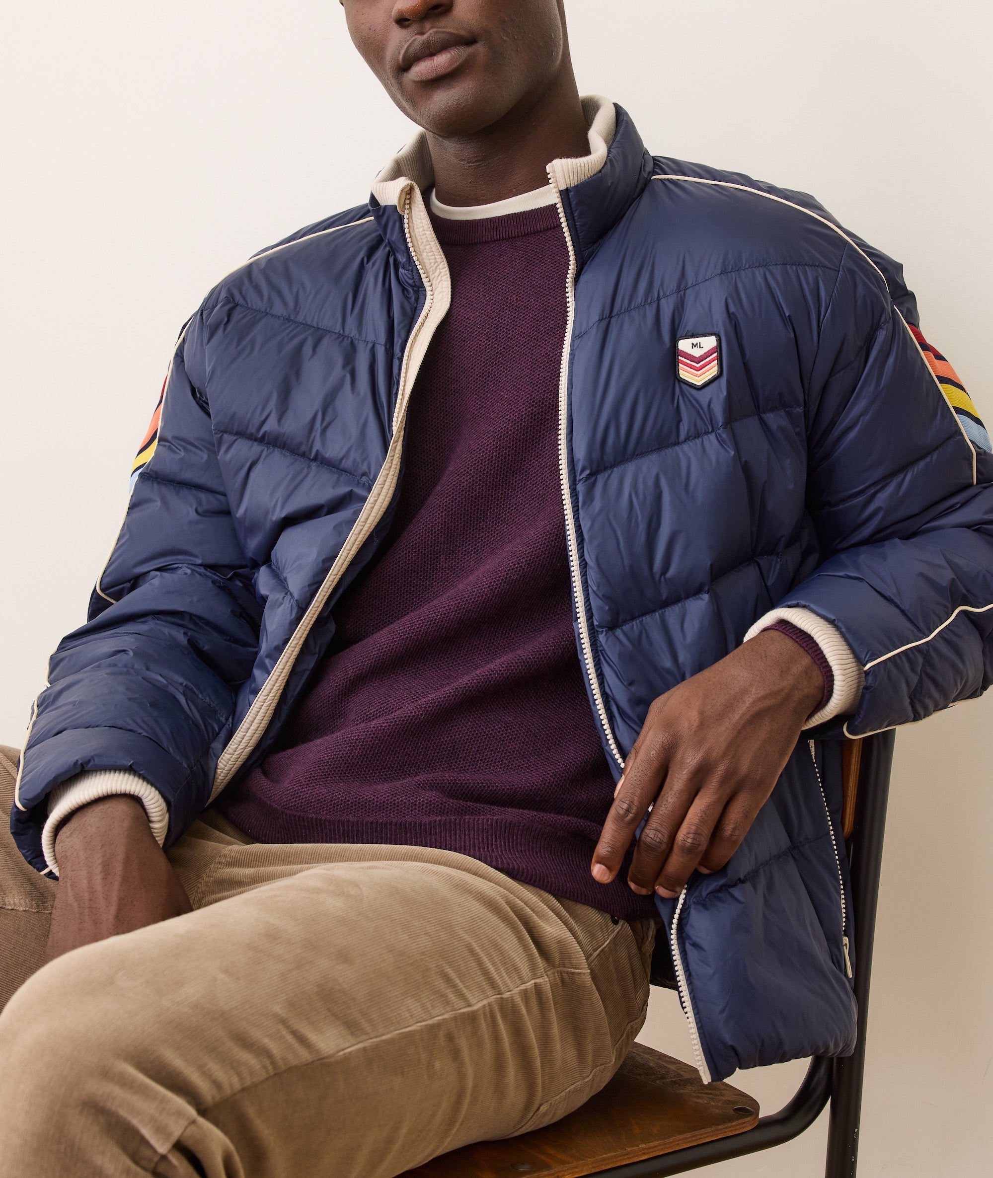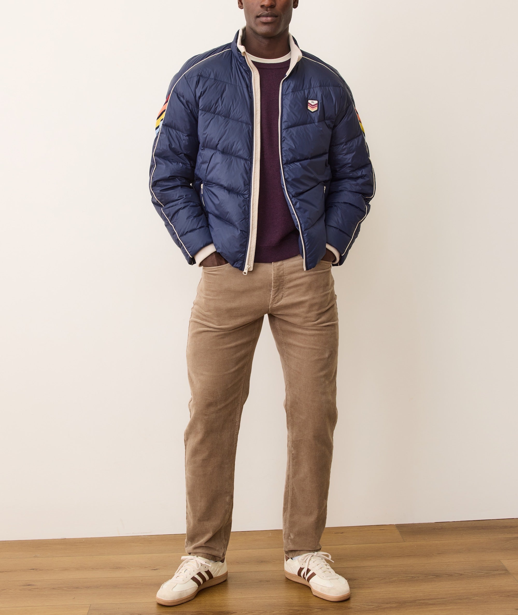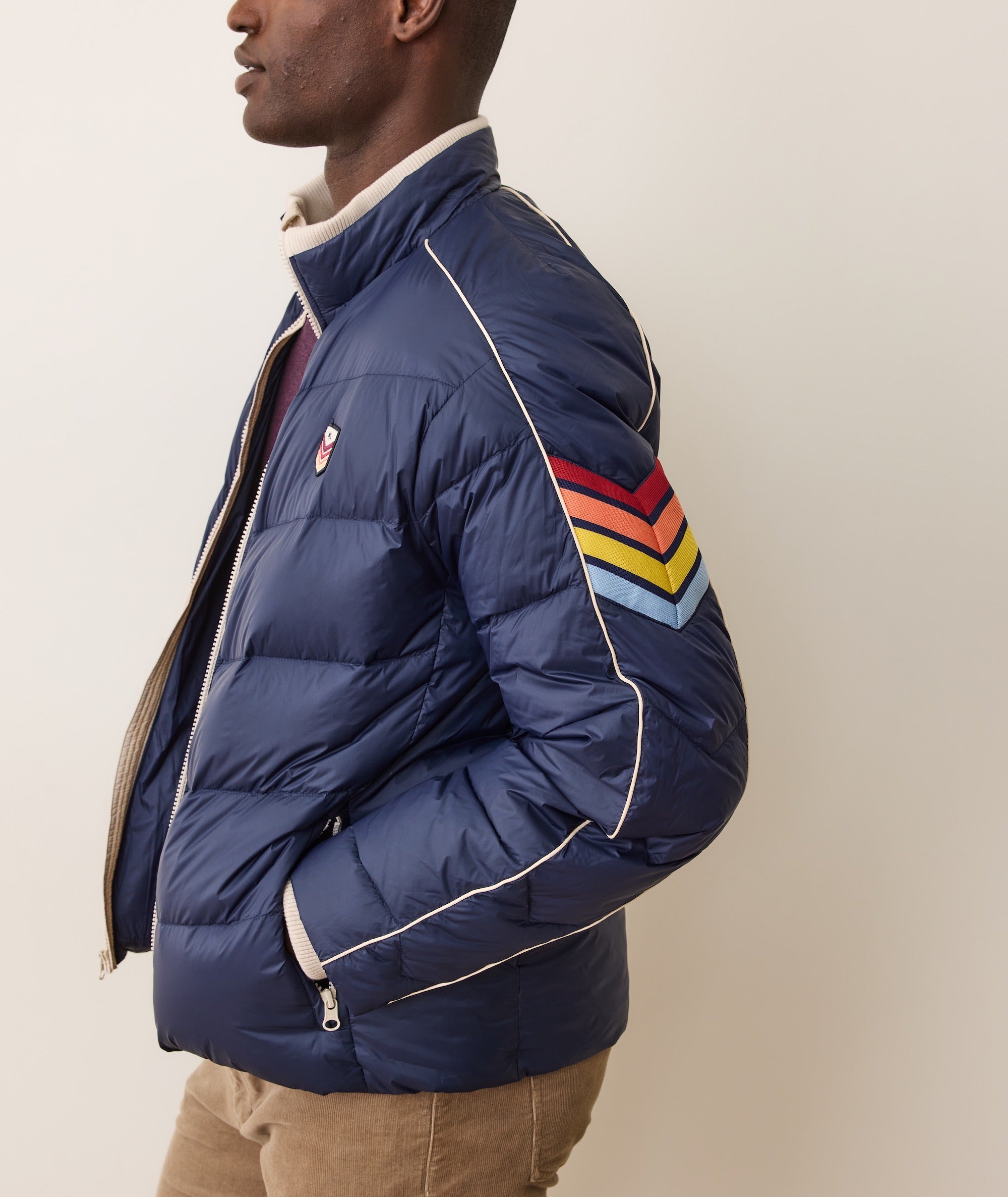 When you come down off the slopes, and you grab a drink on the chalet deck, this is the puffer that you want to be wearing. It's cozy the way a puffer should be, but slim enough to keep you from looking actually puffy. Add in the vintage sunset stripes on the arm, and the ribbed double collar, and you've got a favorite jacket that's going to get more than a few compliments.