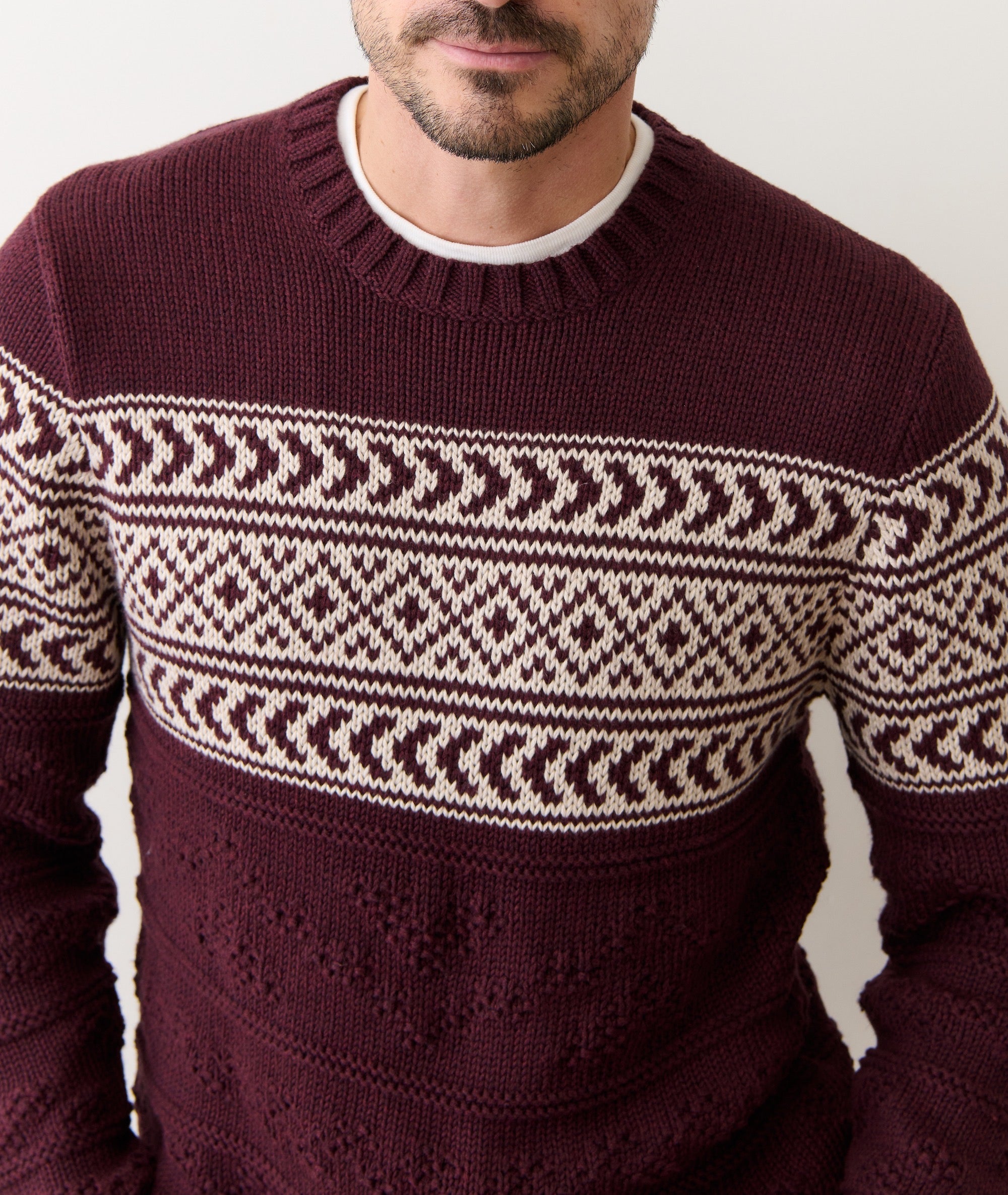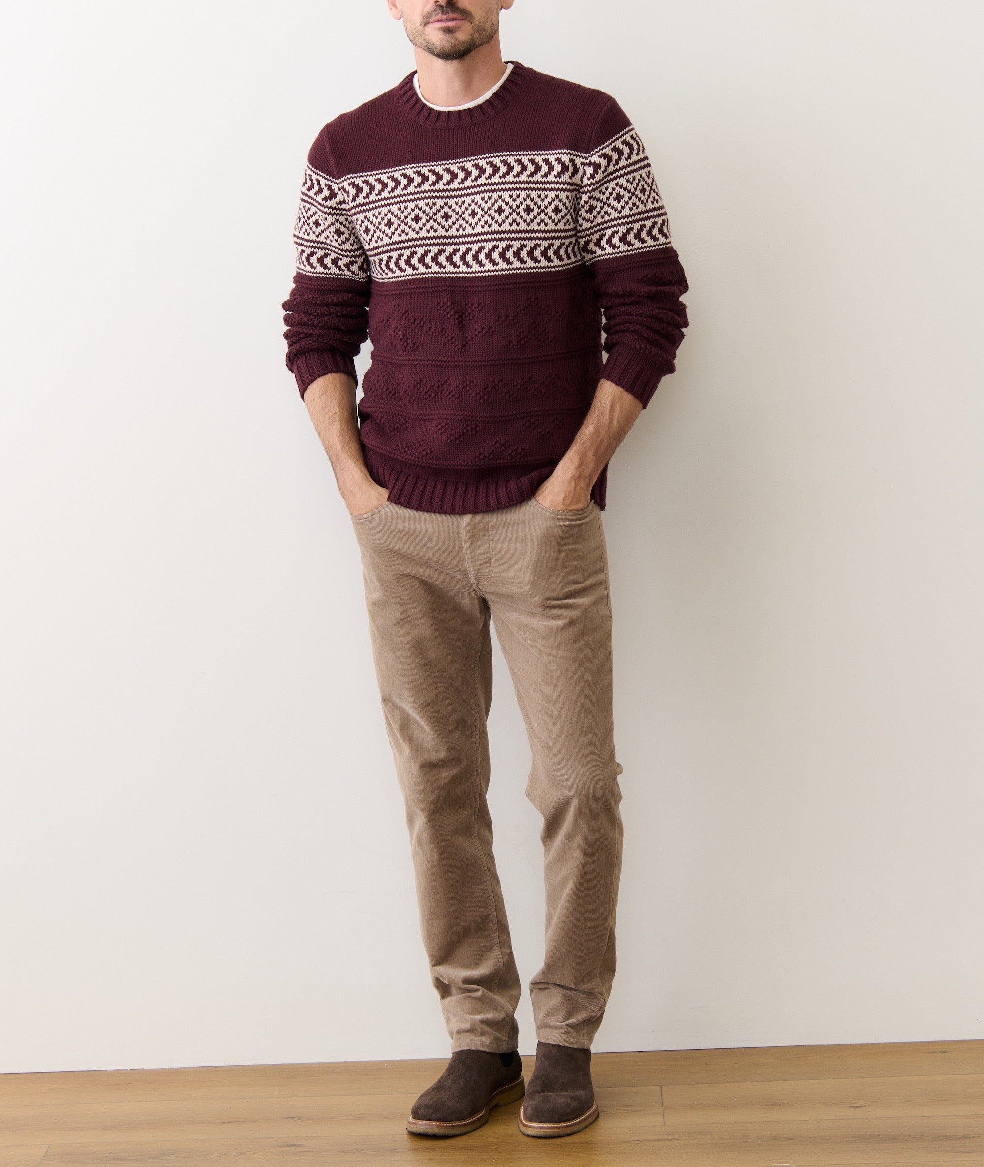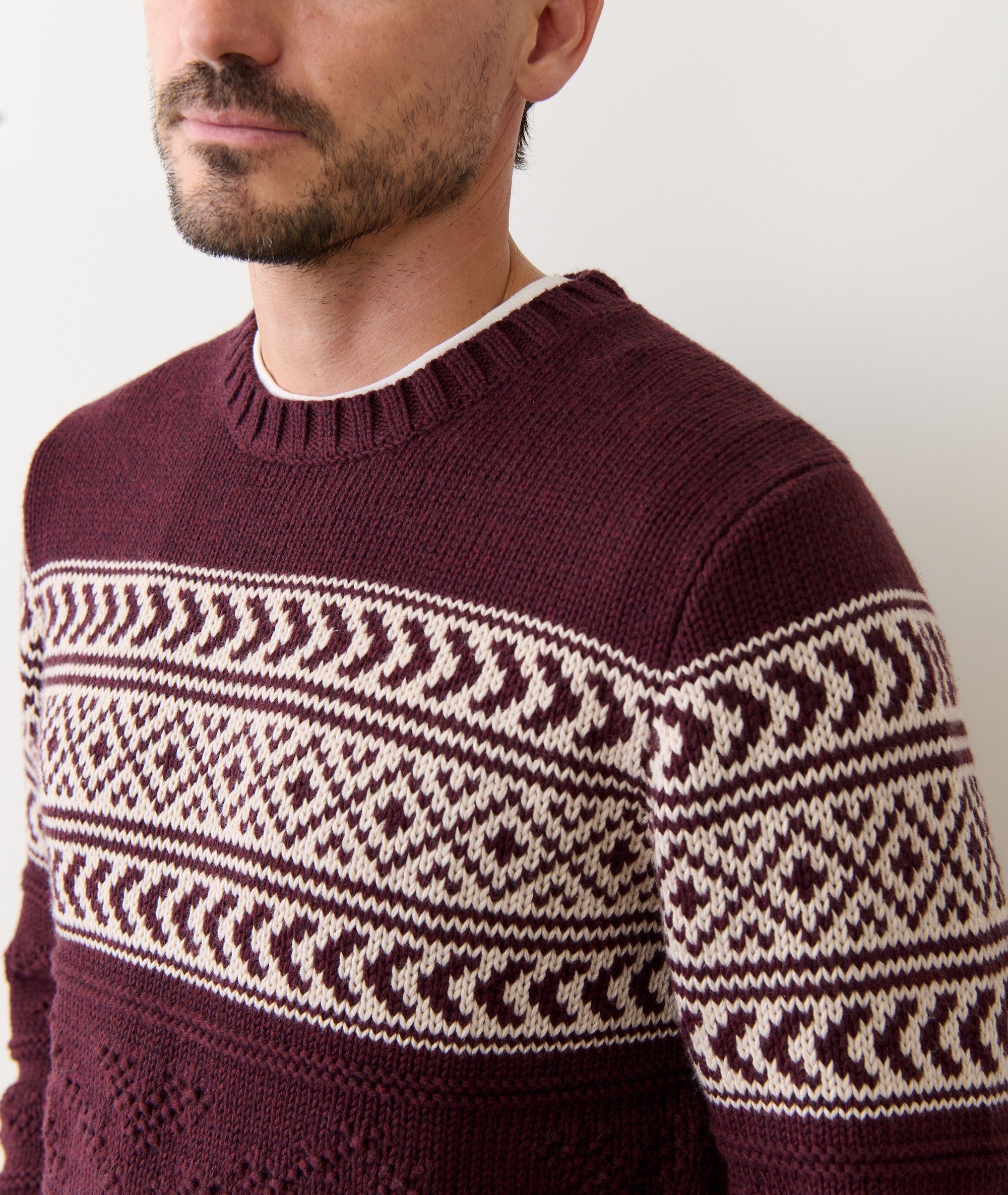 We've been making these Fair Isle crewnecks for years, but wanted to try something different this time. So we used a mixed stitch in the body that gives it a jacquard-like texture, and tweaked the pattern to have a deconstructed vibe. Looks a little more vintage, but feels just as buttery soft as always.
