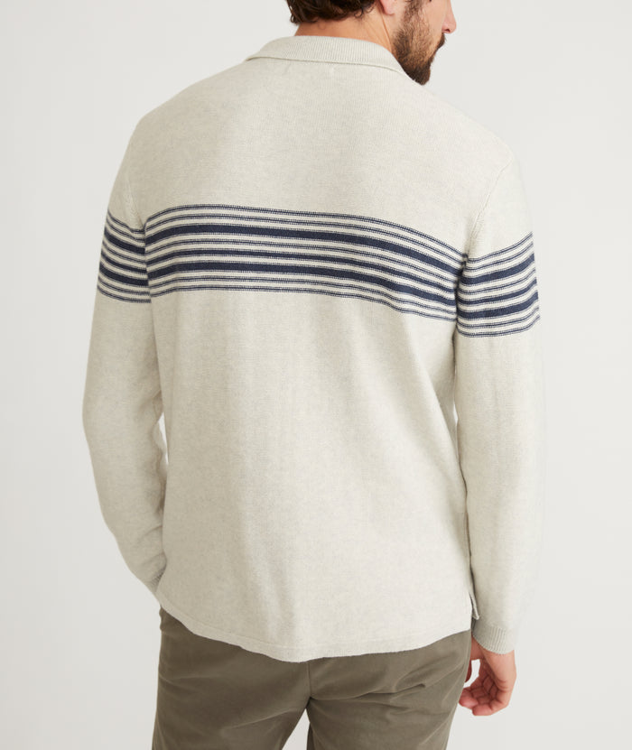 We worked with the world's top scientists* to achieve the perfect blend of dressed-up and laid-back. This sweater polo is absurdly soft, perfectly warm (but not too warm), and features a custom stitched stripe across the chest.