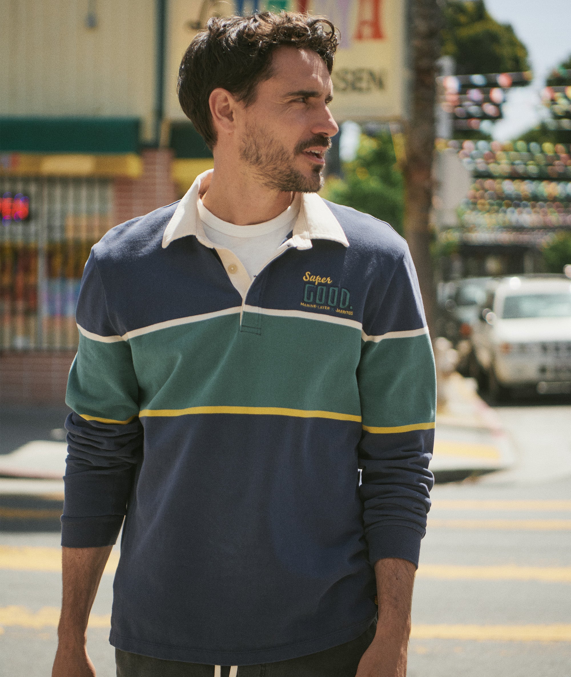 This collab was pretty much inevitable. We like bright colors and tacos and so does Jarritos. So we teamed up and put their super good graphics on our super soft clothes—like the embroidery on this rugby shirt. It almost looks too good to spill a taco on. Almost.