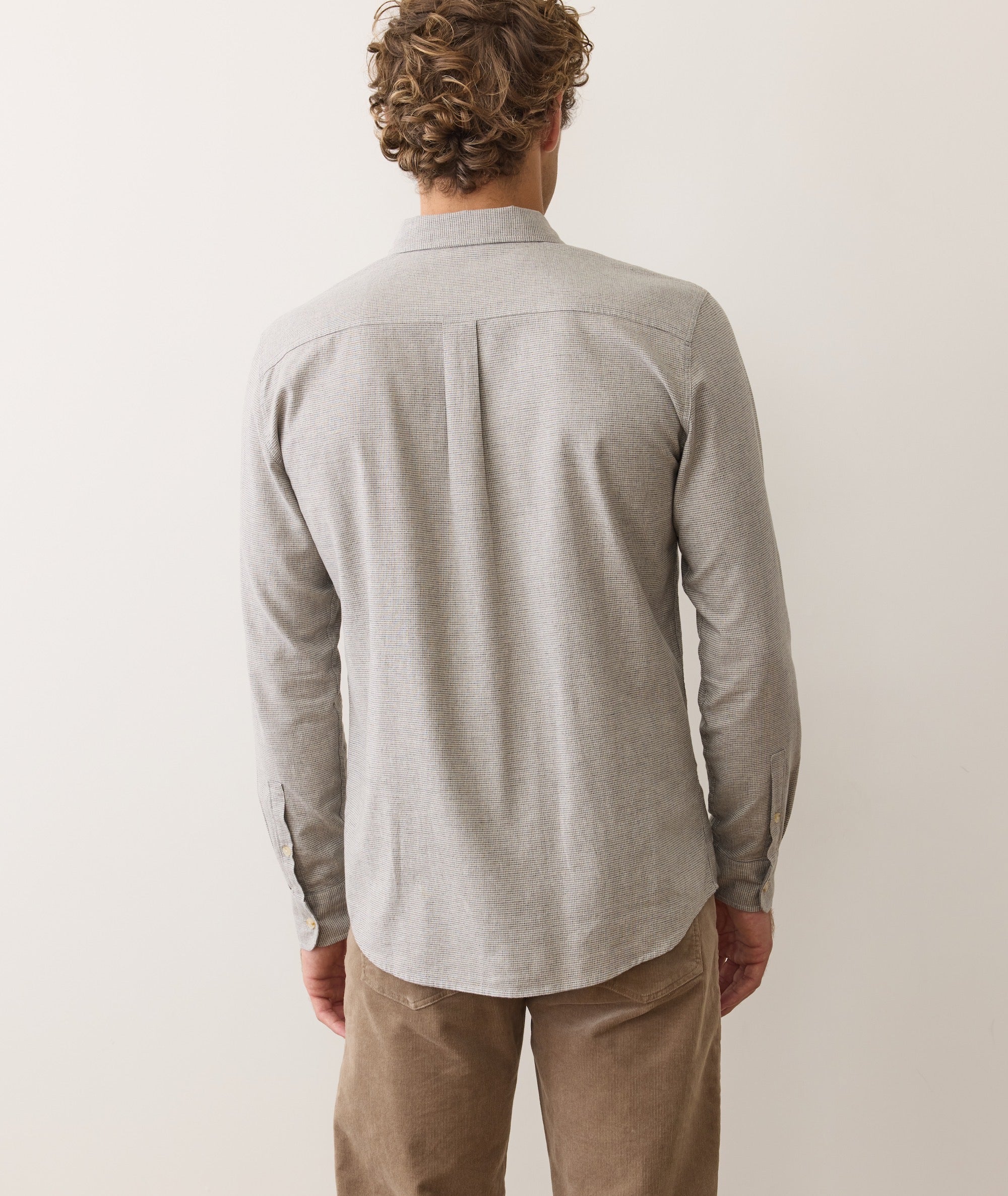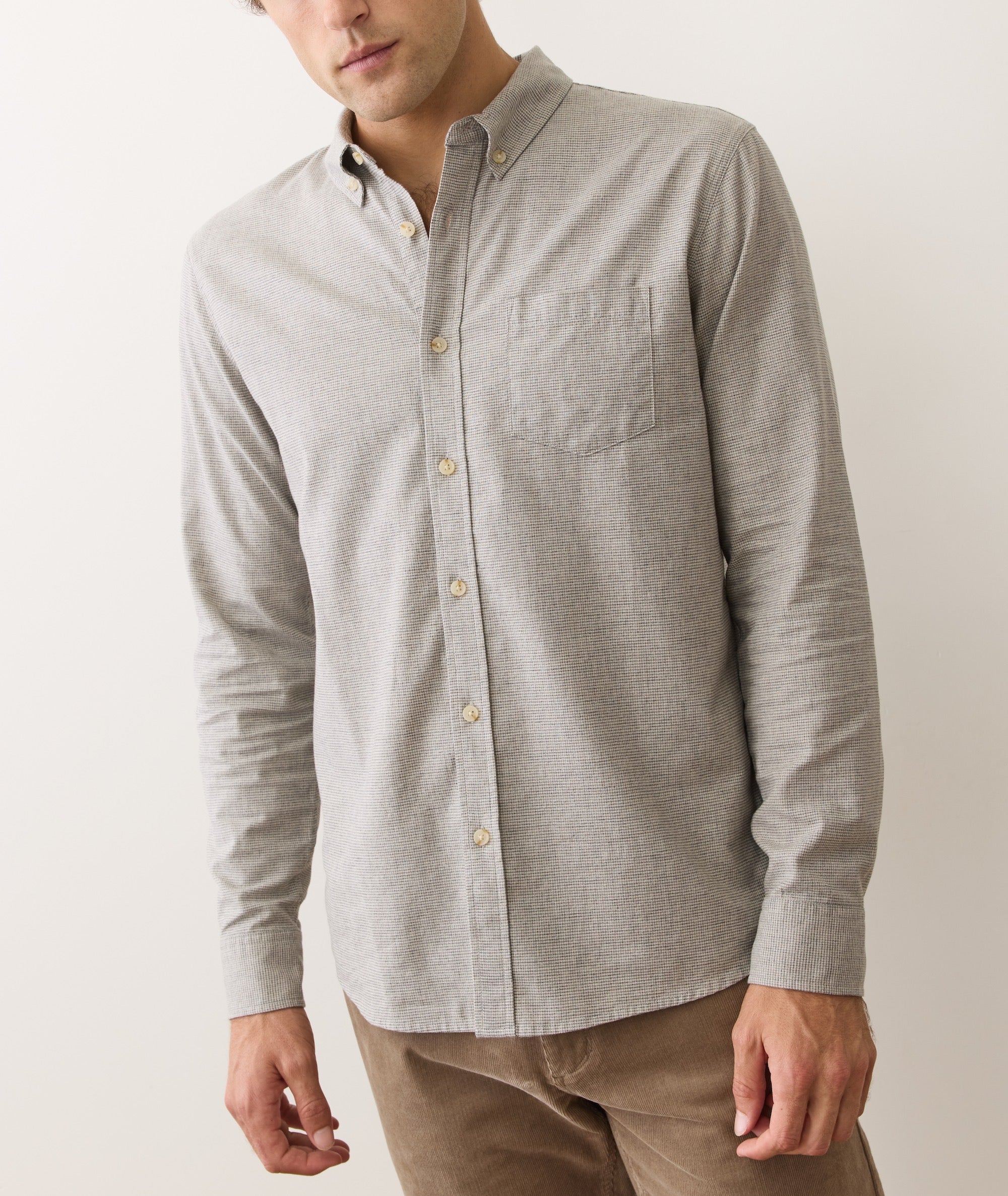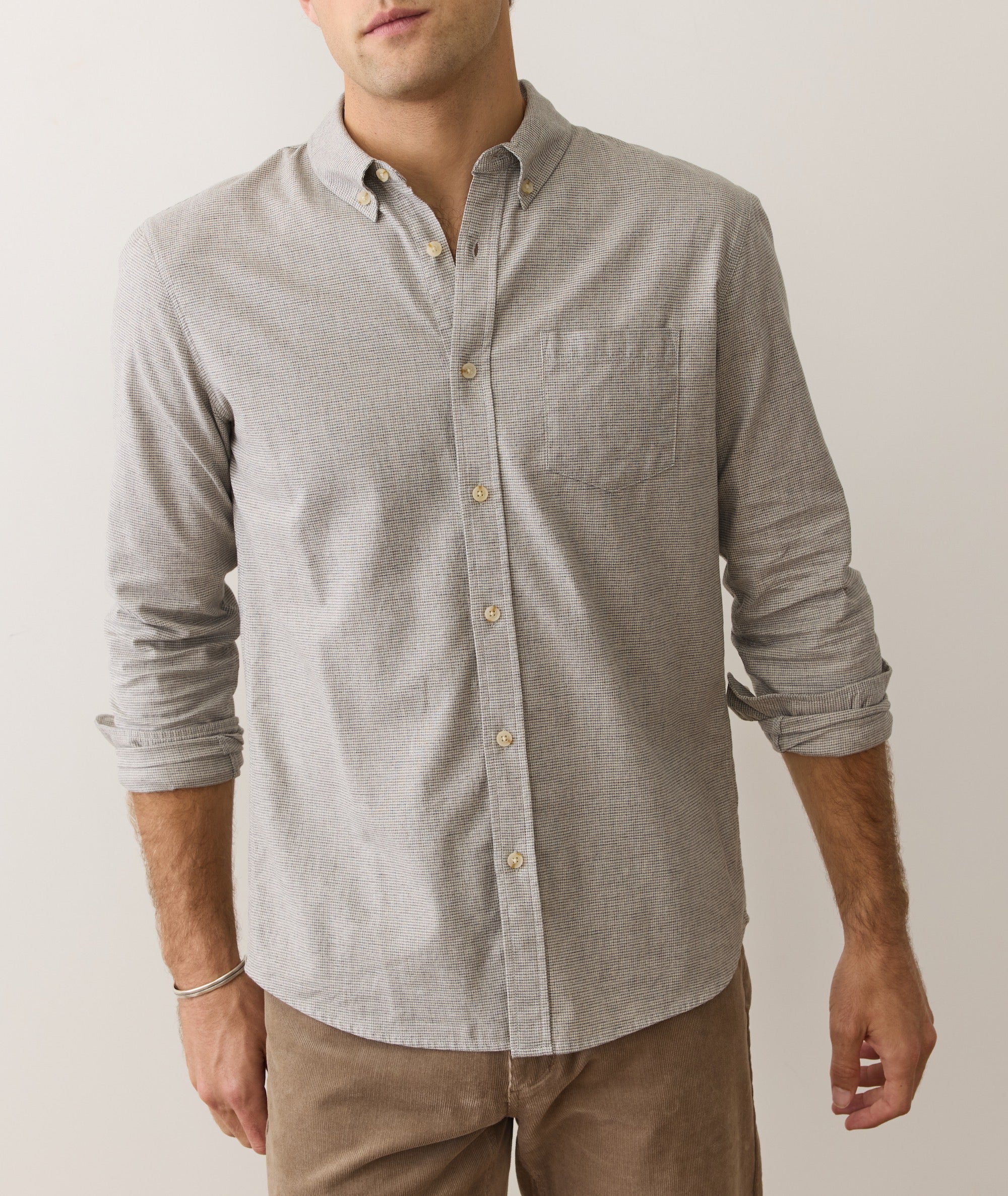 This is our laid-back take on the essential men's button down. We brushed the fabric to make it even softer to the touch, and wove it with enough stretch to keep you from getting bound up. Works tucked, untucked, or thrown on the beach while you jump in the ocean.